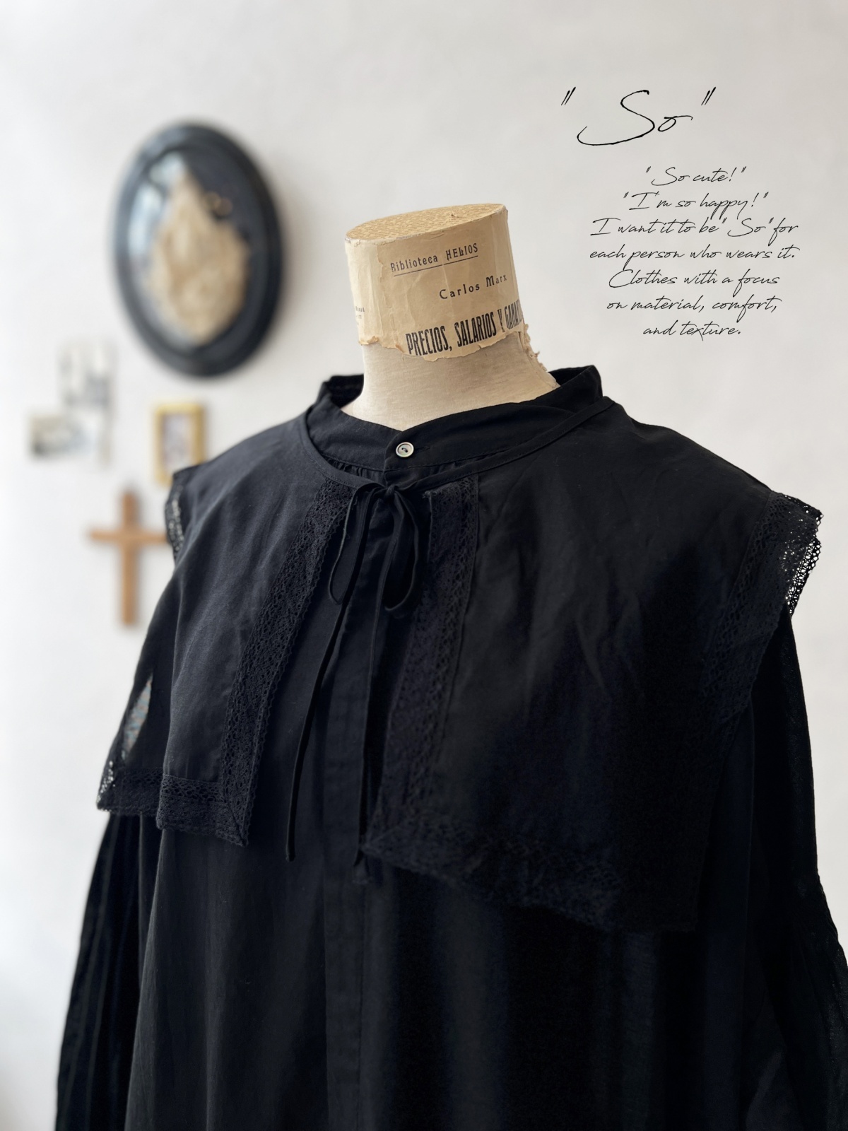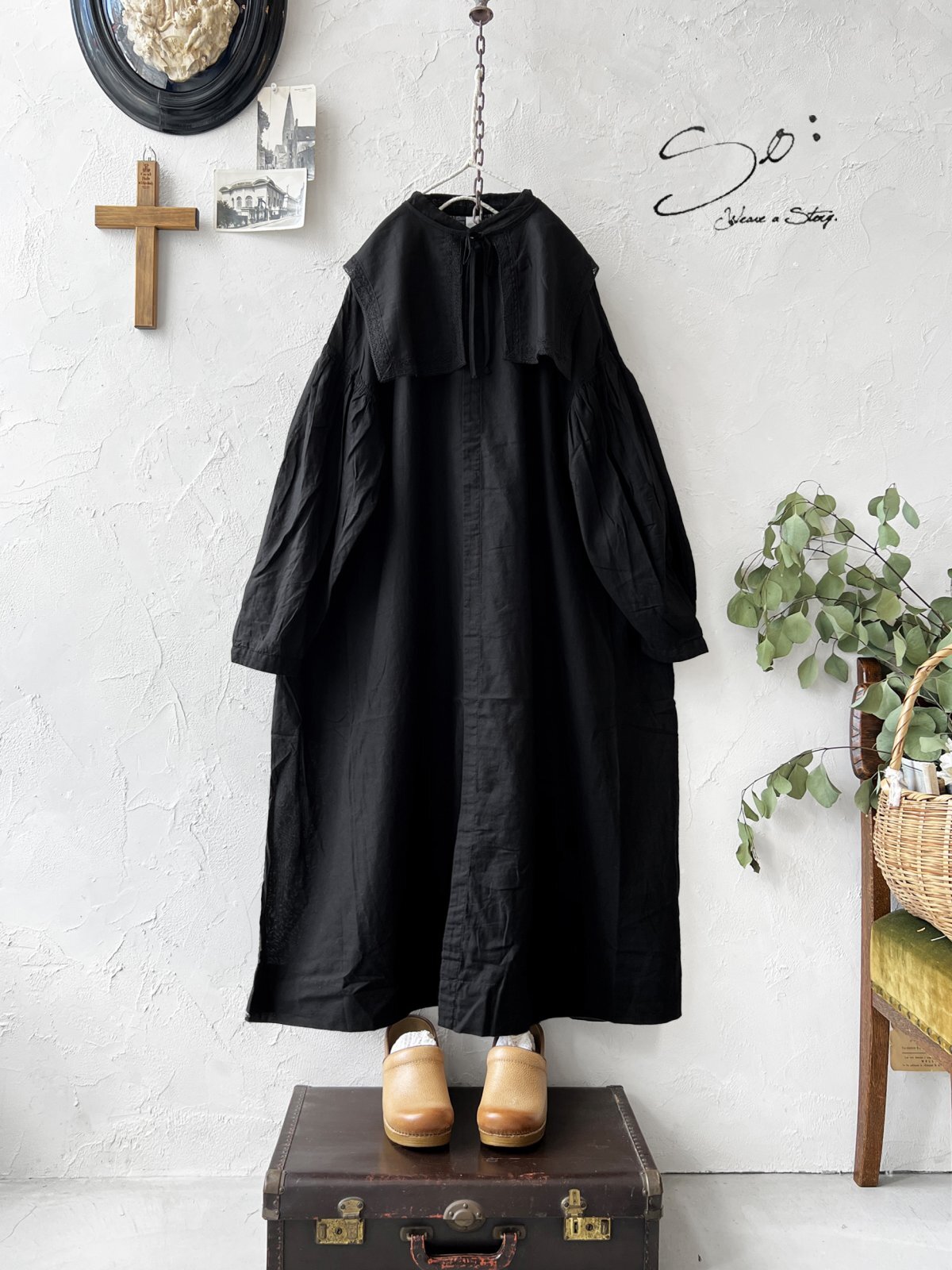 SO/ティペット付きギャザーワンピース・ブラック [COF250708]