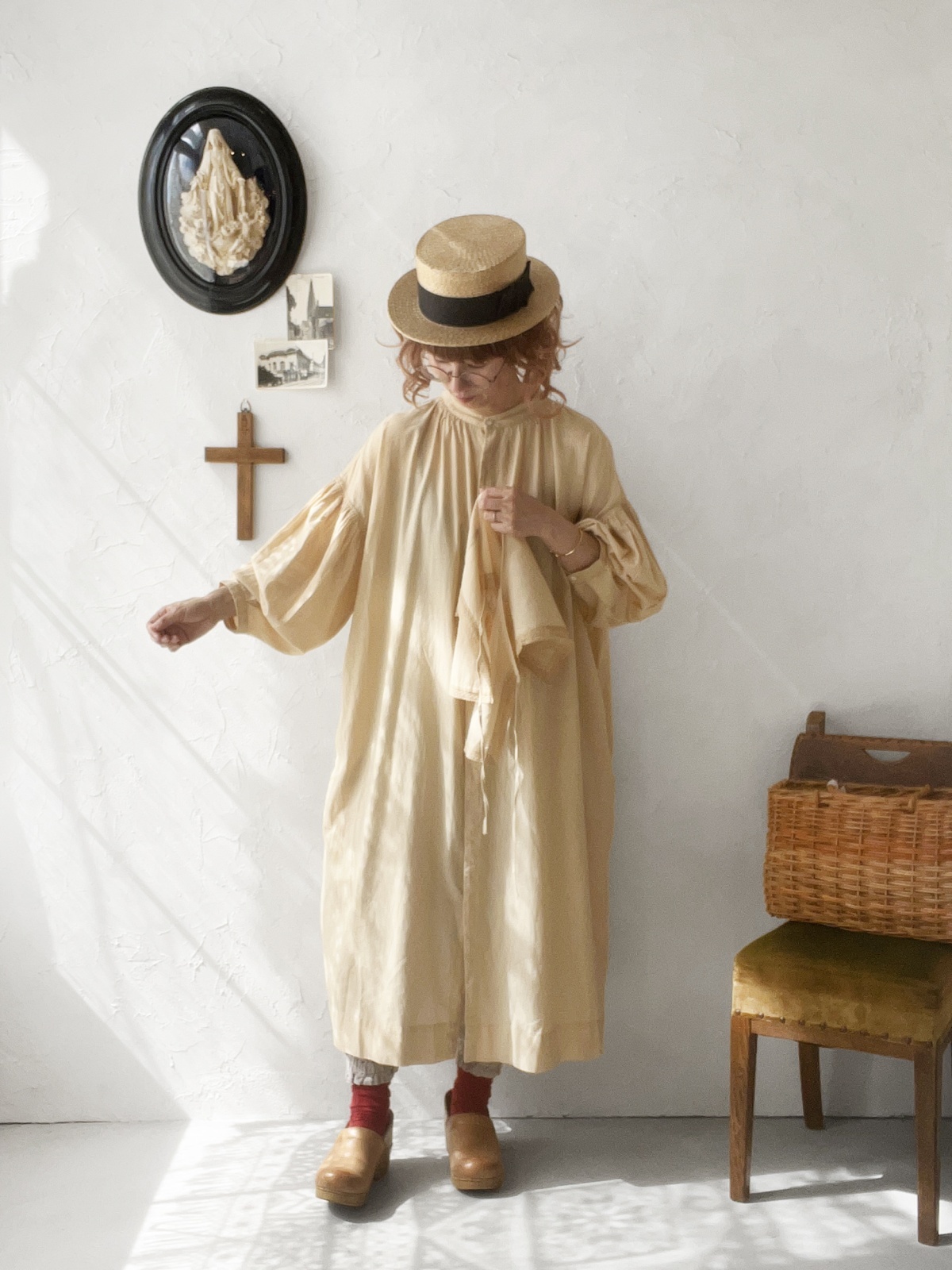 ワンピースはシンプルなノーカラーで、
