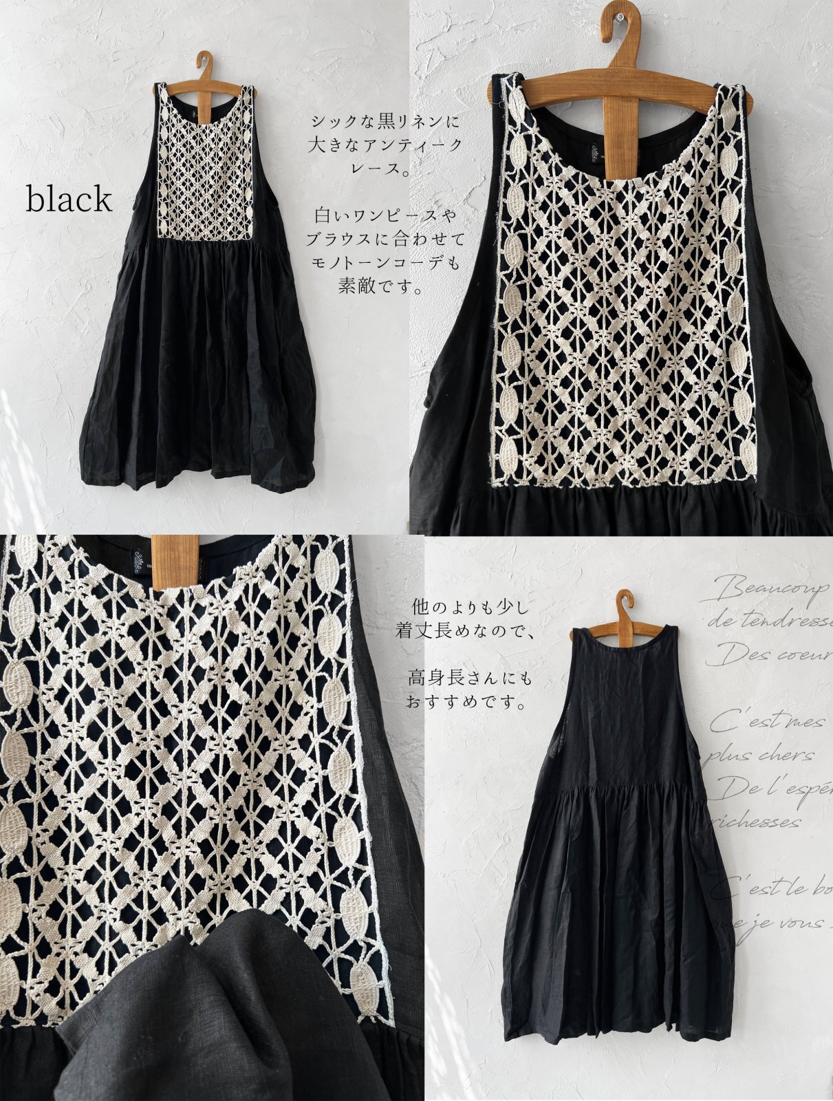生地はお花刺繍の生成り、黒(コットンリネン)と