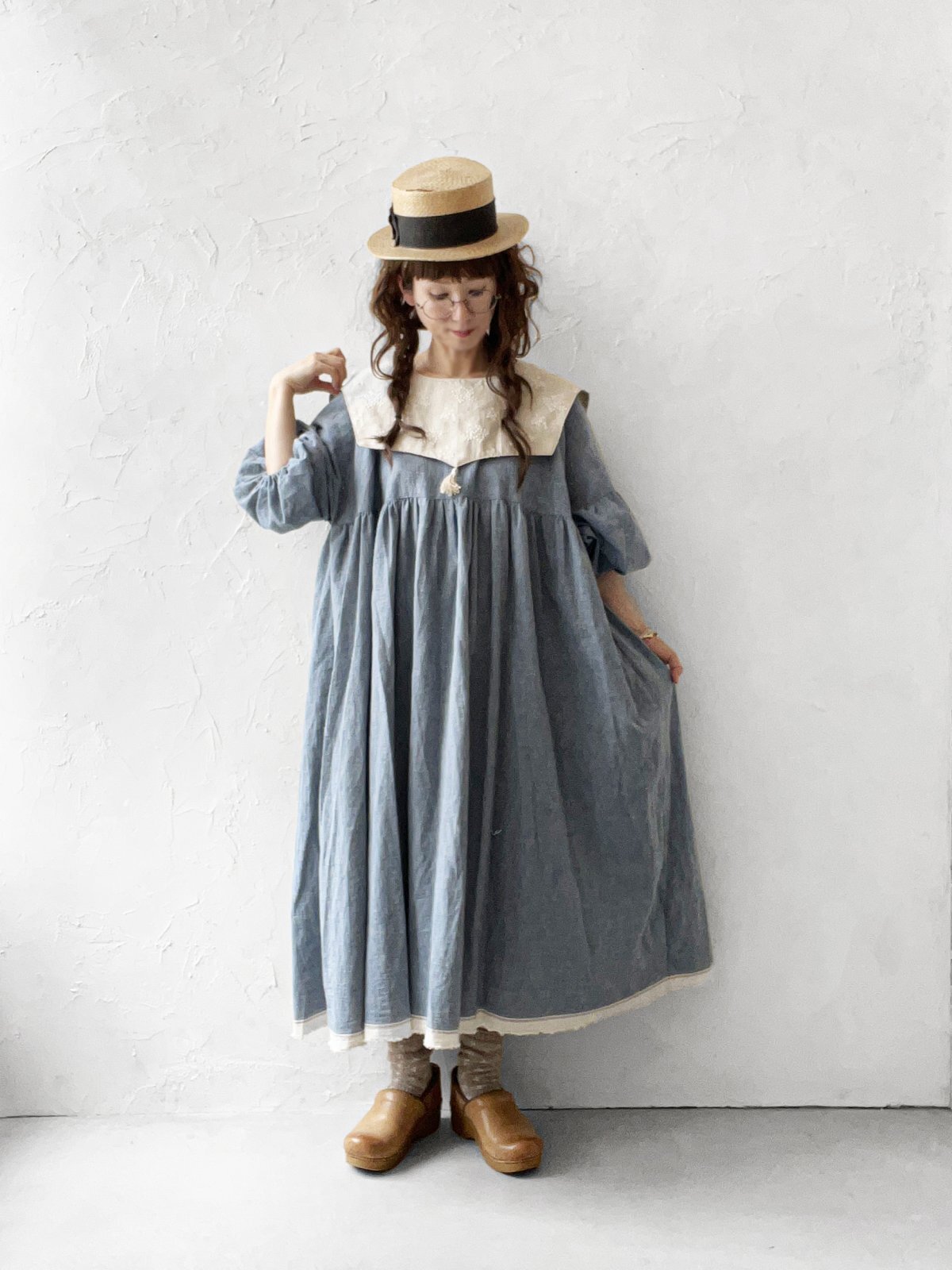 MARCHE' DE SOEUR/パフ袖ワンピース・ブルー [MDS250907]