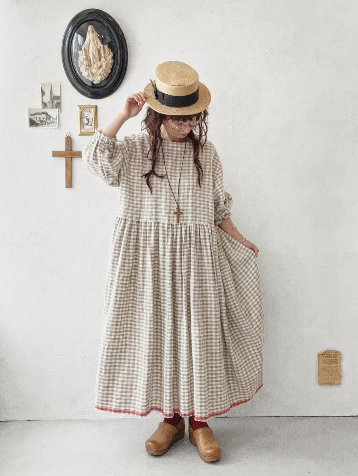 MARCHE' DE SOEUR/ギャザーワンピース・赤耳ギンガムチェック [MDS250706]
