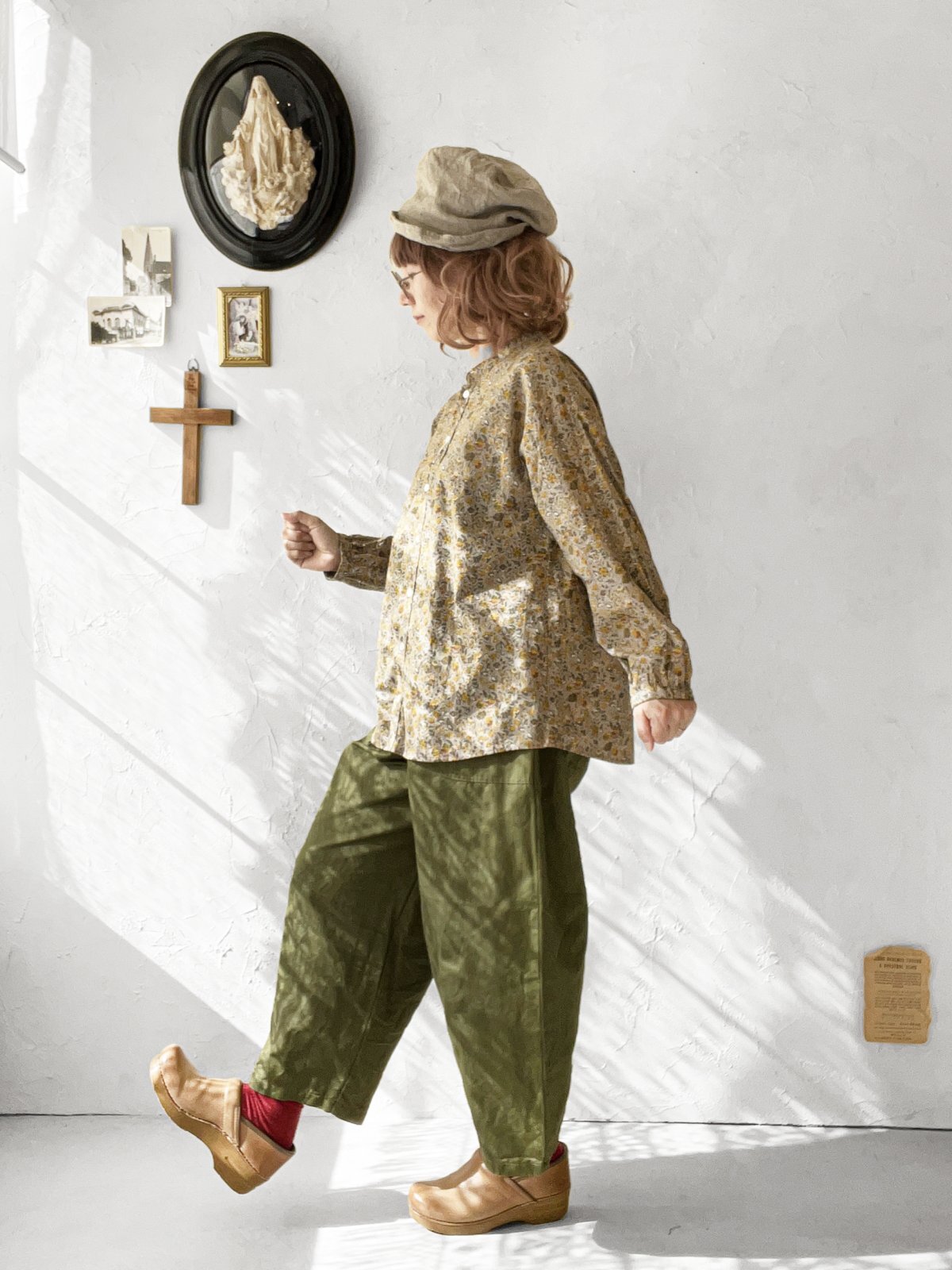落ち着いた雰囲気に仕上げたギャザーブラウス。