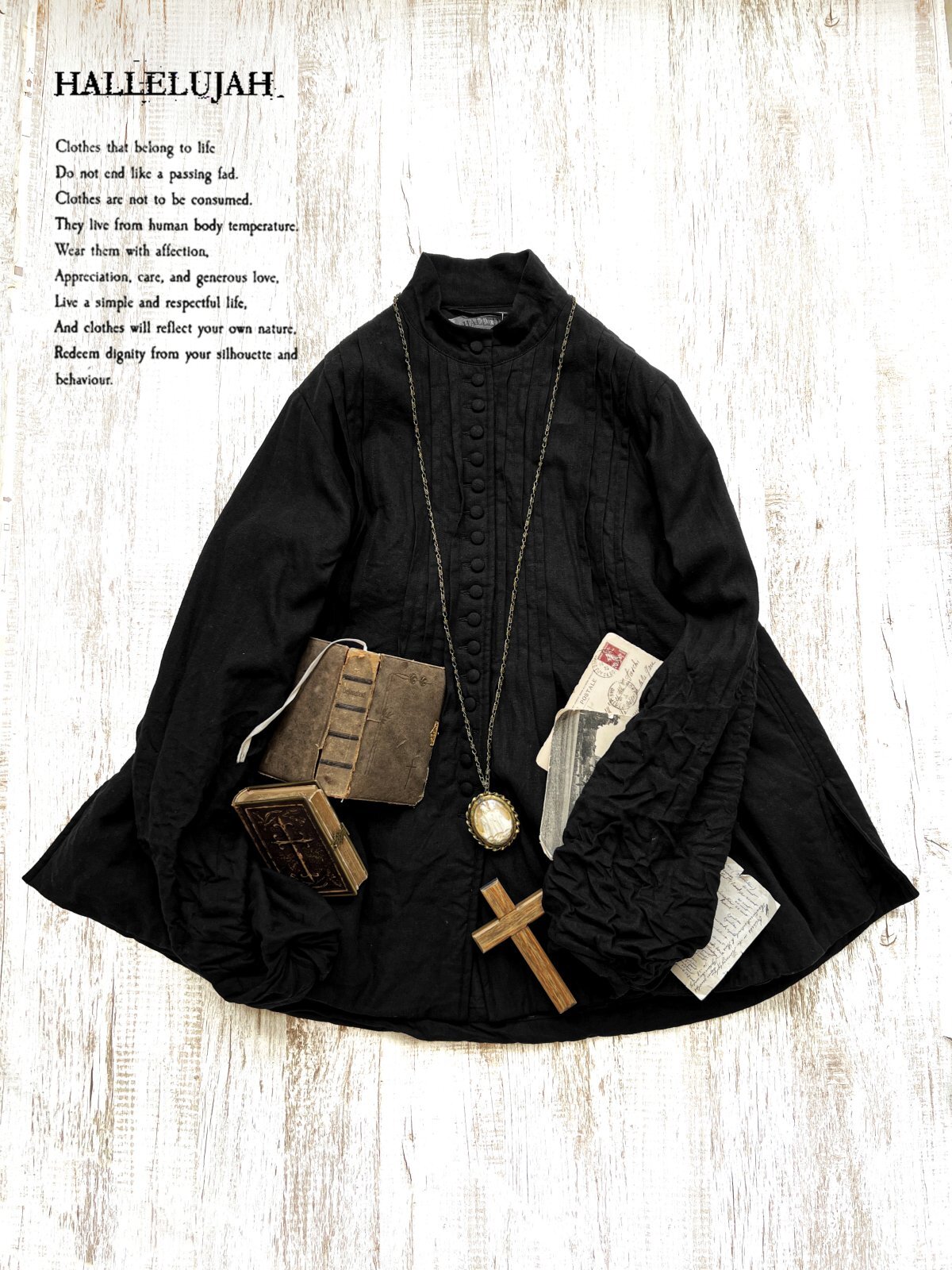 HALLELUJAH/8, Chemise de Baptême(Model 1920’s)クリスチャンブラウス・black [HAL250909]