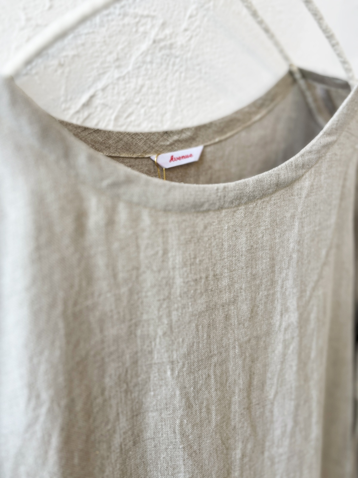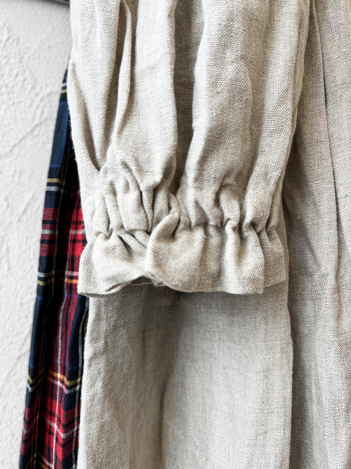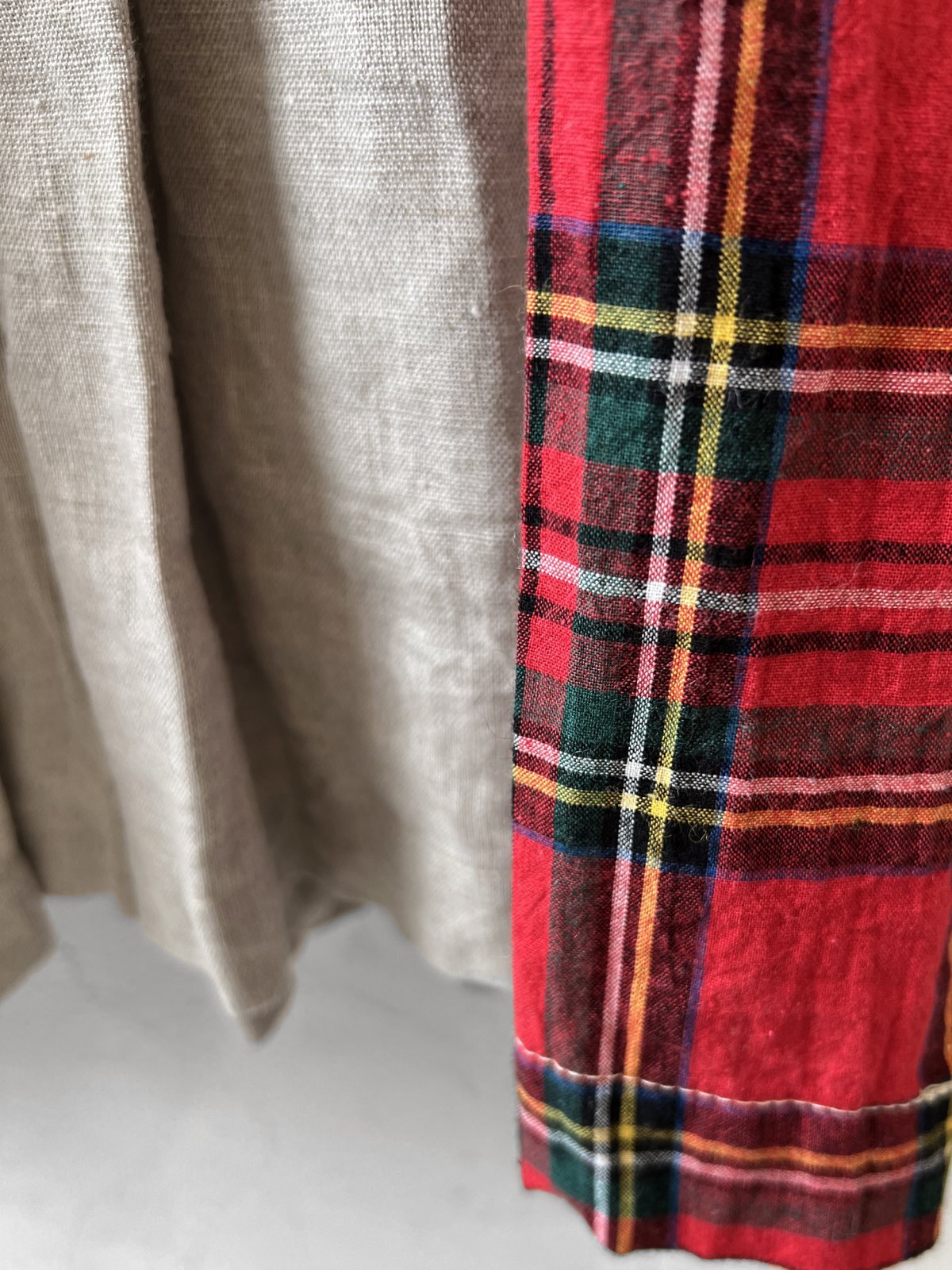 Avenue/赤チェック切り替えギャザーワンピース・生成り [AVE250903]