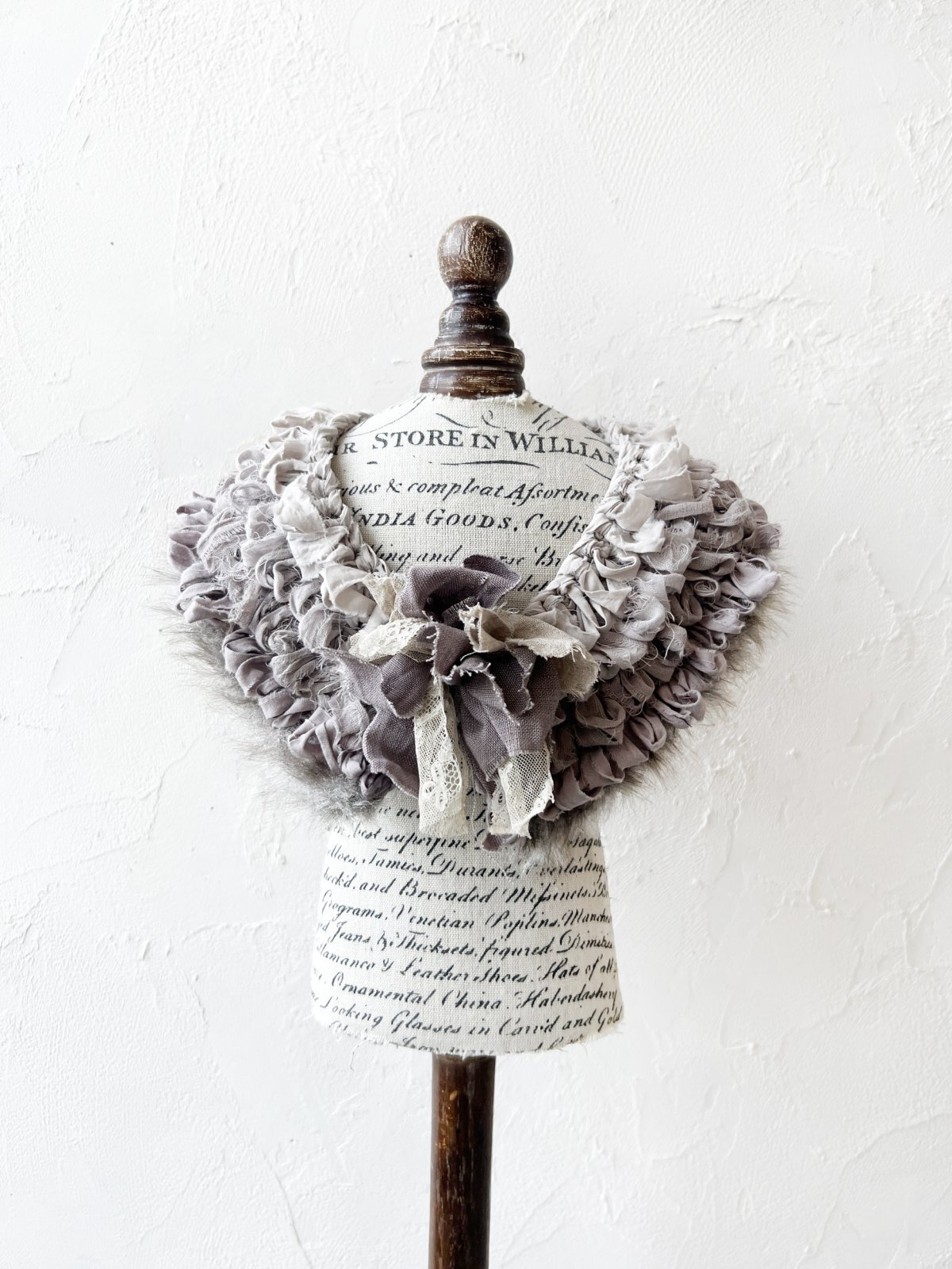 ふんわりと暖かい、裂き編みとエコファーのティペット。