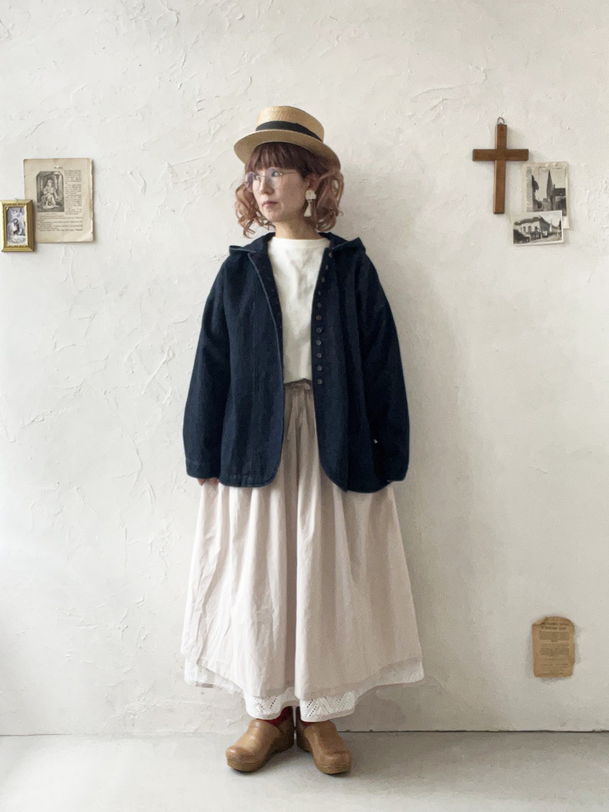 デニムの色合いとリネンのくったりした風合いをmix。
