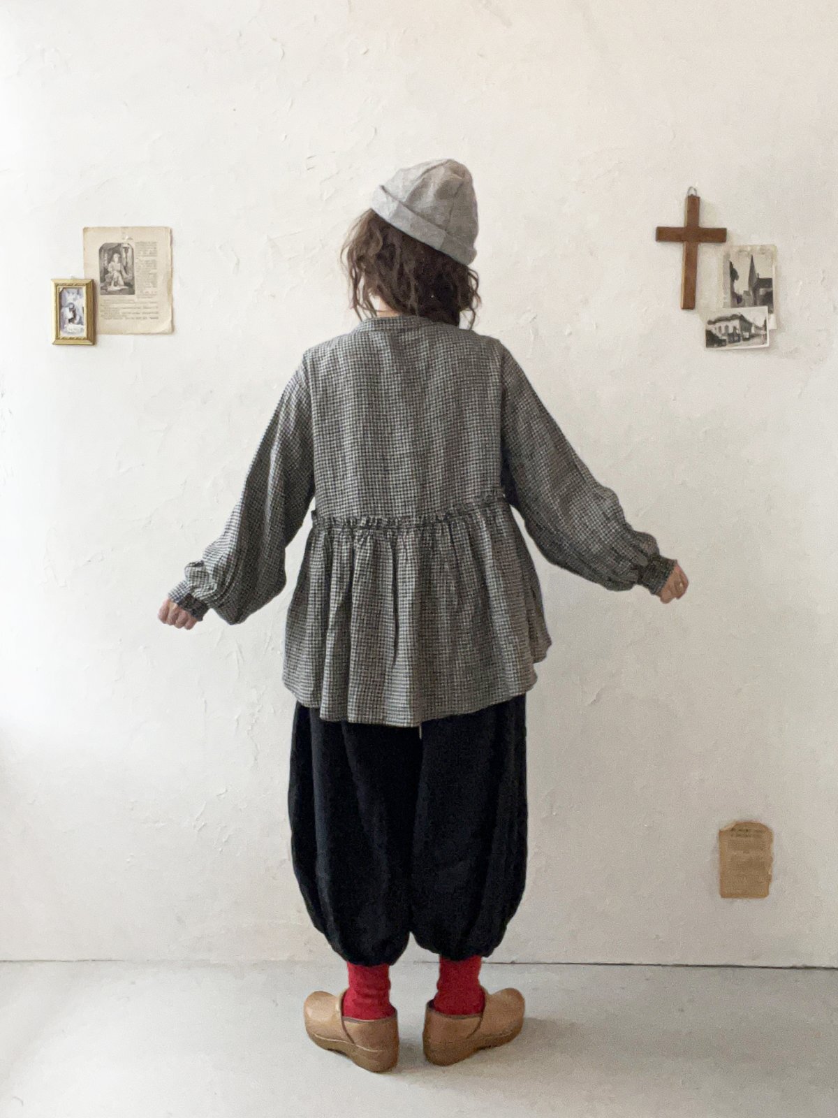 ubasoku/0107 パフ袖ギャザーブラウス・ギンガム [BNT251003]