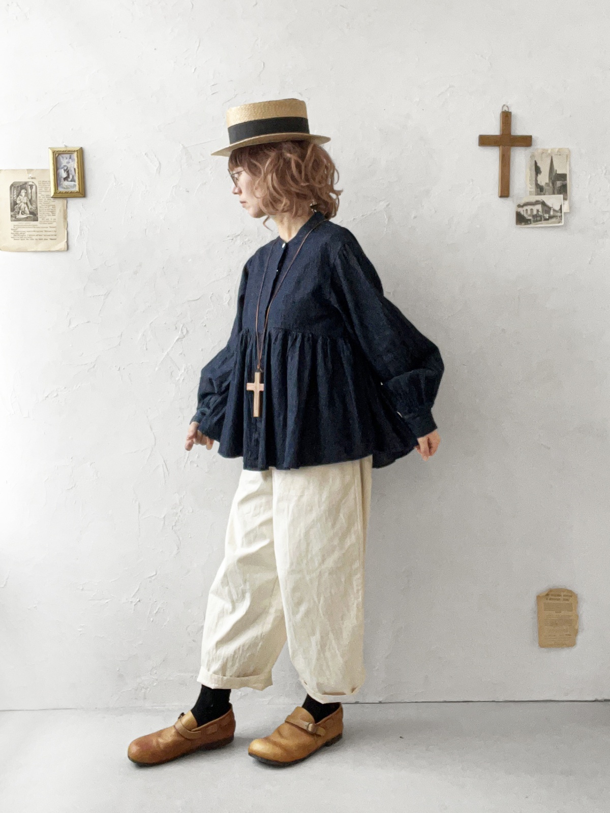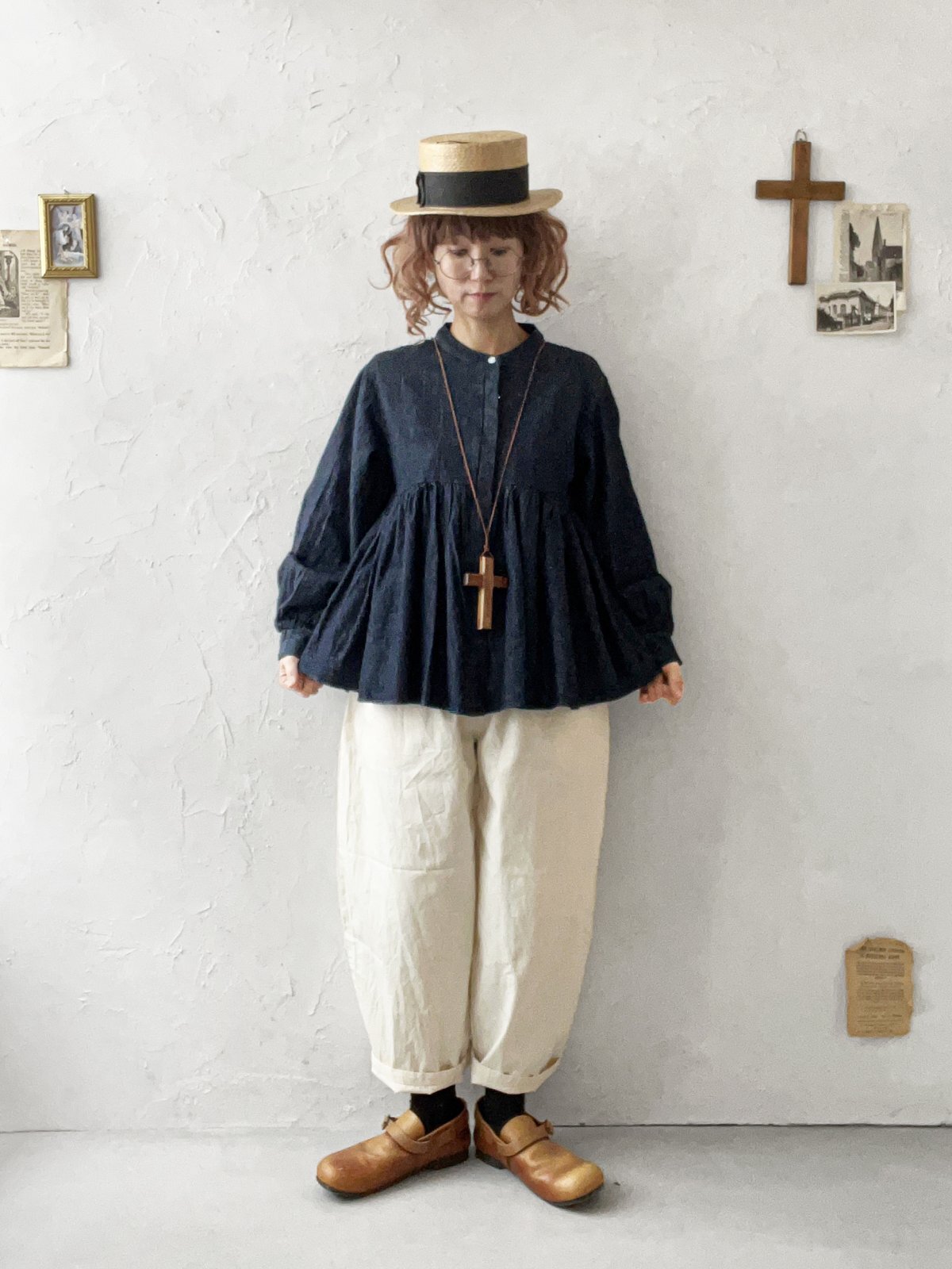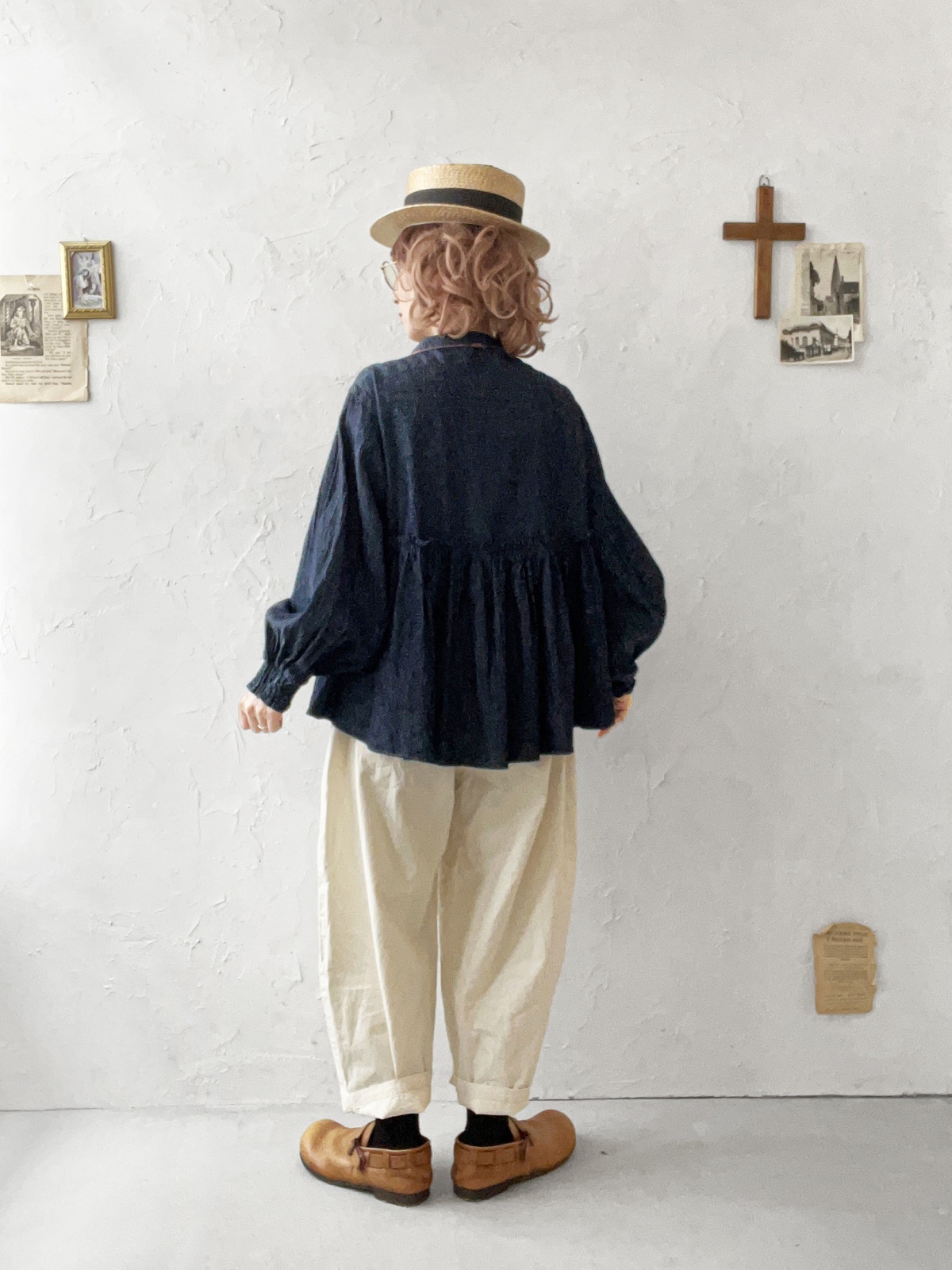 ubasoku/0108 ギャザーブラウス・インディゴ [BNT251004]