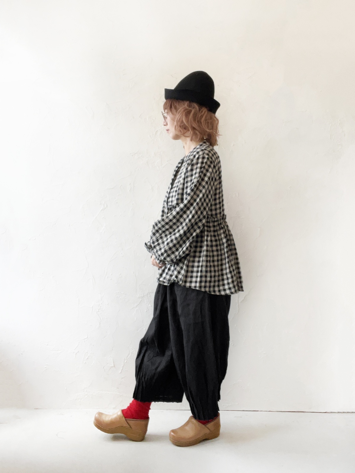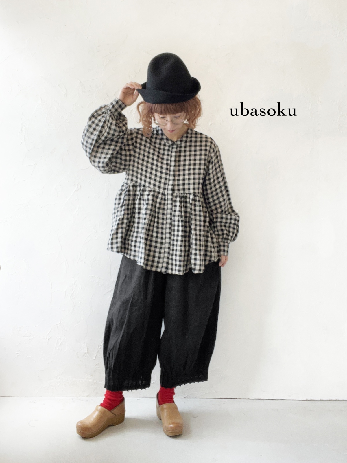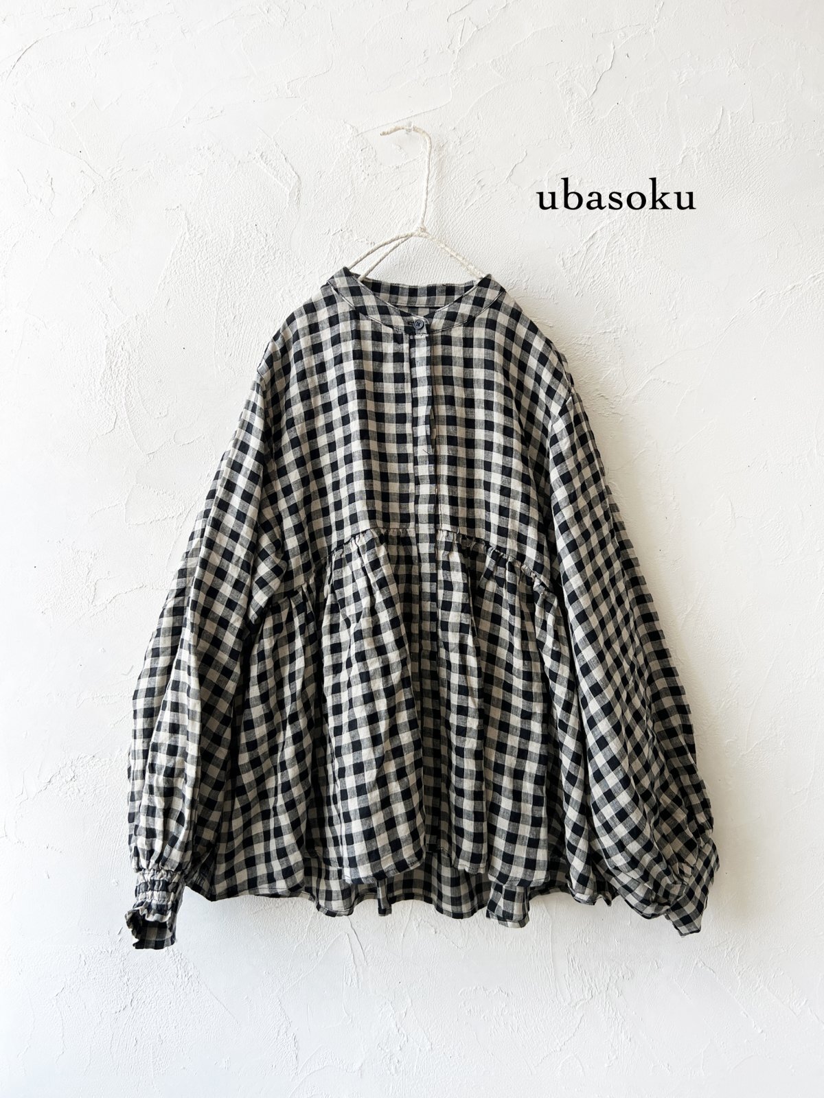 ubasoku/0107 比翼ギャザーブラウス・ブロックチェック [BNT251002]