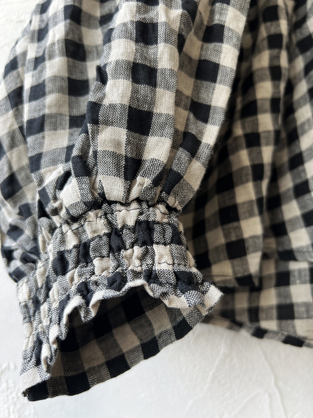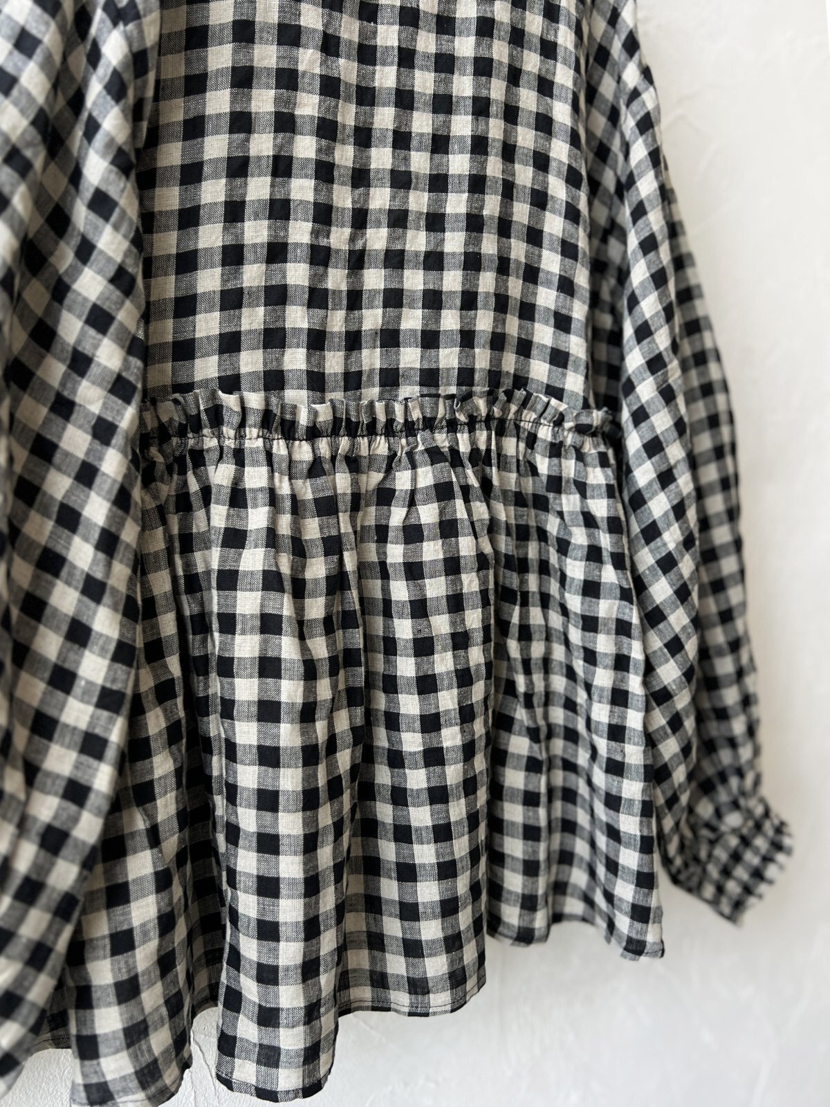 お袖はドロップショルダーで、袖口はシャーリングの