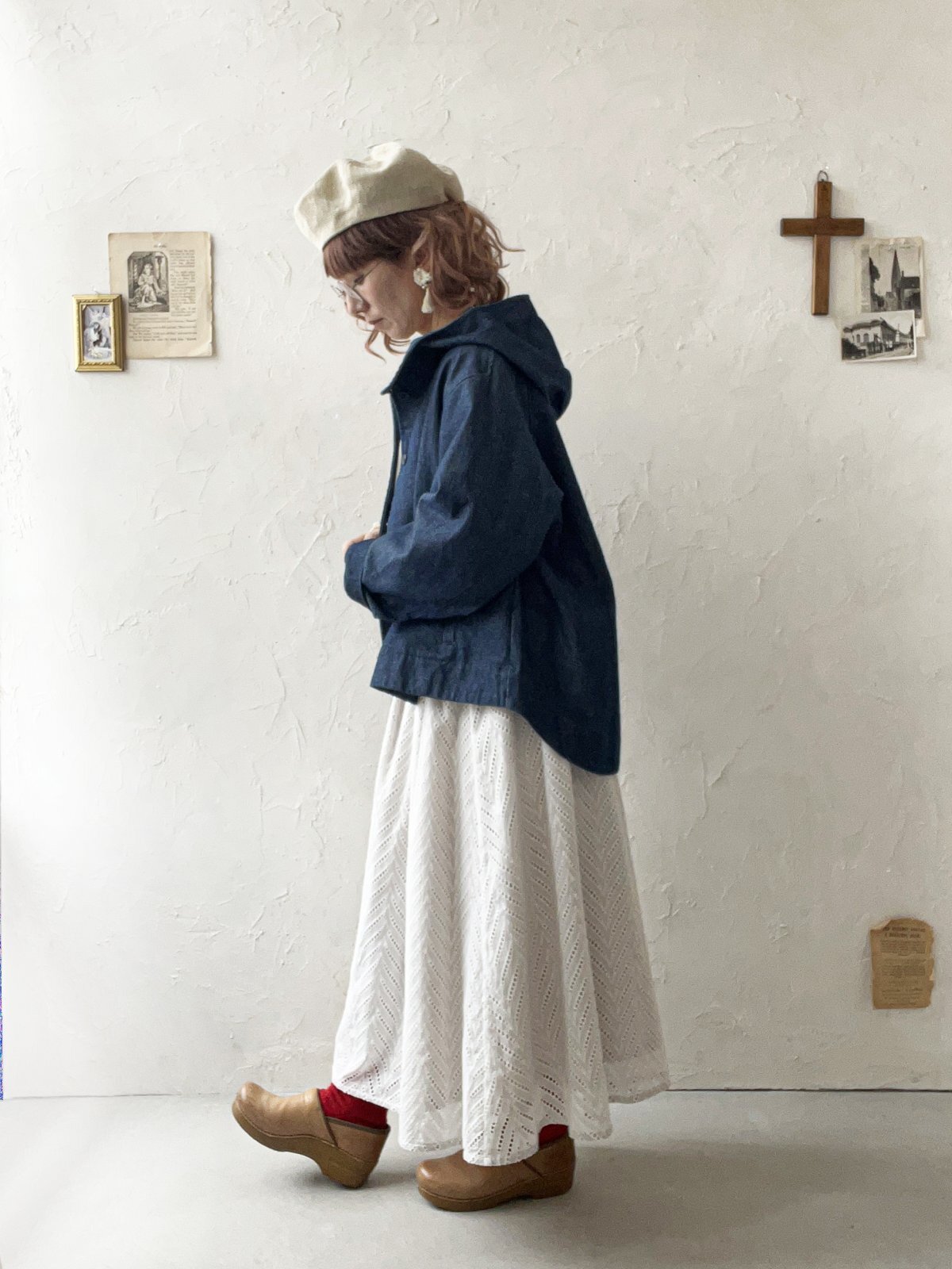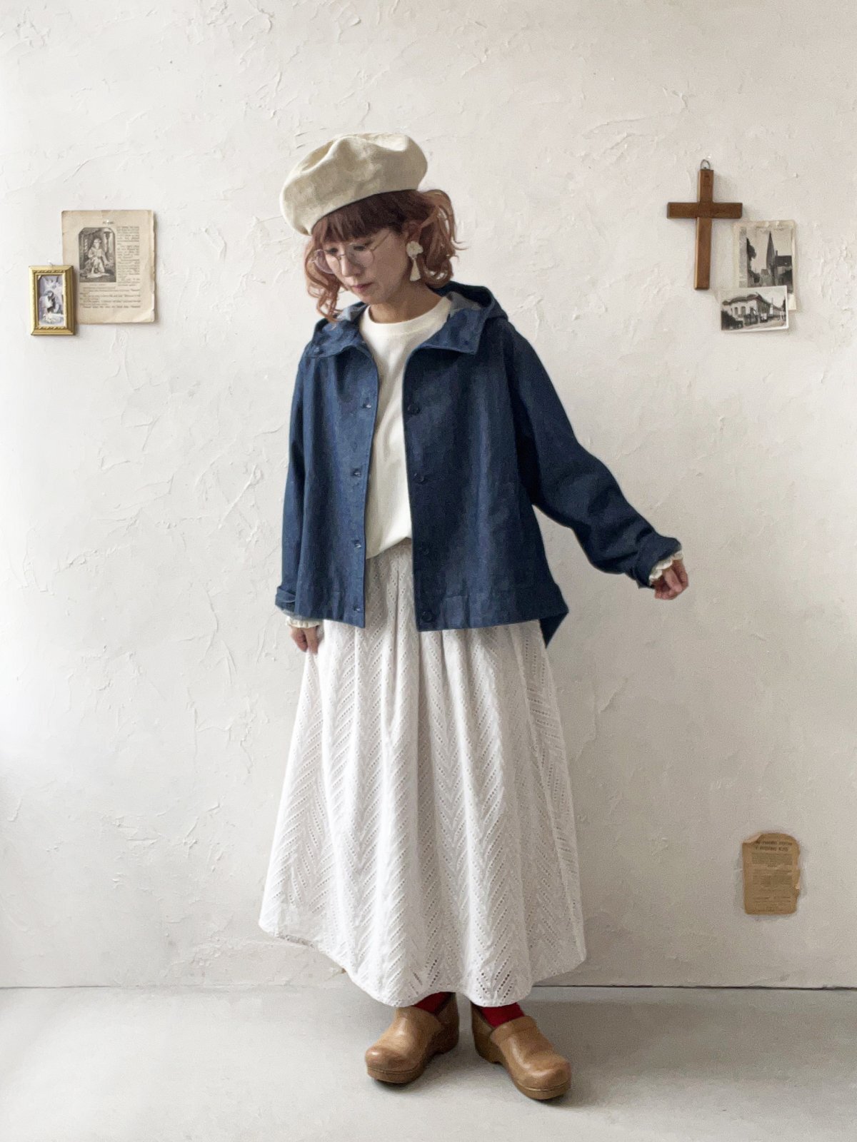 大きなフードが可愛いデニムジャケット。