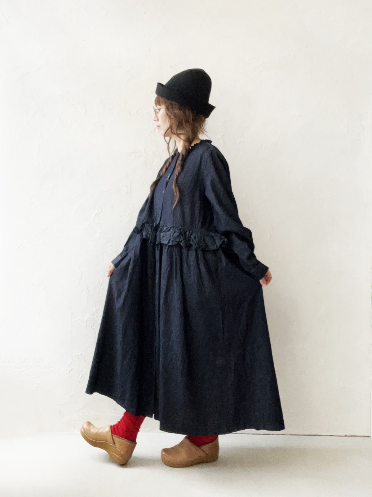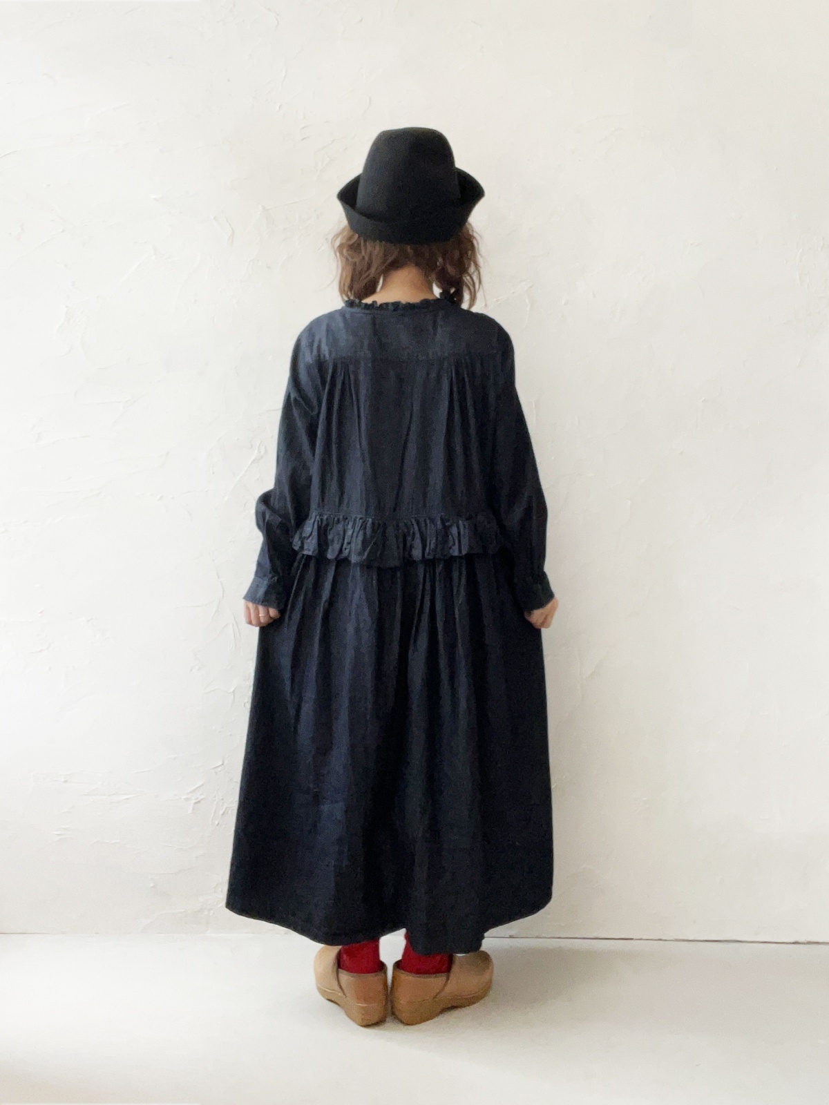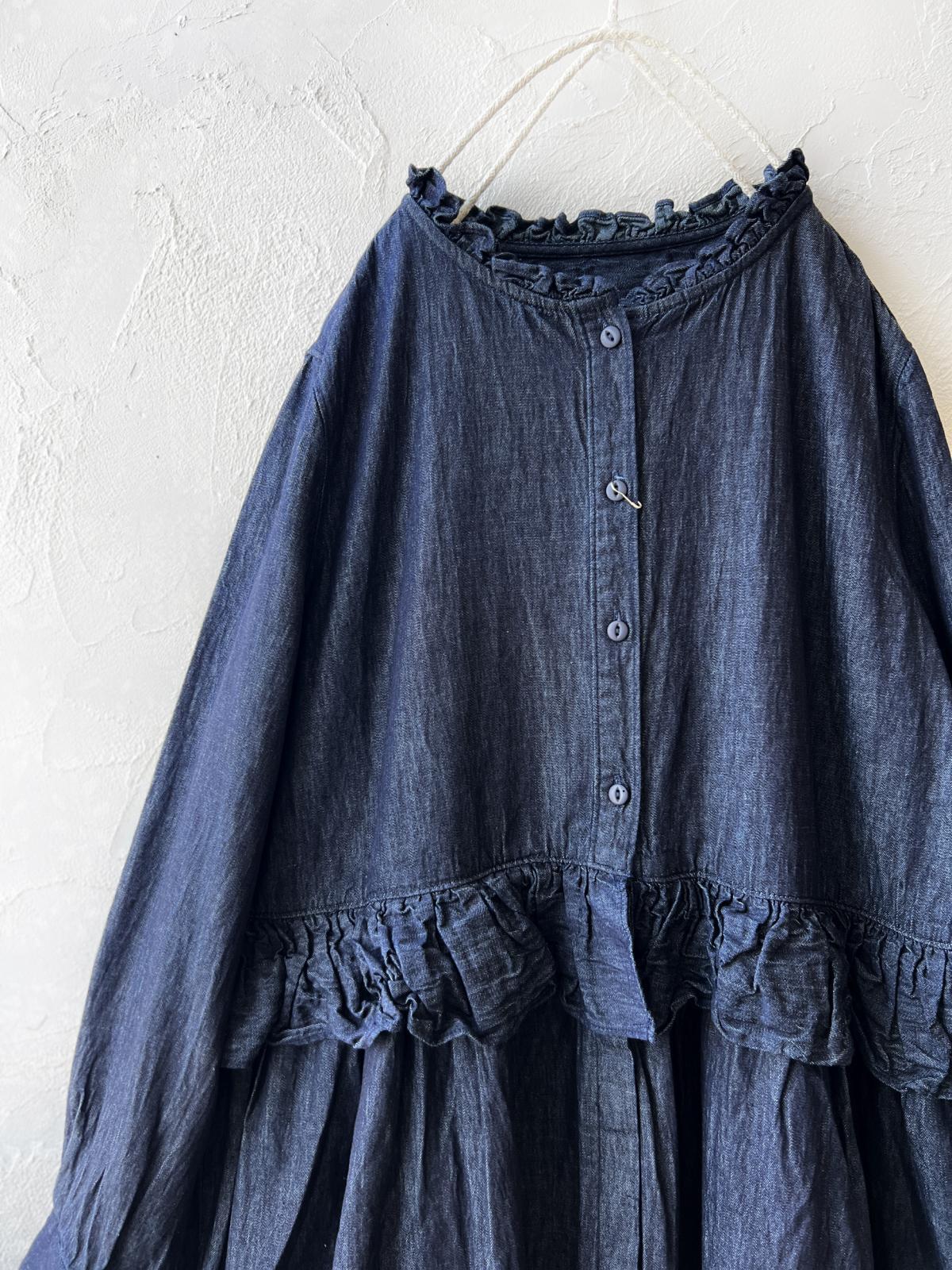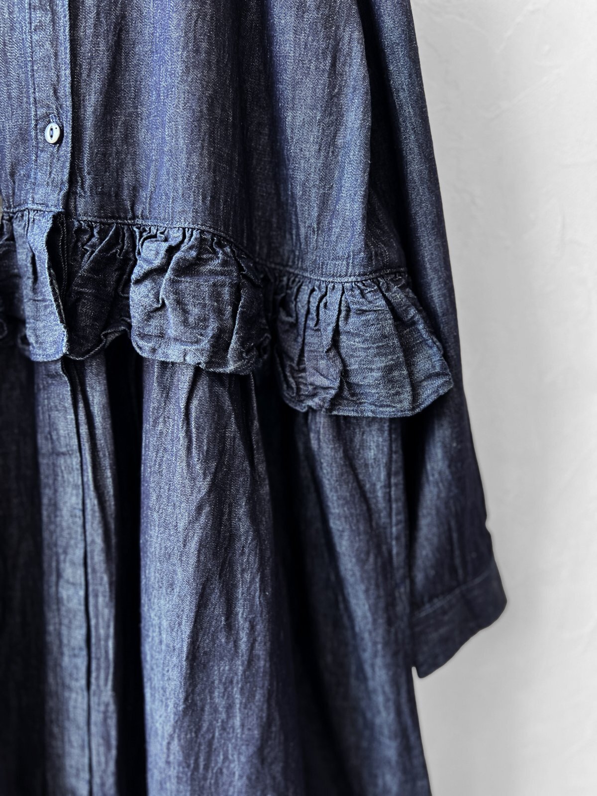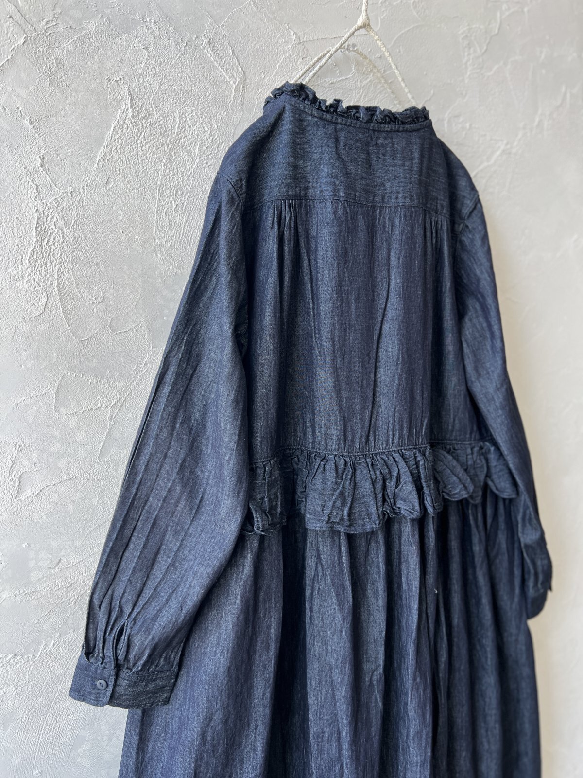 ubasoku/0124 デニムフリルワンピース・インディゴ [BNT251010]