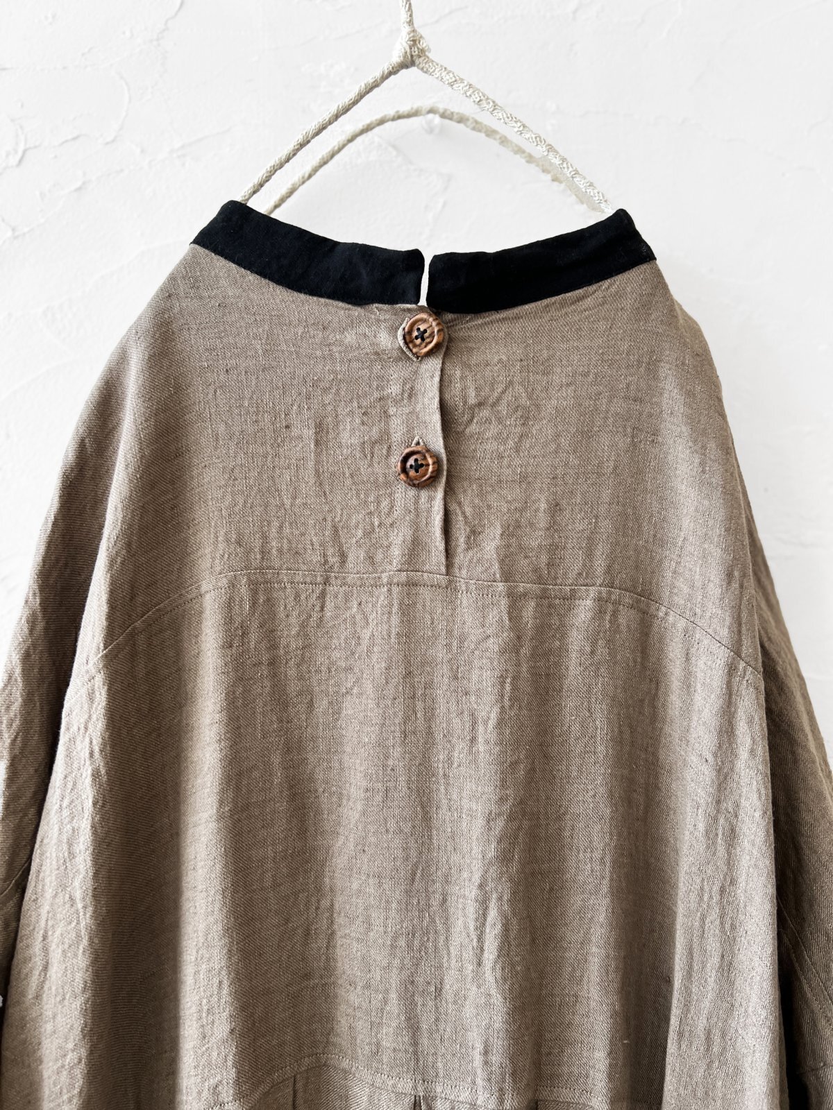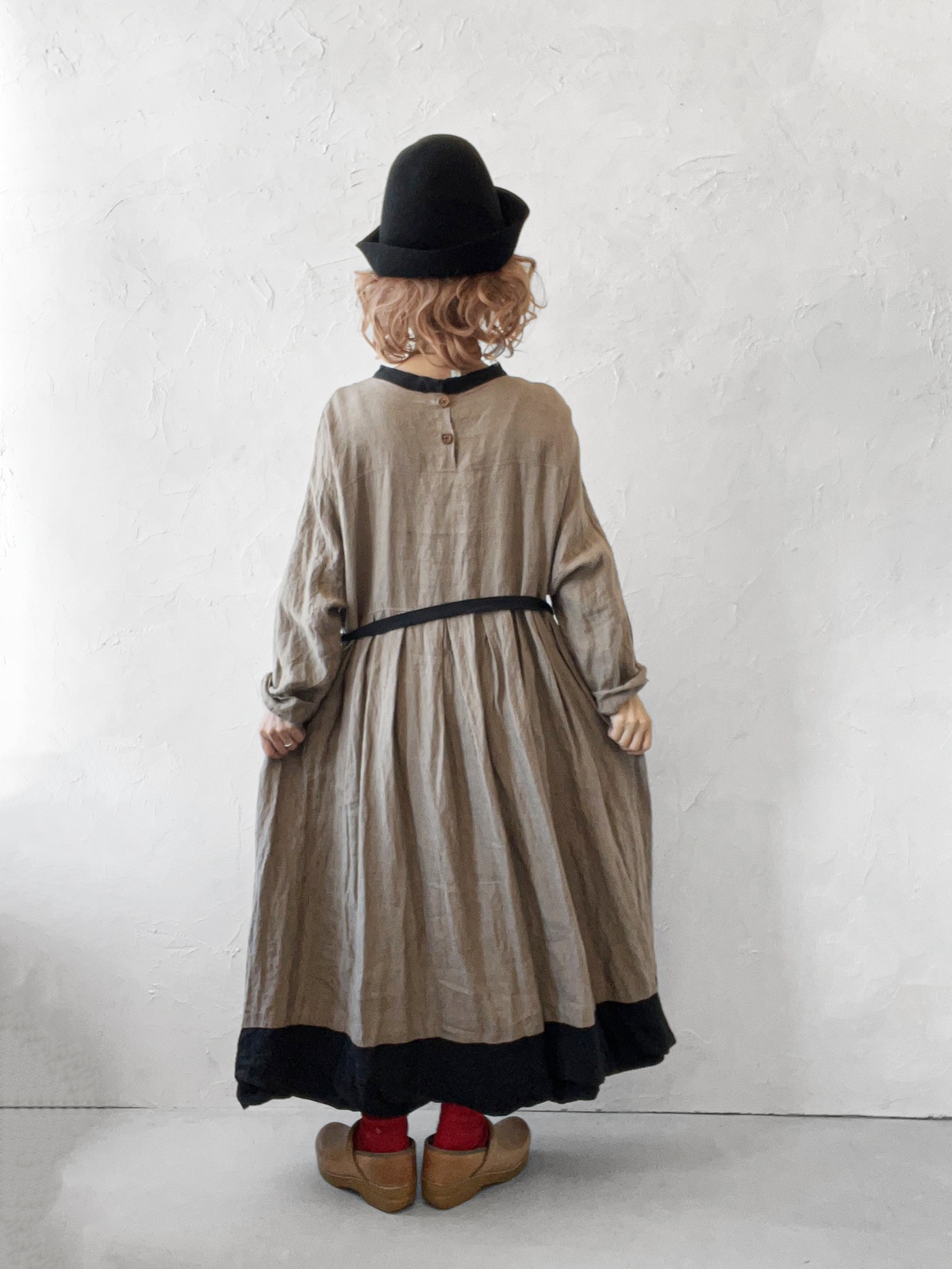 左サイドにタック。裾は黒リネンで巻いてあり、