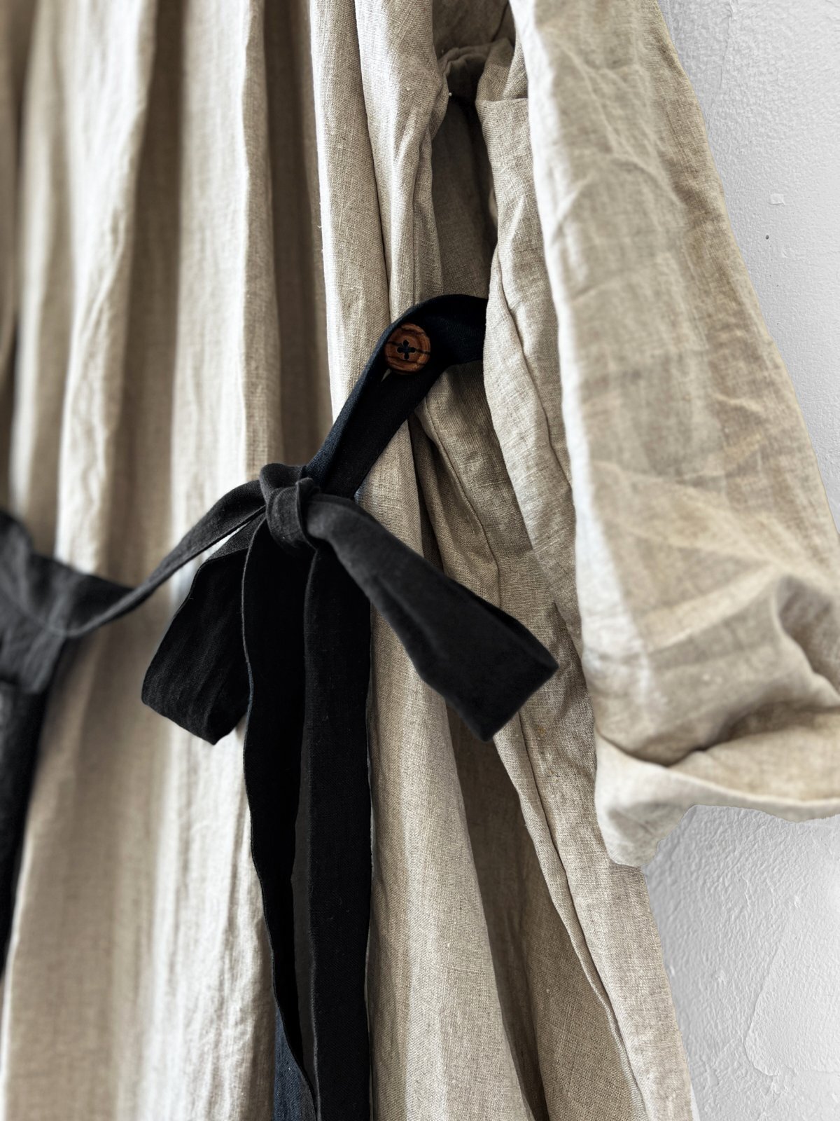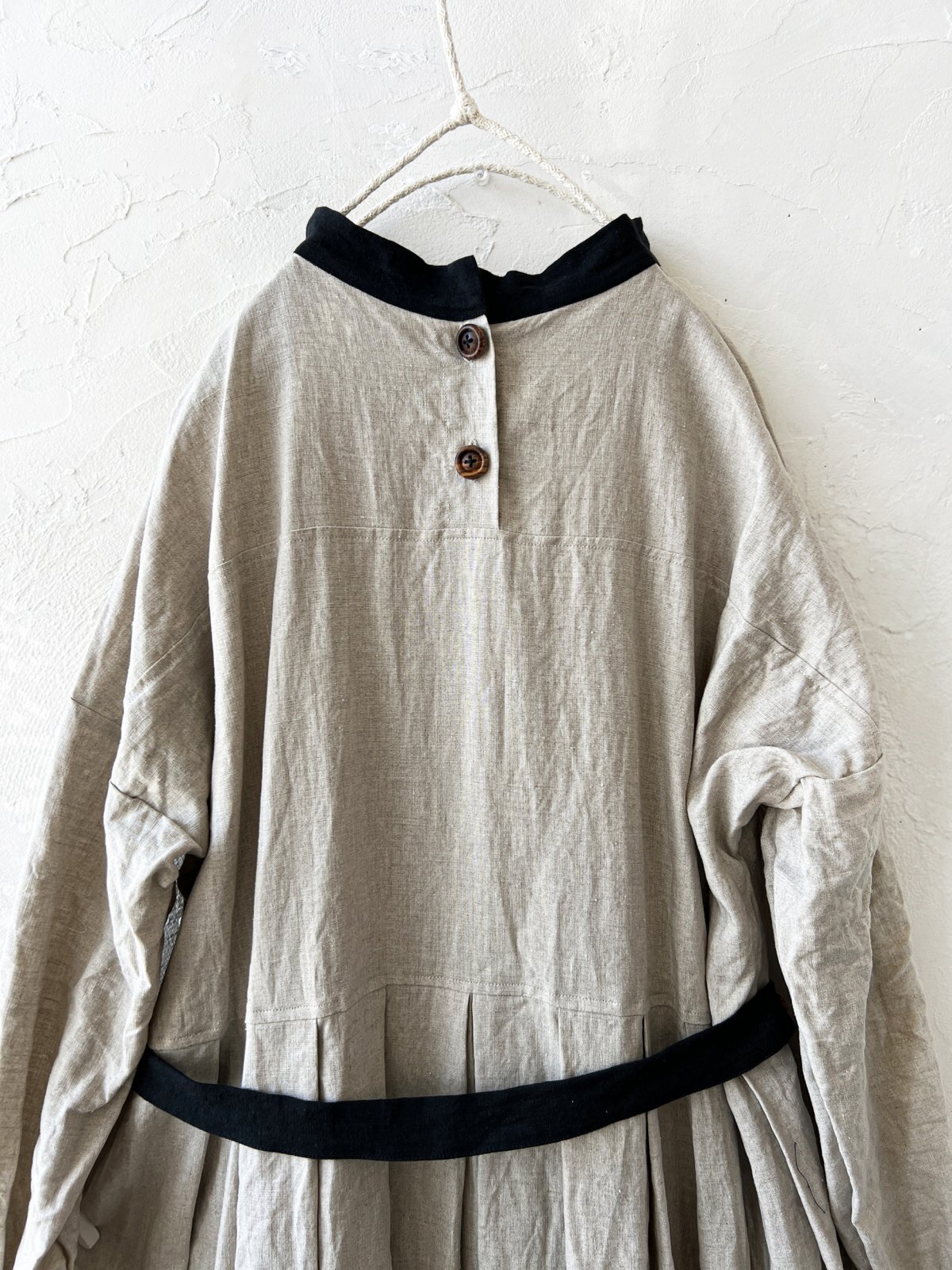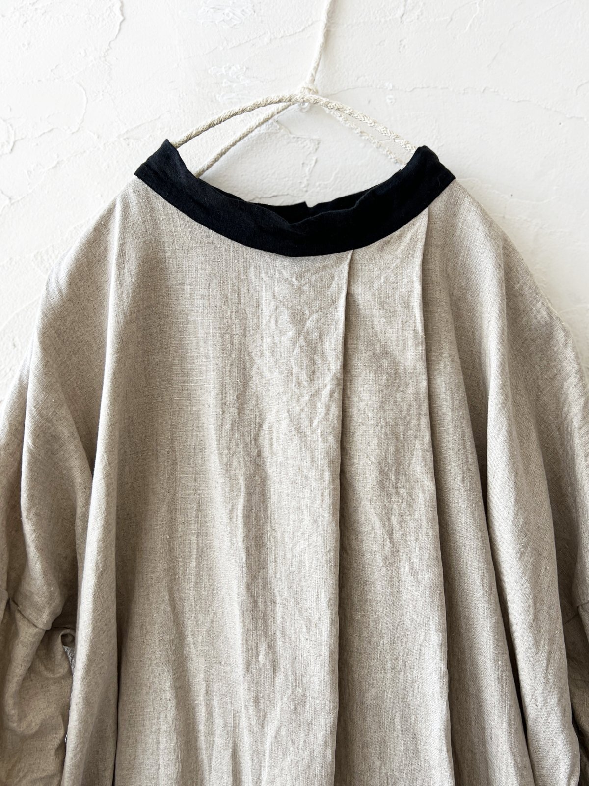 左サイドにタック。裾は黒リネンで巻いてあり、