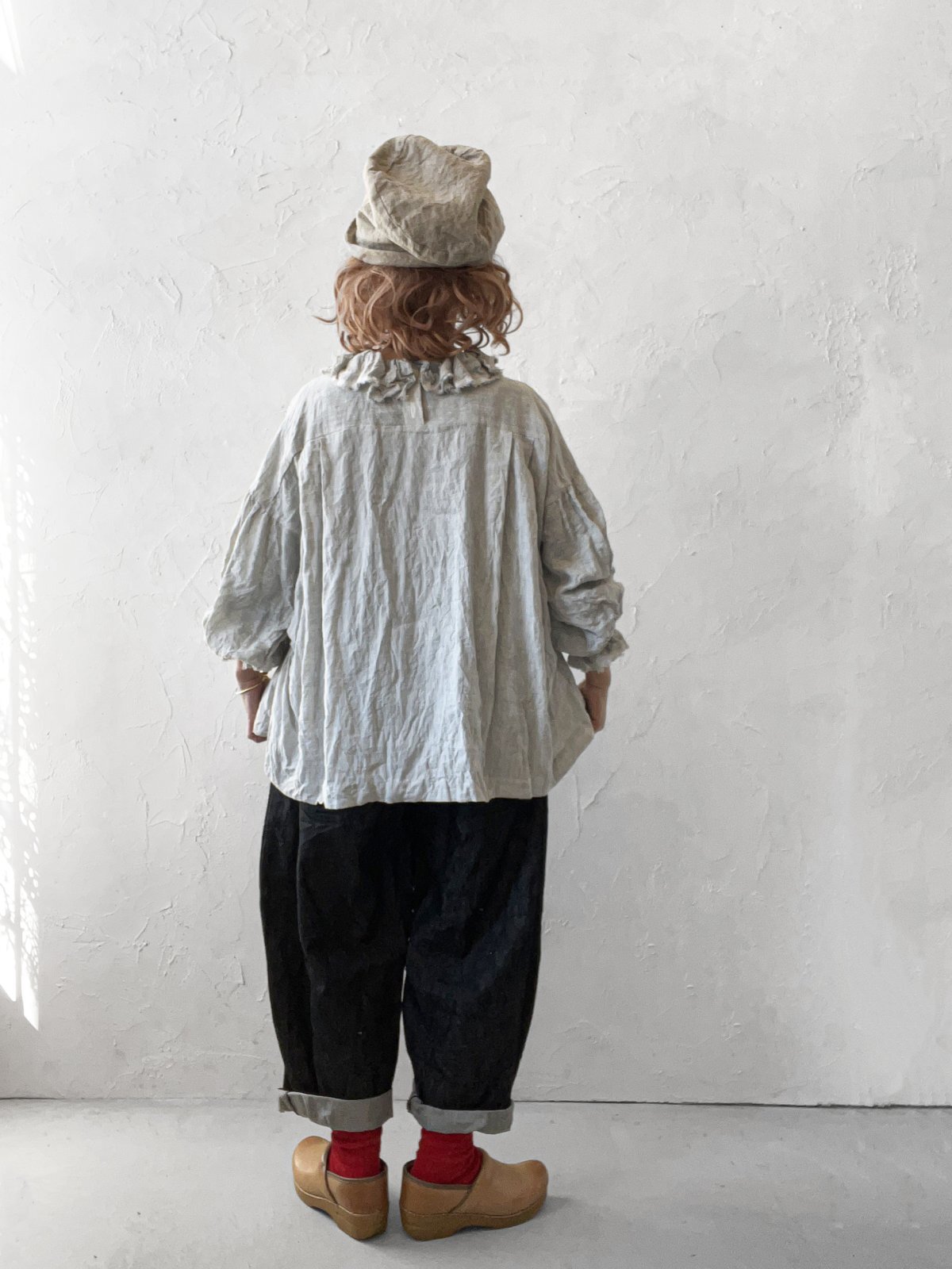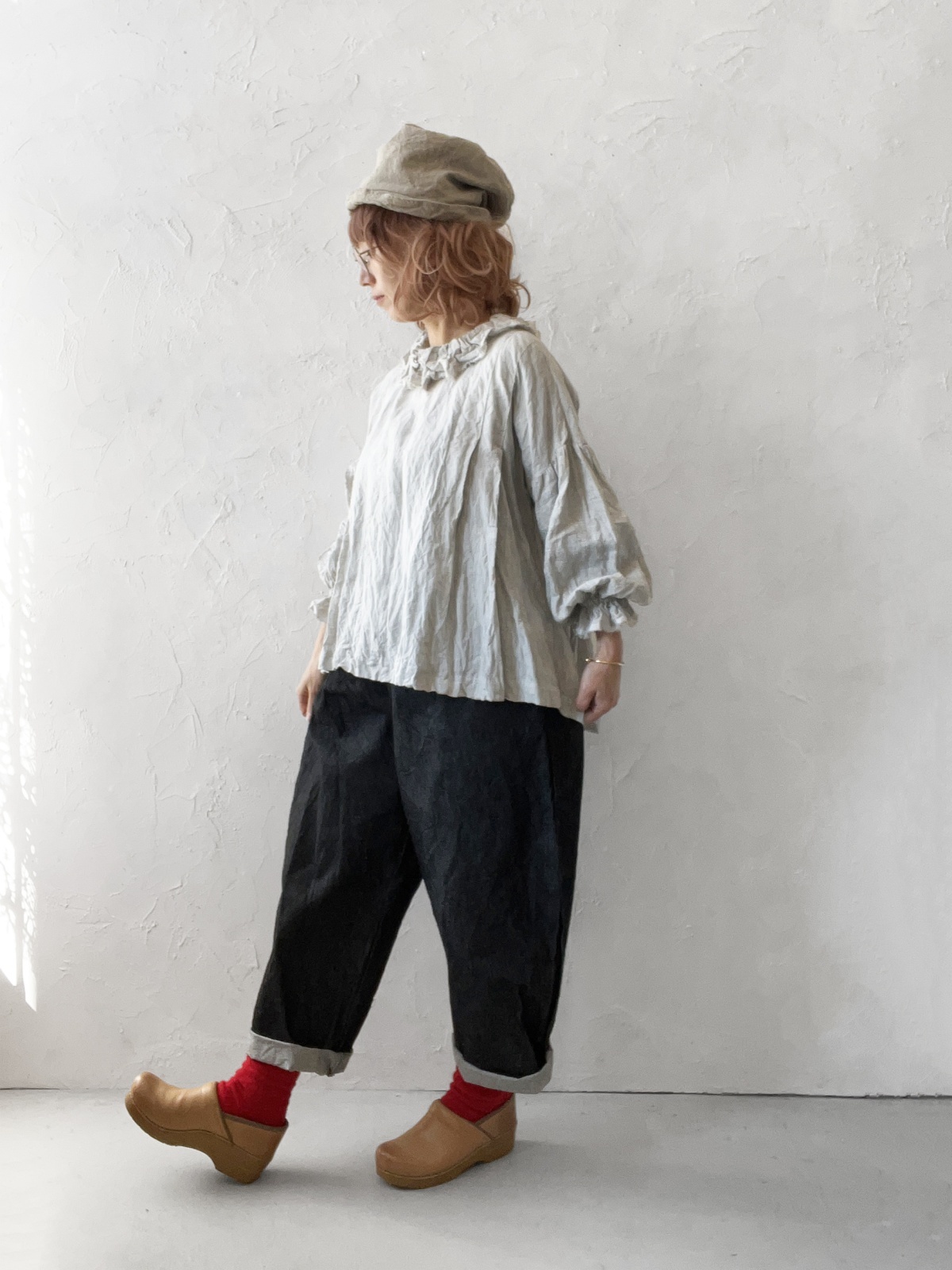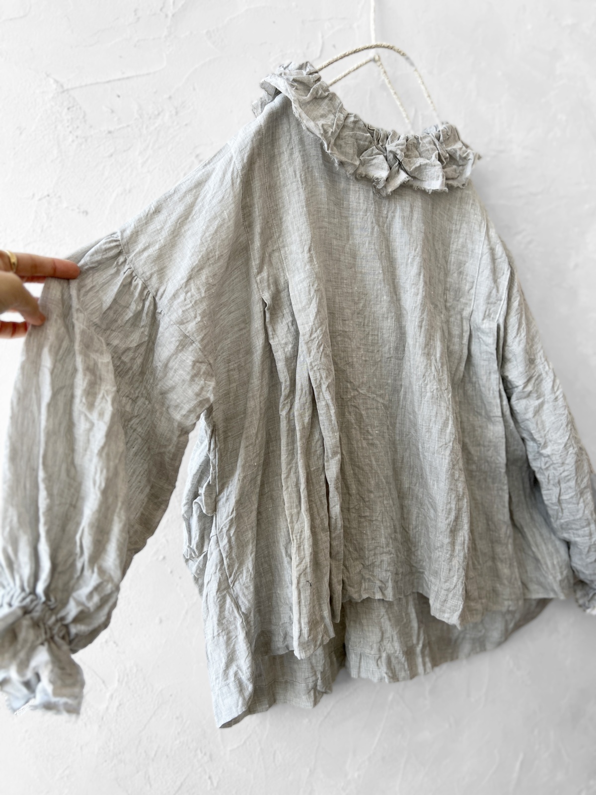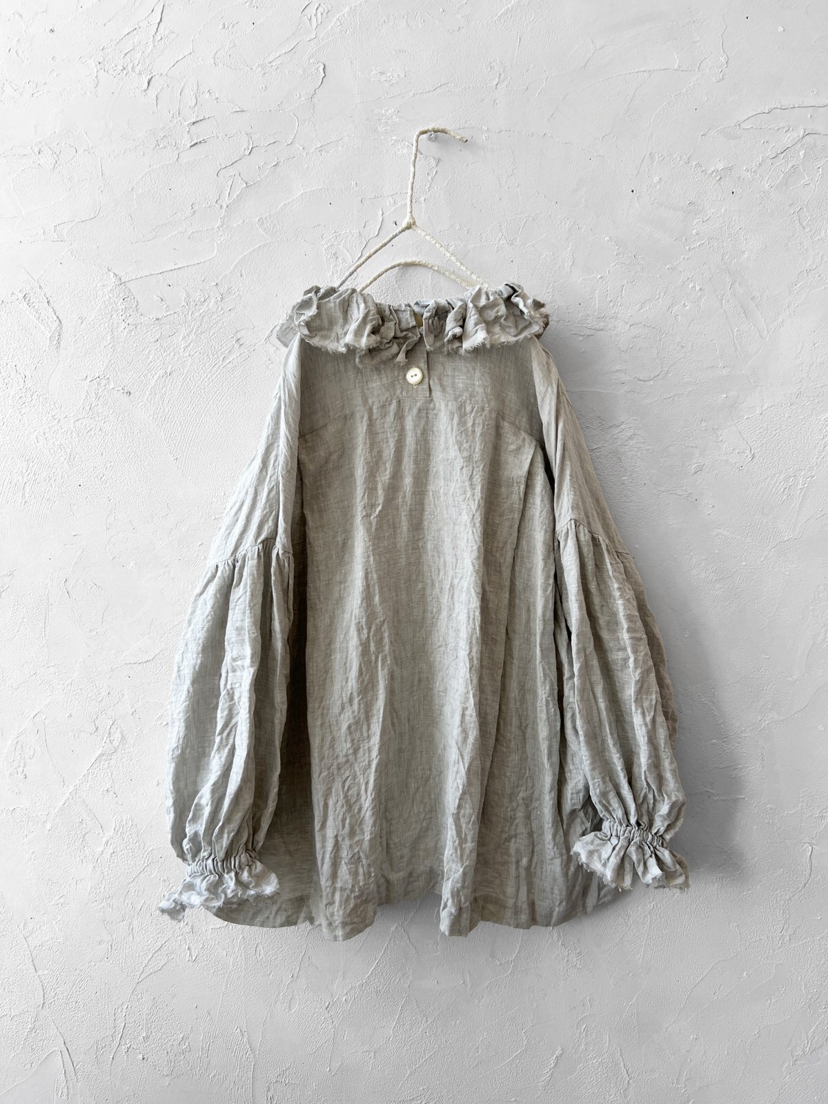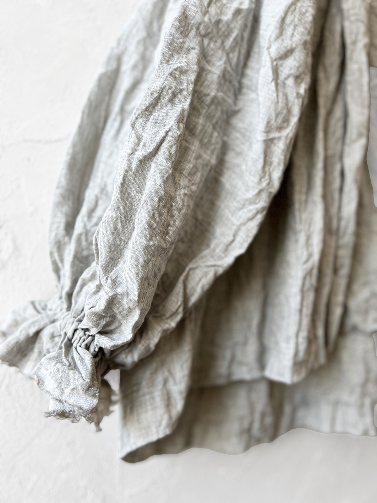 シワ感が素敵なリネンで、お袖の大きめの膨らみと