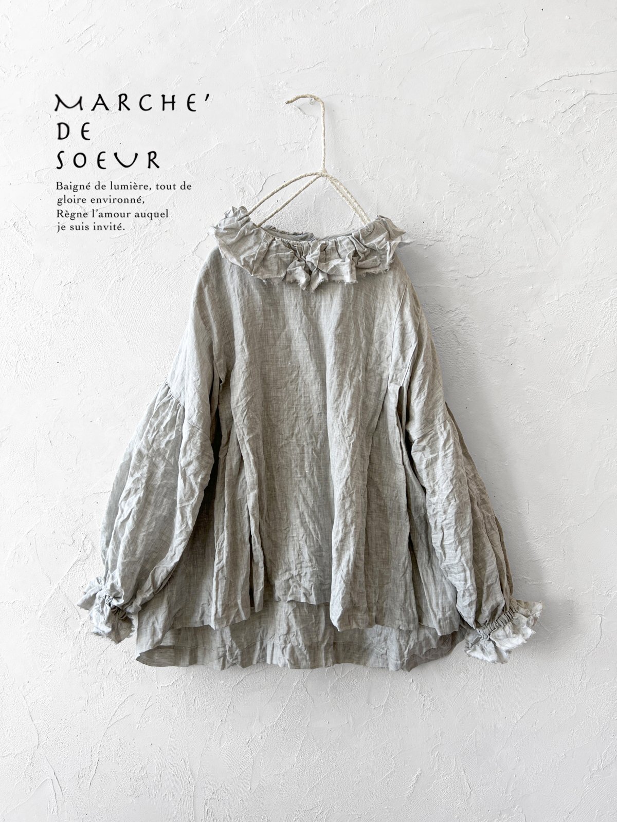 MARCHE' DE SOEUR/ラッフル襟のパフ袖プルオーバー・ホワイトグレー [MDS251008]