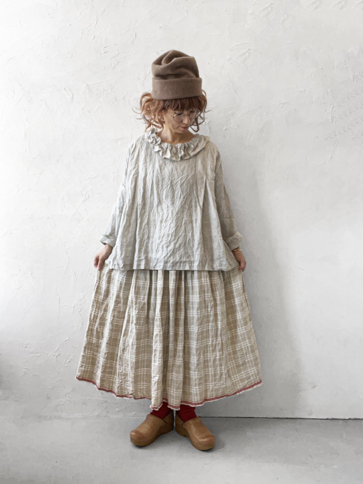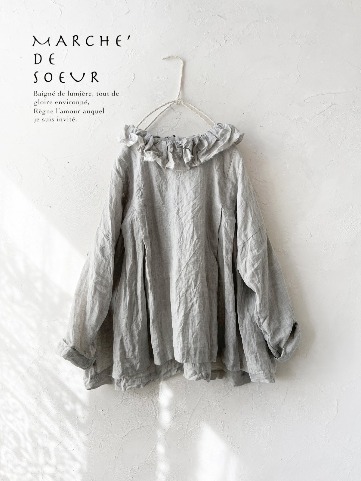 MARCHE' DE SOEUR/ラッフル襟のプルオーバー・ホワイトグレー [MDS251002]