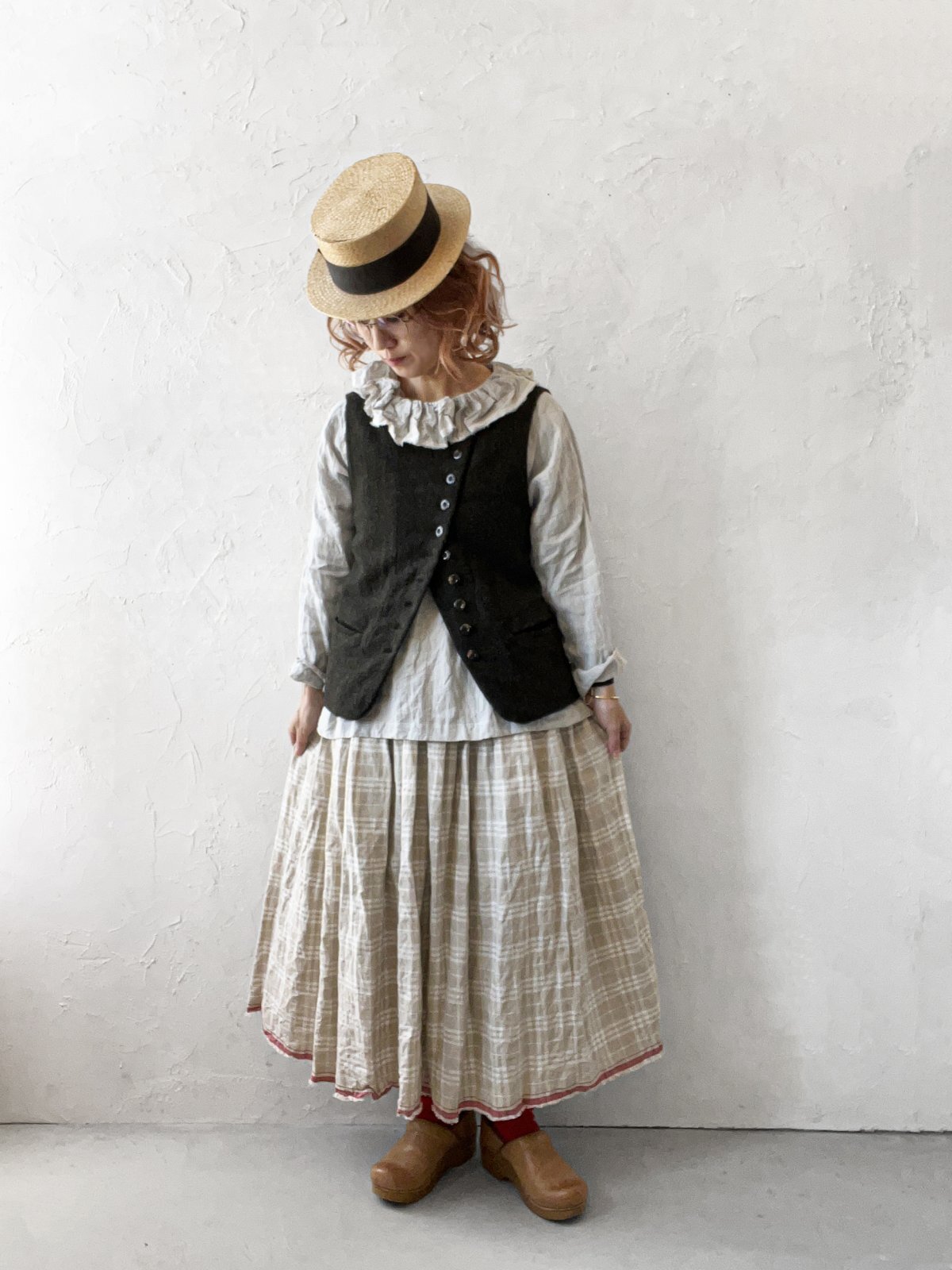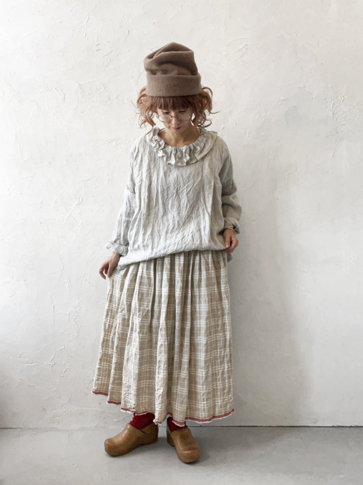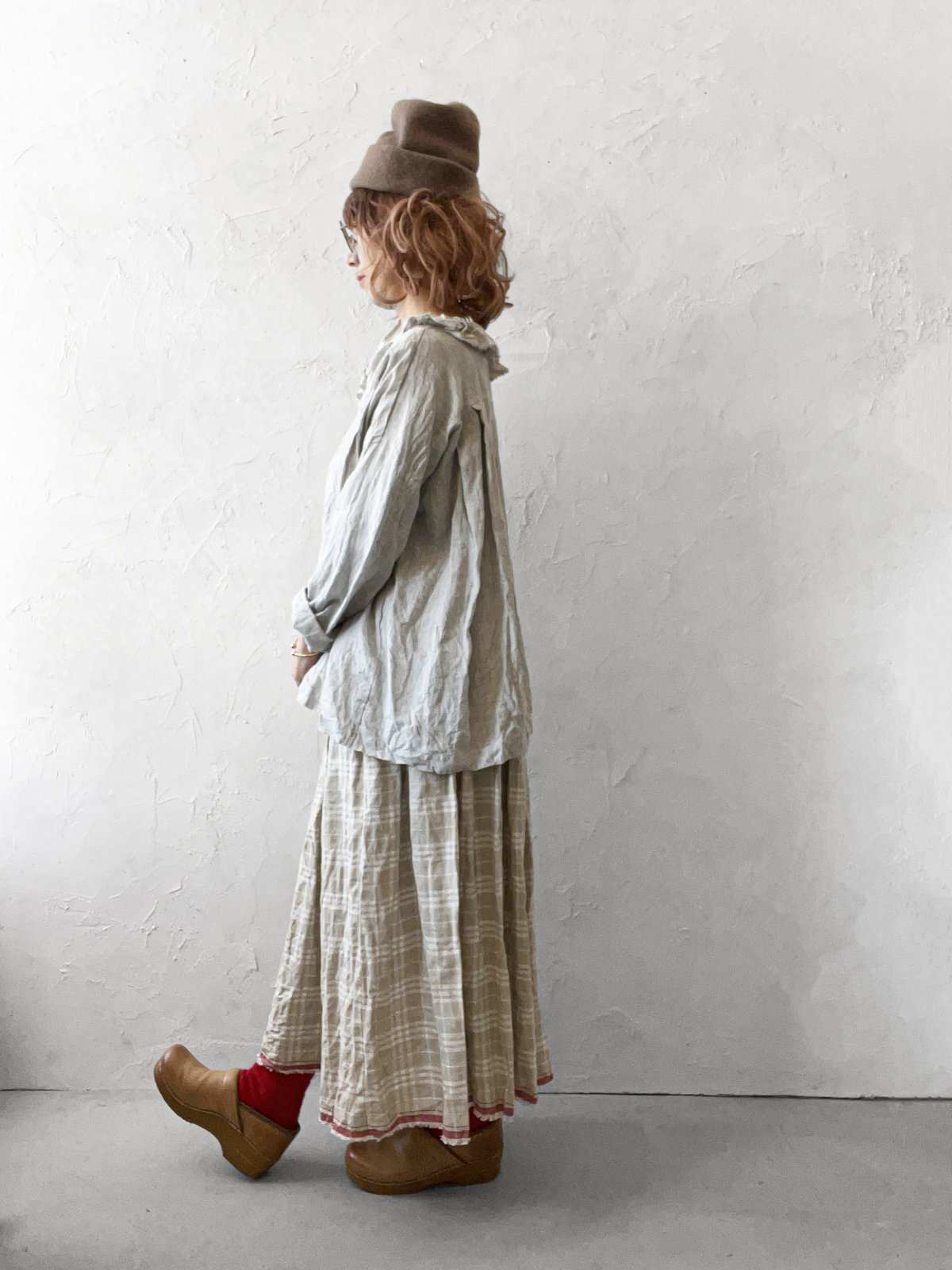 シワ感が素敵なリネンで、お袖はストンとシンプルな形。