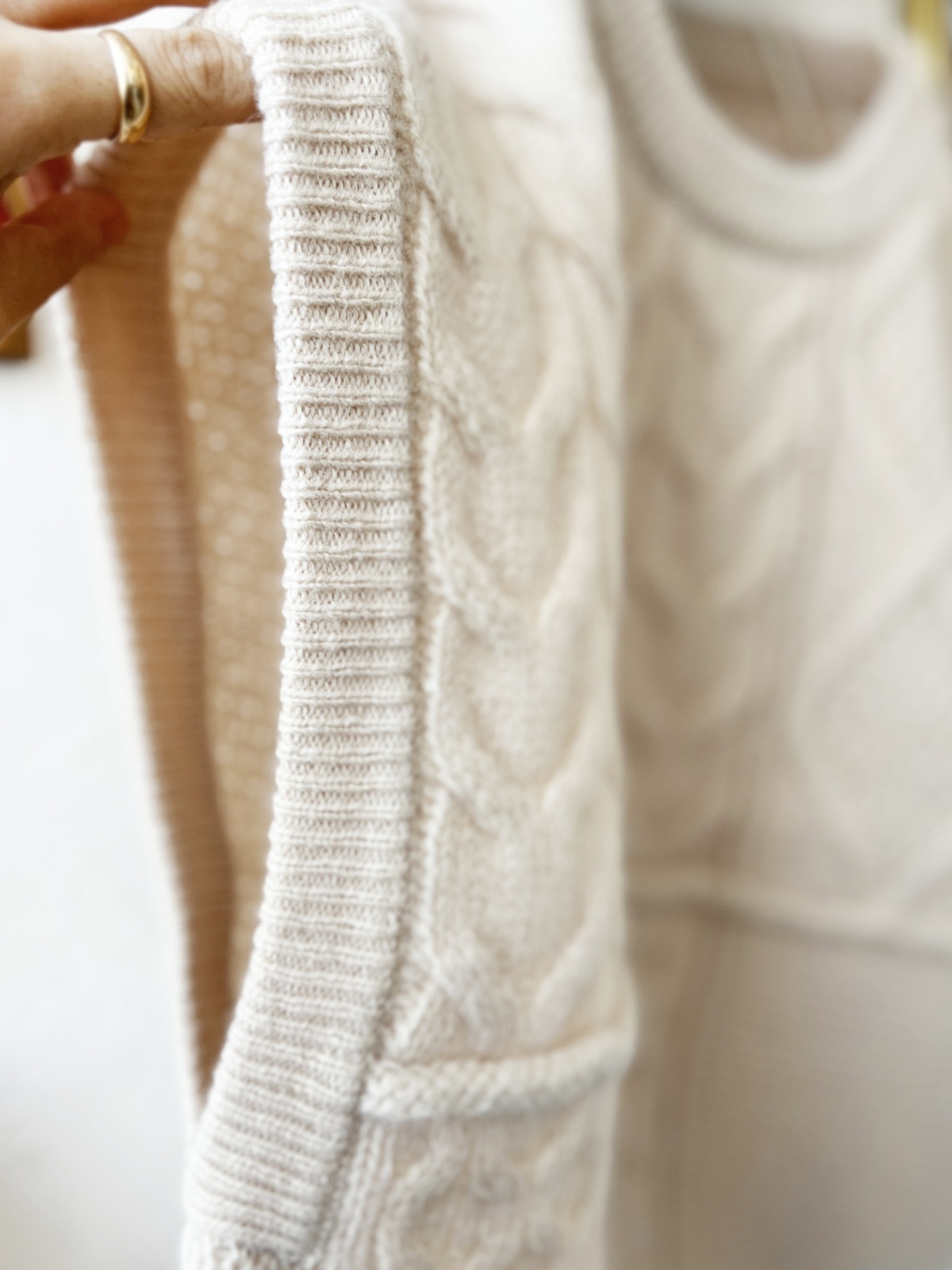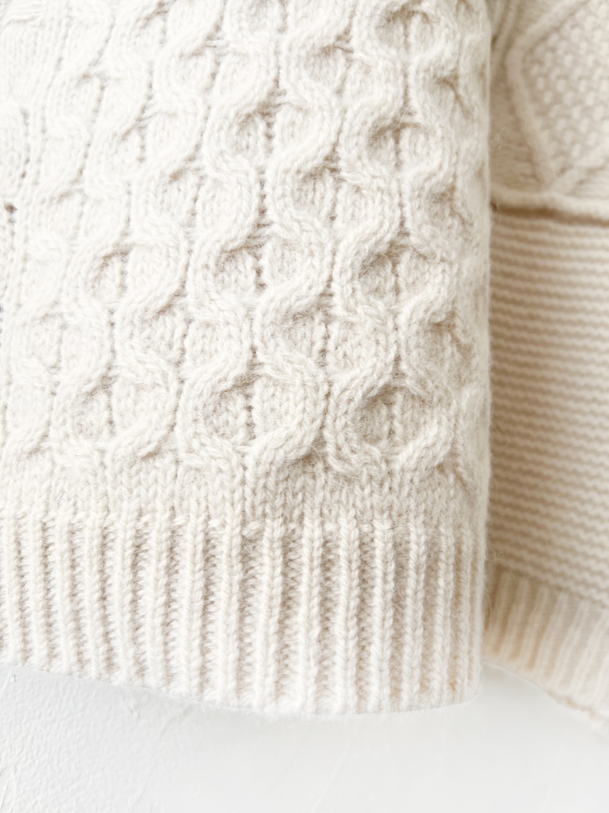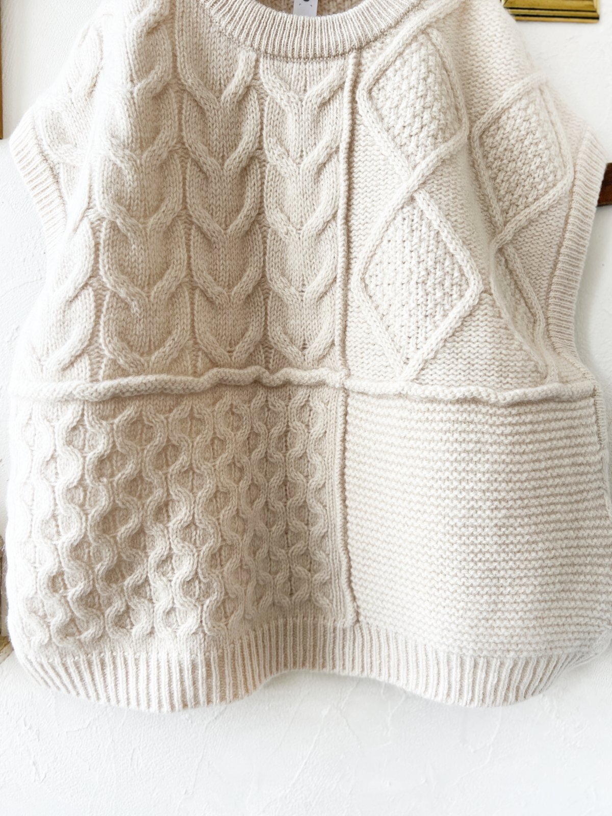 いろんなアラン柄をパッチワークのように接ぎ合わせた