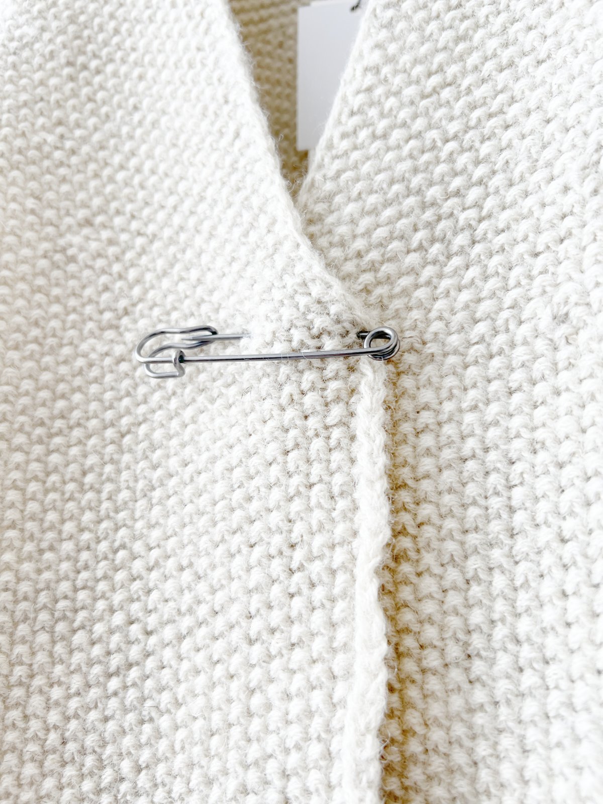 セットの前を留めるピンは外して前開きで羽織ってもOK。