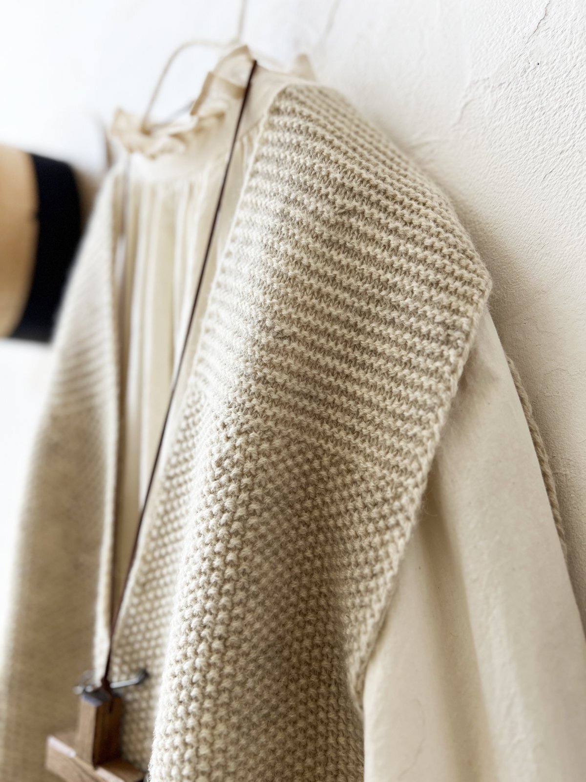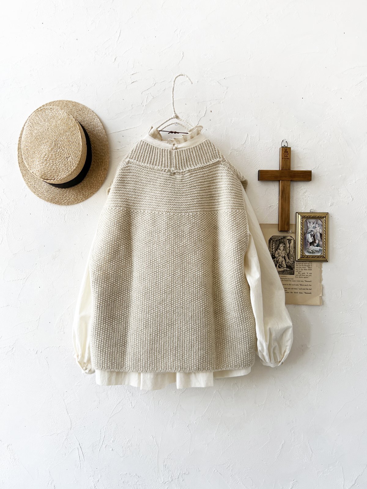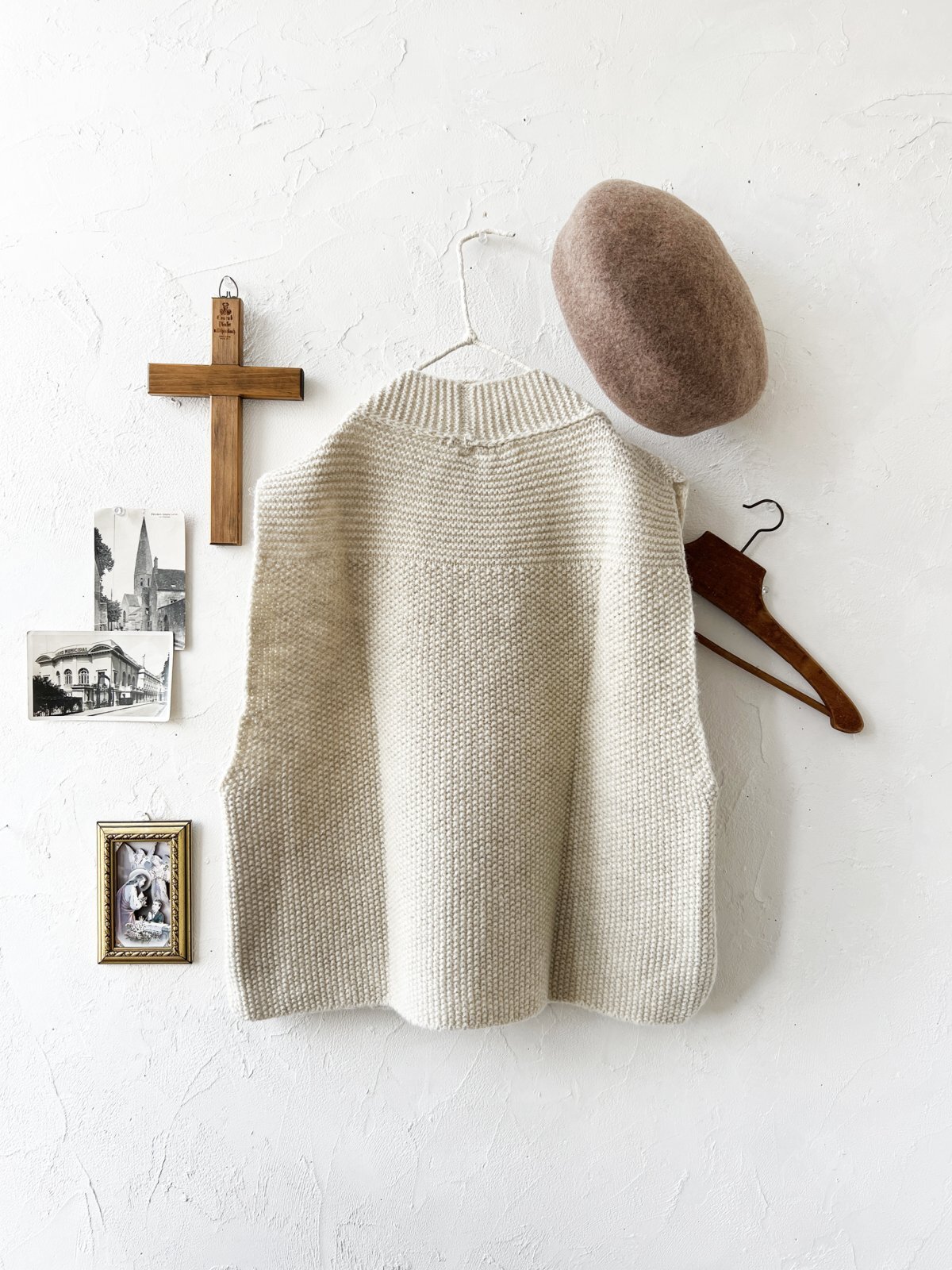 柄編みのシンプルなワイドベスト。どんなインナーにも