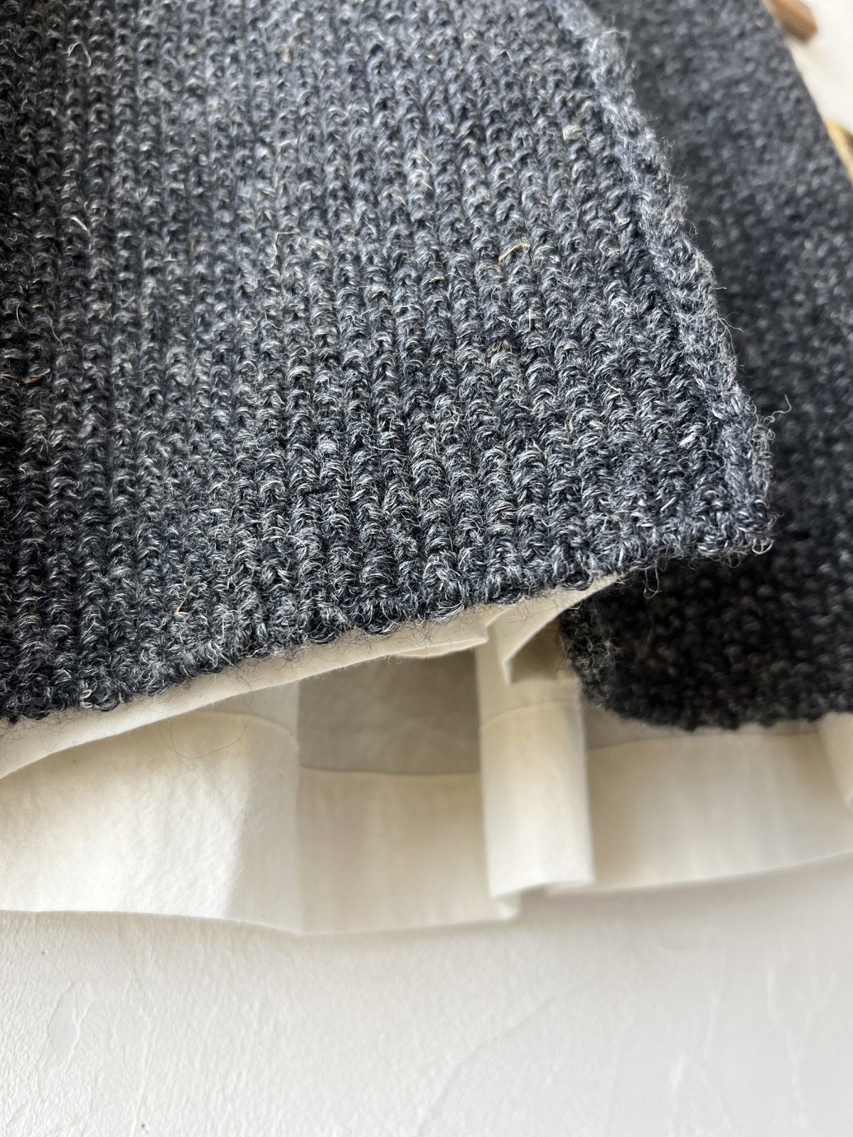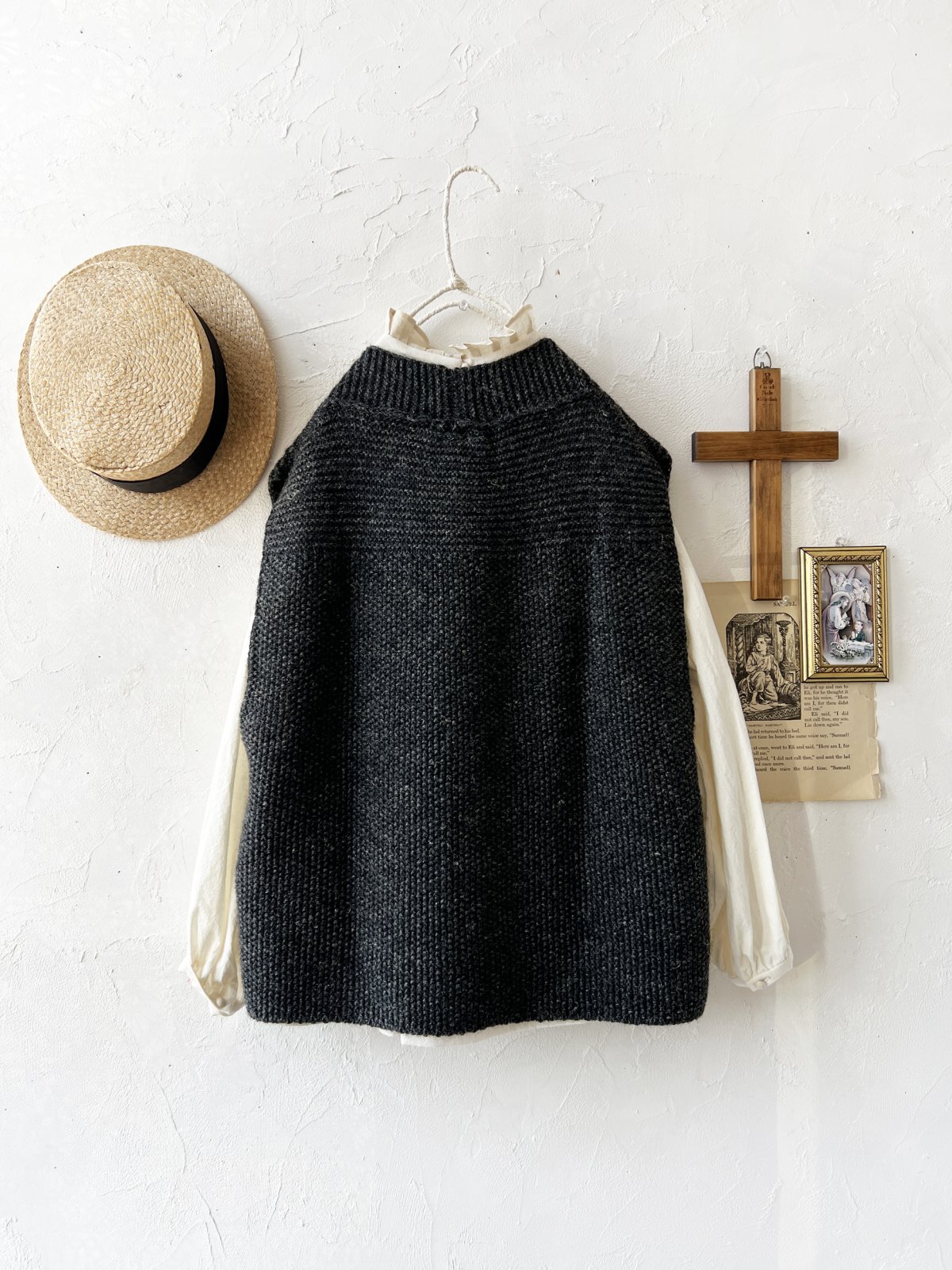 柄編みのシンプルなワイドベスト。どんなインナーにも