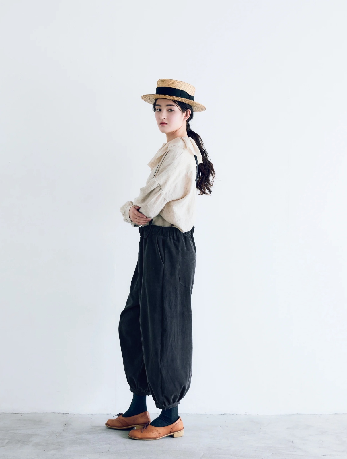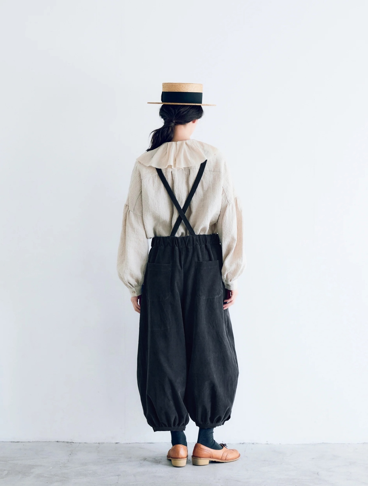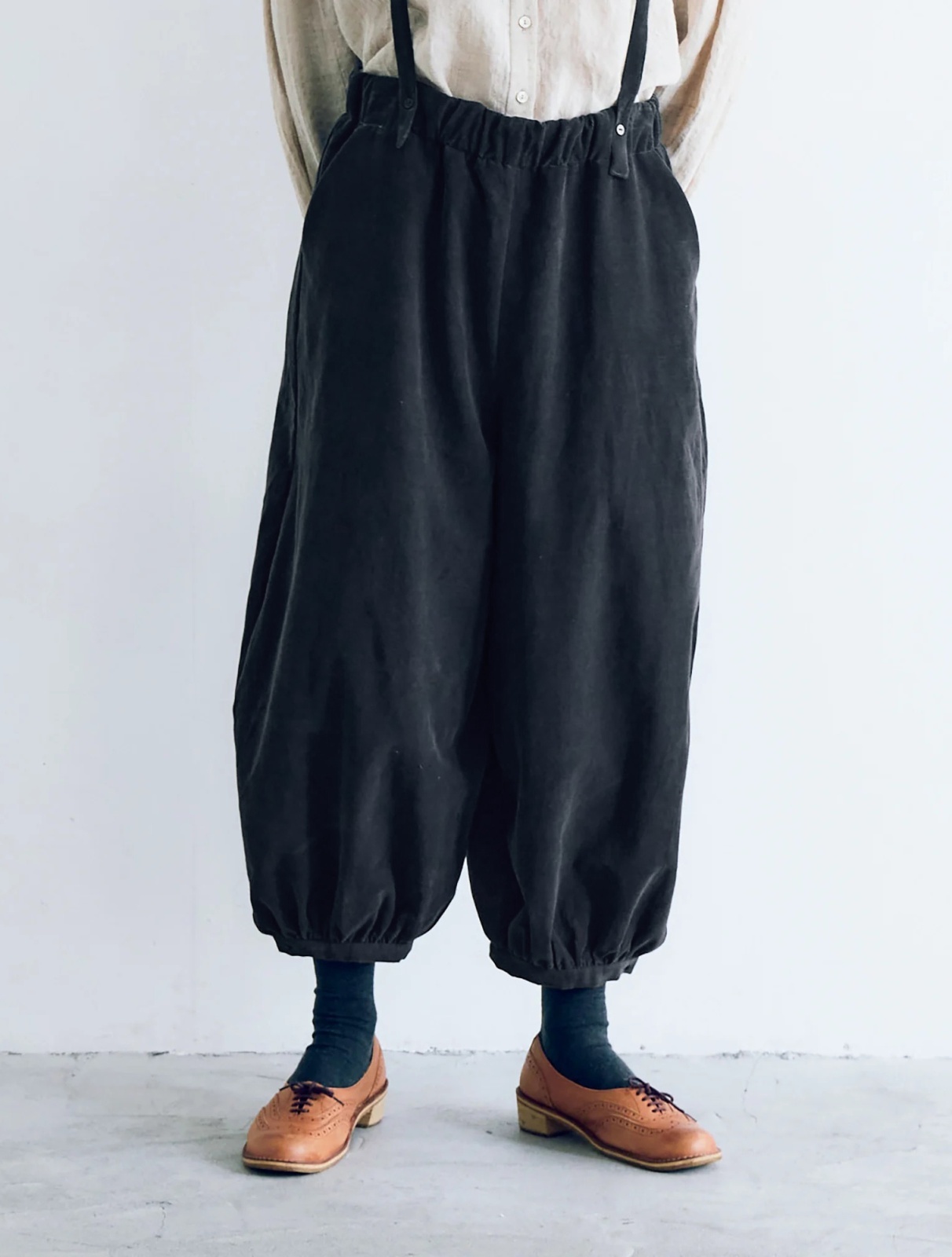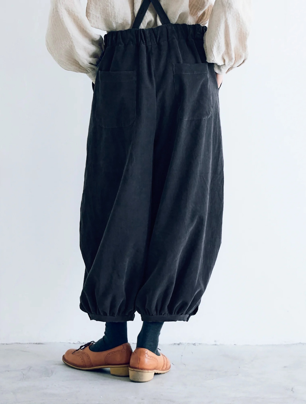 サスペンダーバルーンパンツ。