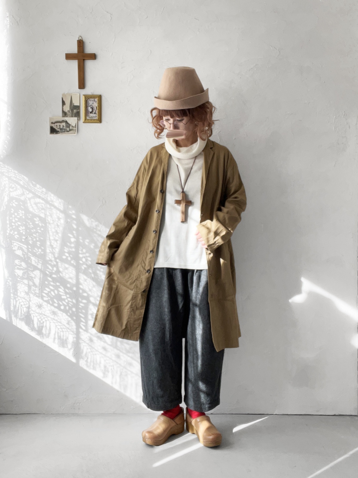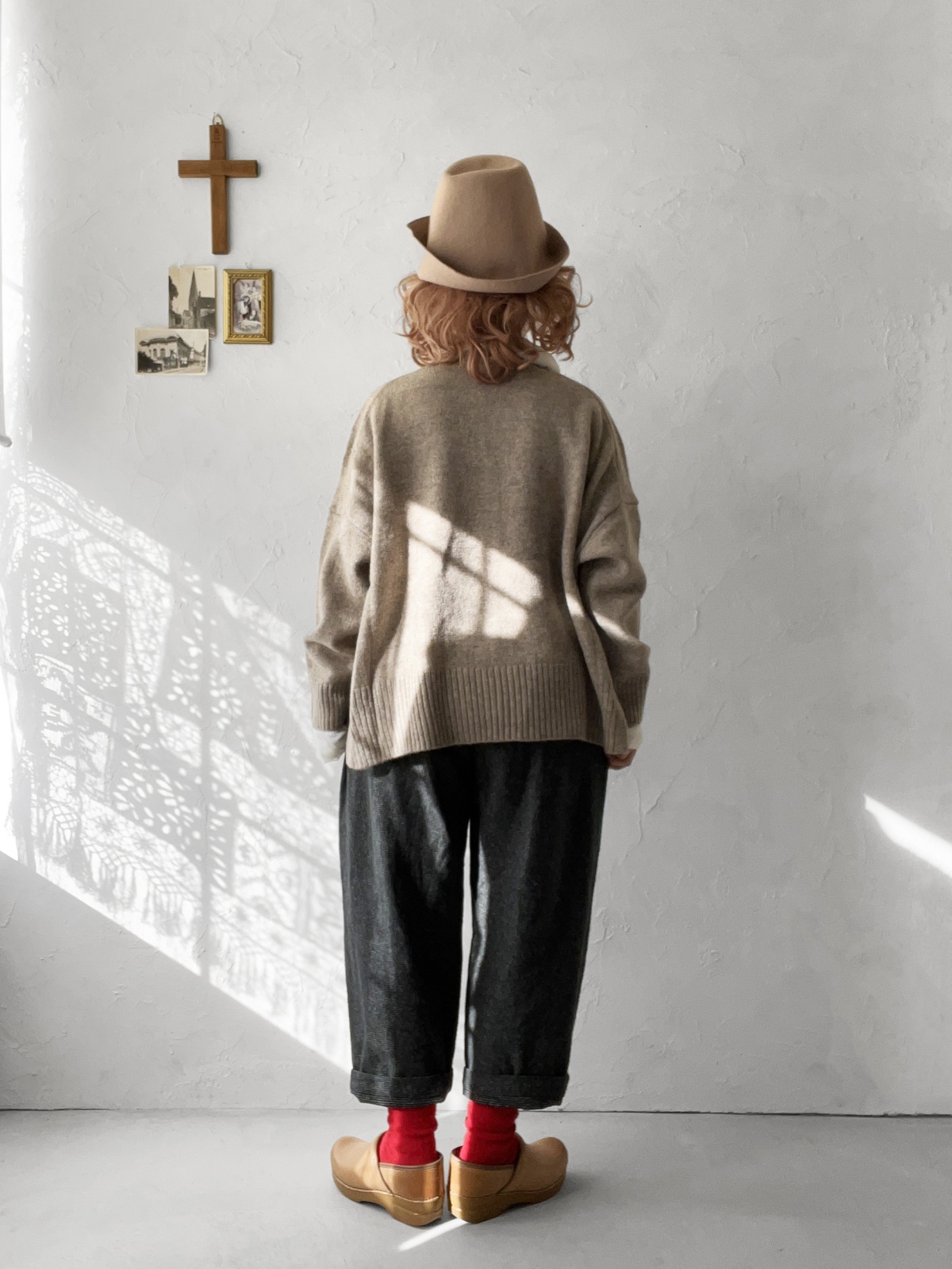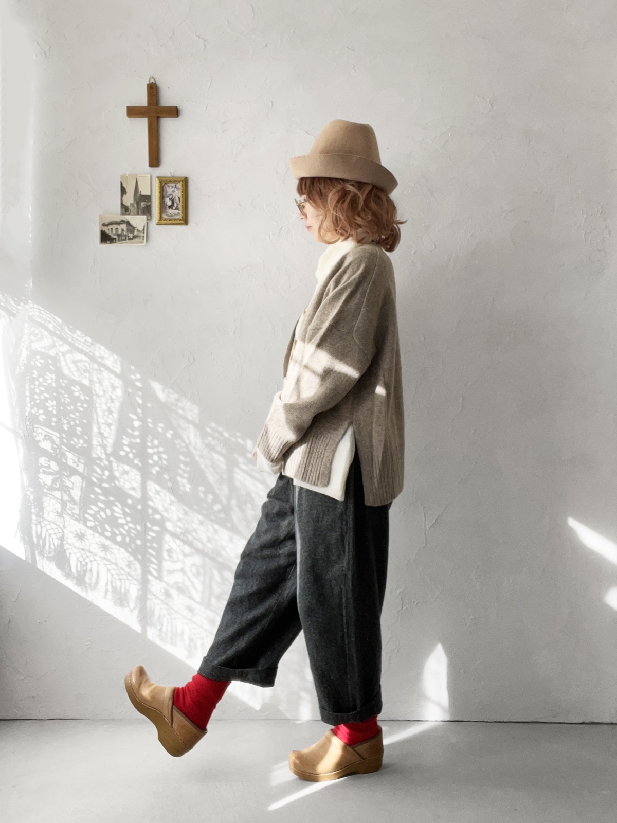 履き心地ゆったり、ほどよい丸みのあるタックパンツです。