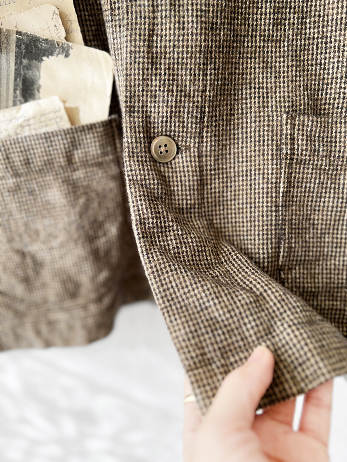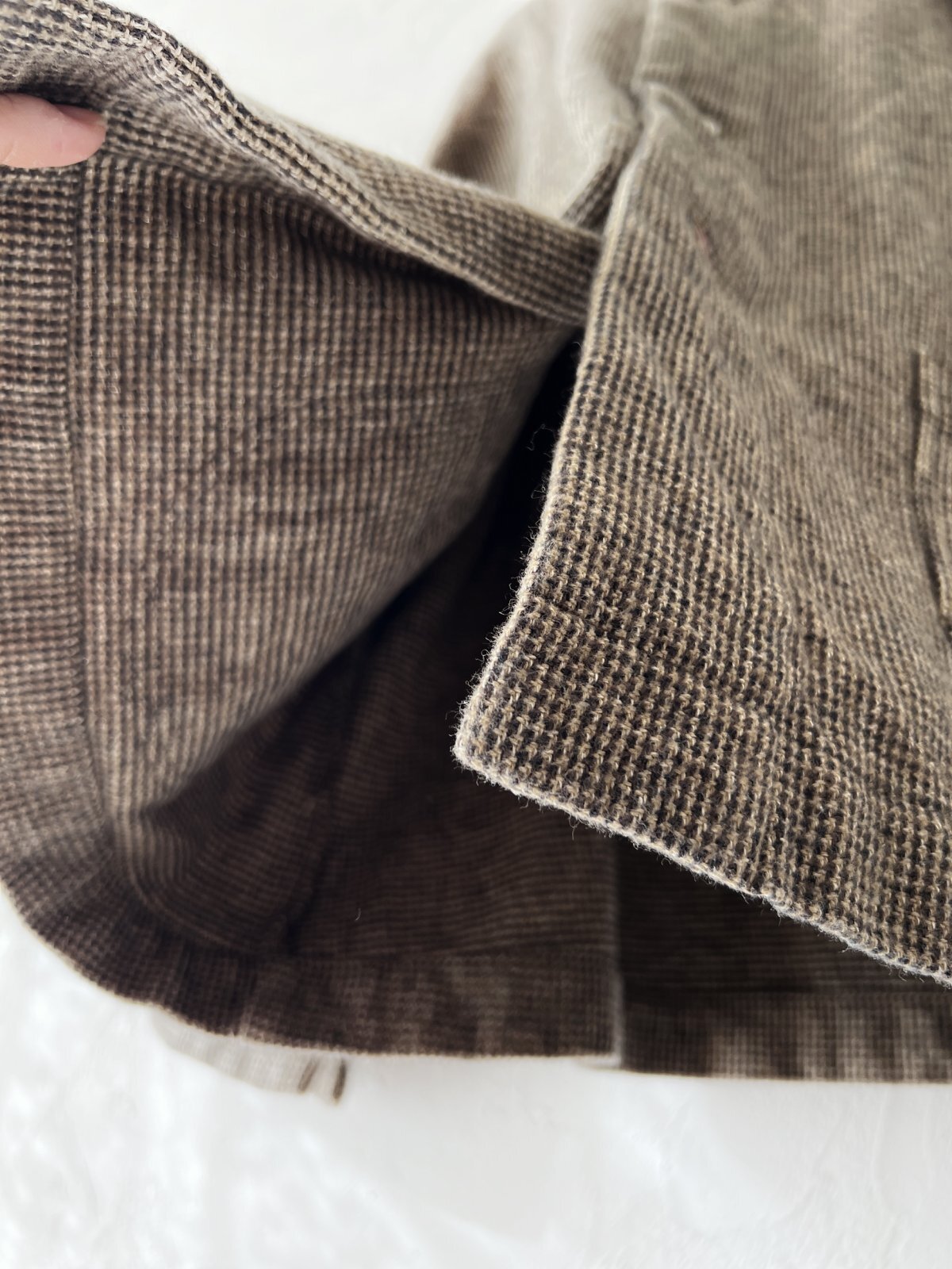 生地は3色の糸を撚り合わせた細かなチェックです。