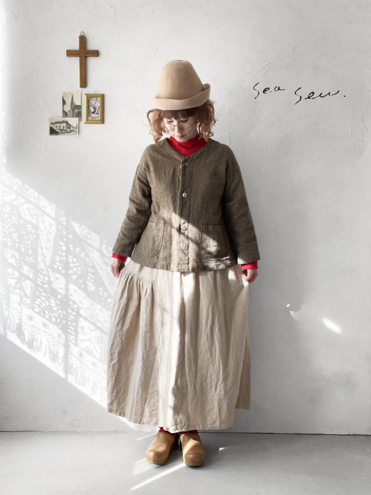 seasew./103 ツイードノーカラージャケット・ブラウンチェック [STI251007]