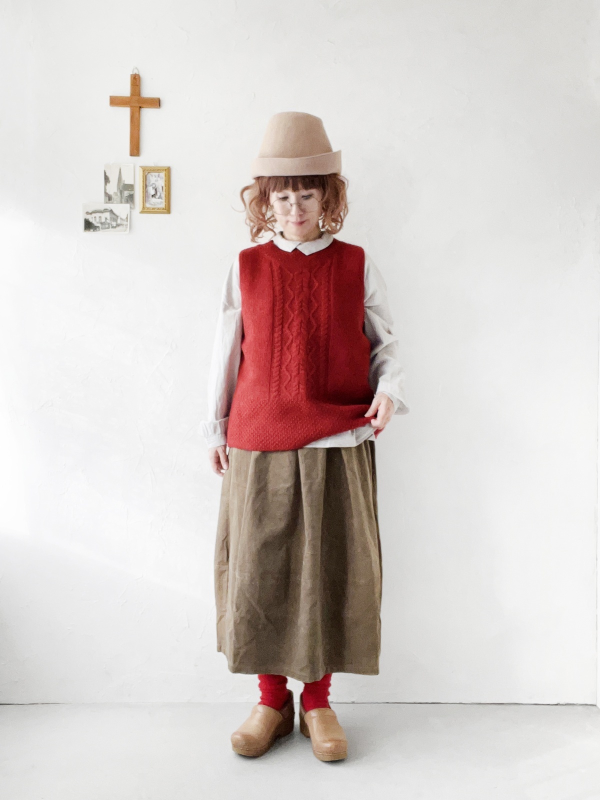 SO/後ろボタンニットベスト・オキシドレッド [COF251102]