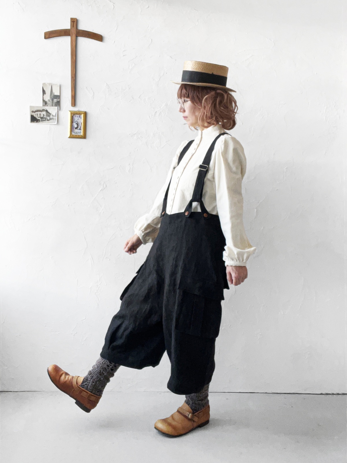 ヴィンテージのサスペンダーパンツを基にデザインした