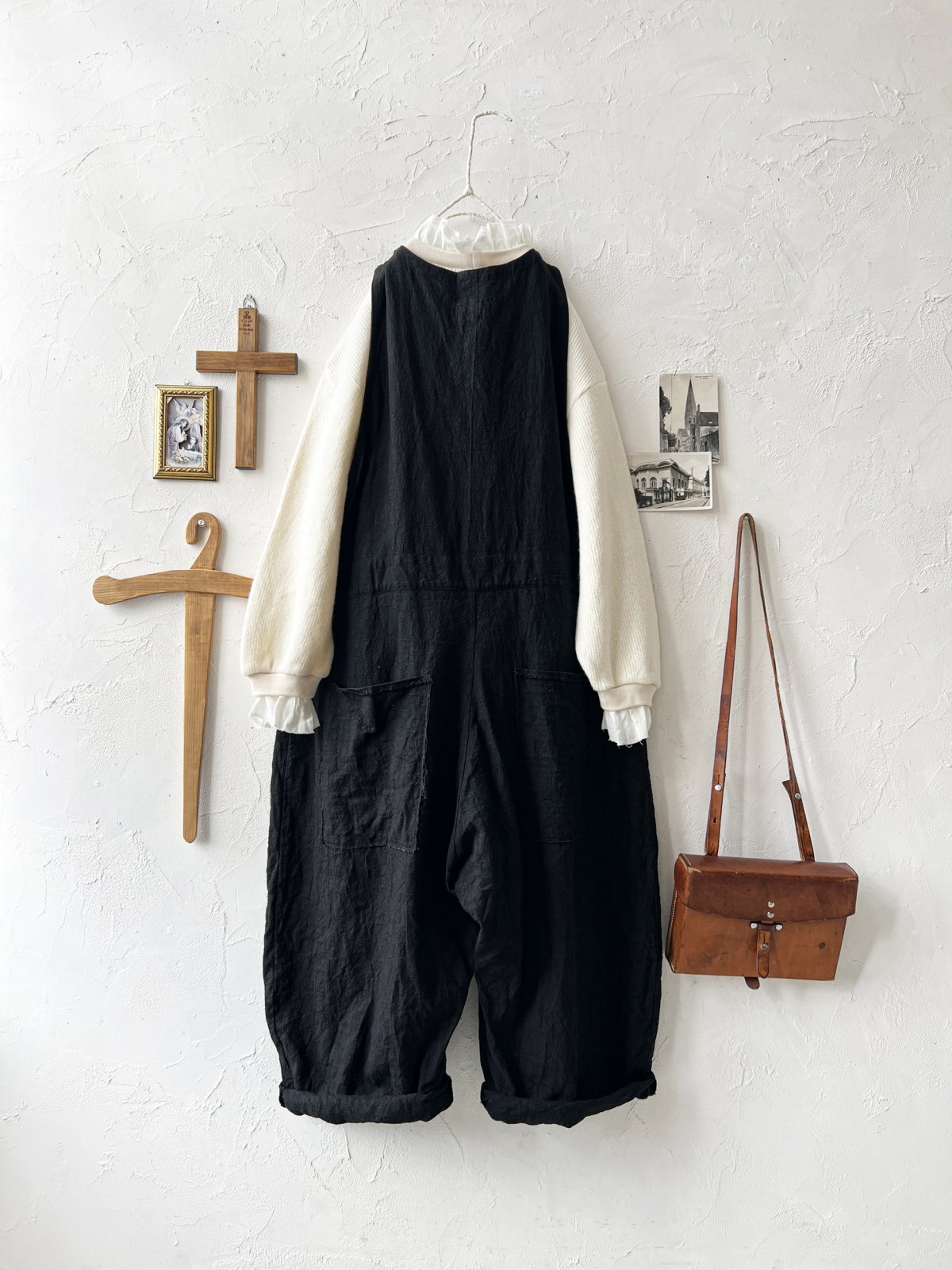 Libera&Capricciosa/天日干しリネンオーバーオール・黒 [LIB251102]
