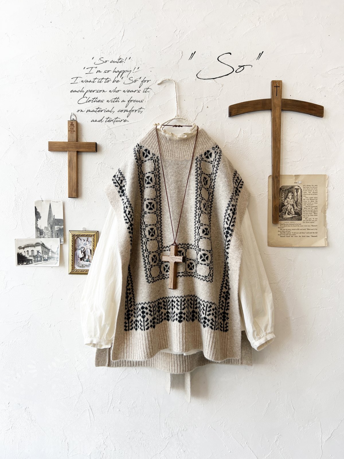 SO/チロリアンニットベスト・オートミール×ブラック [COF251133]