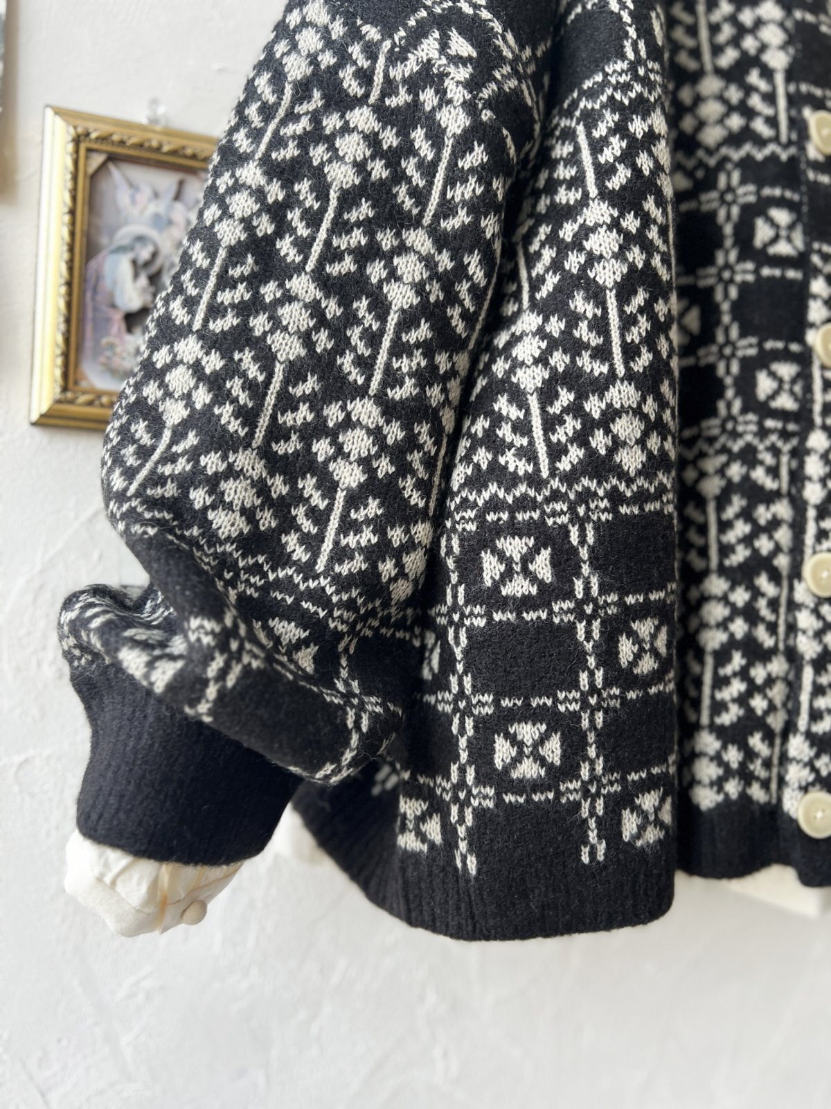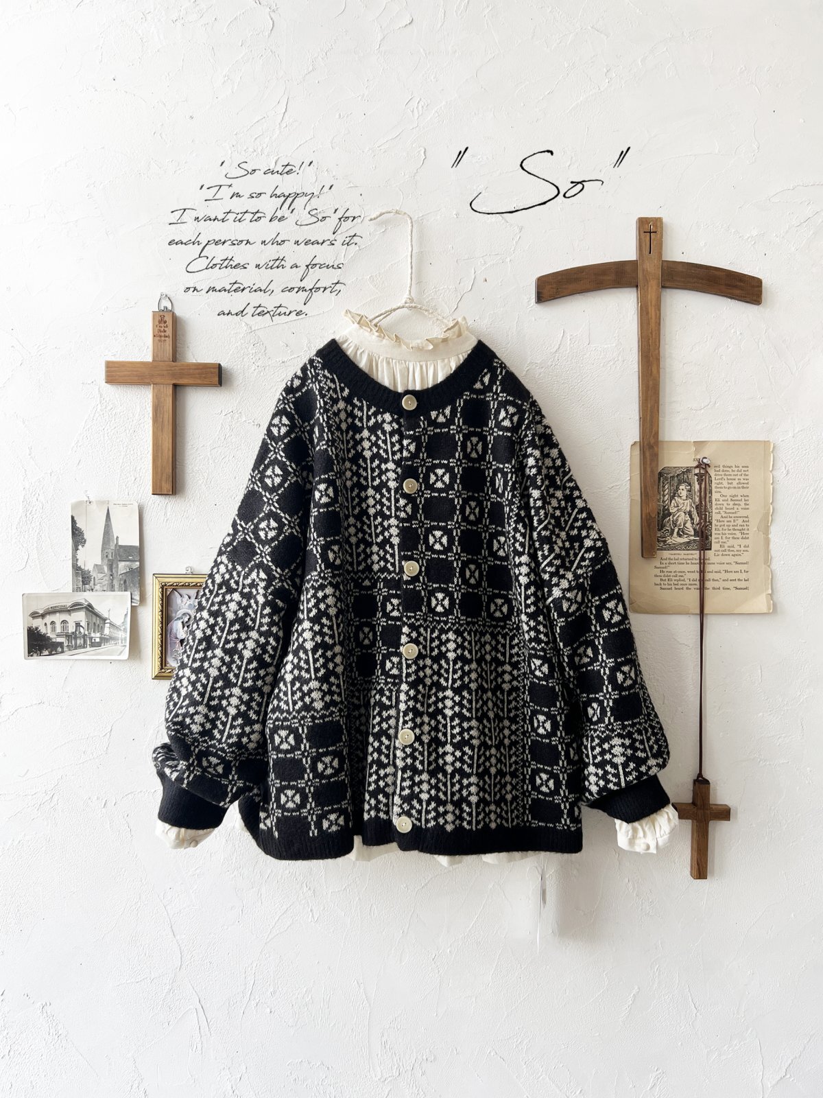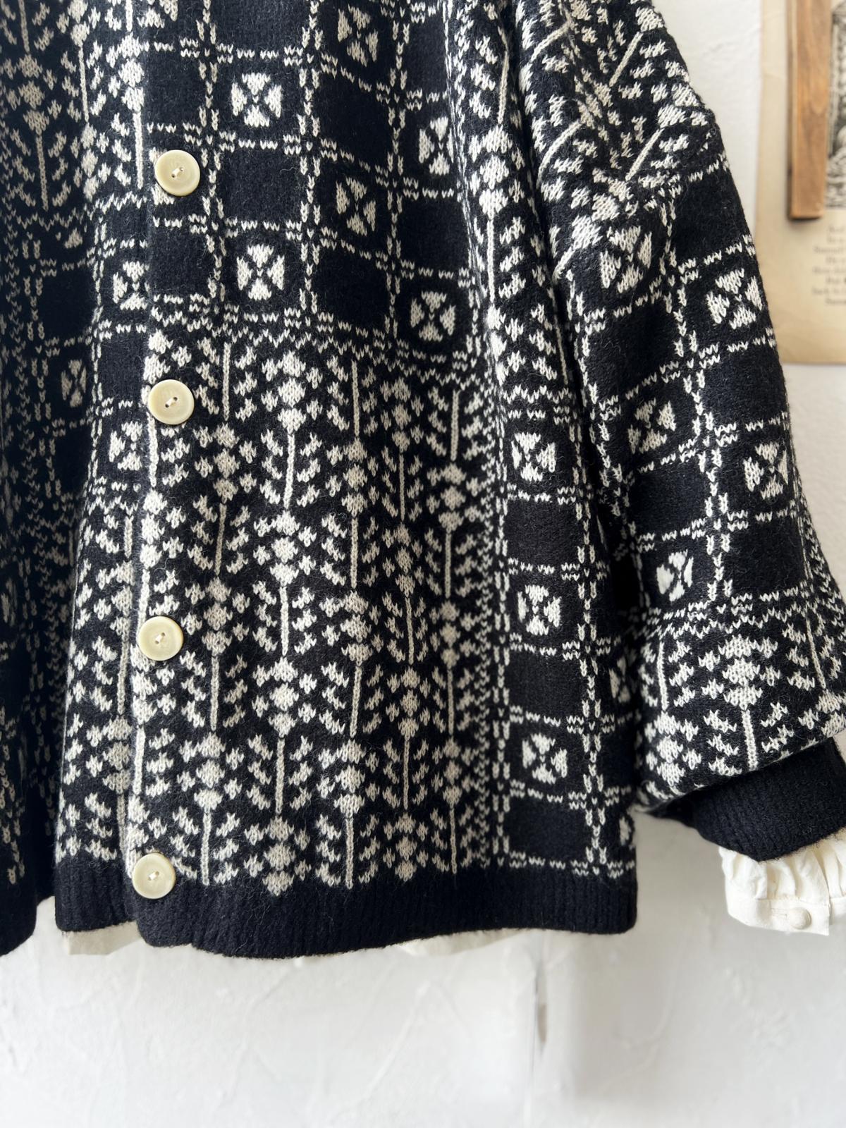 SO/チロリアンニット2wayカーディガン・ブラック×オートミール [COF251134]