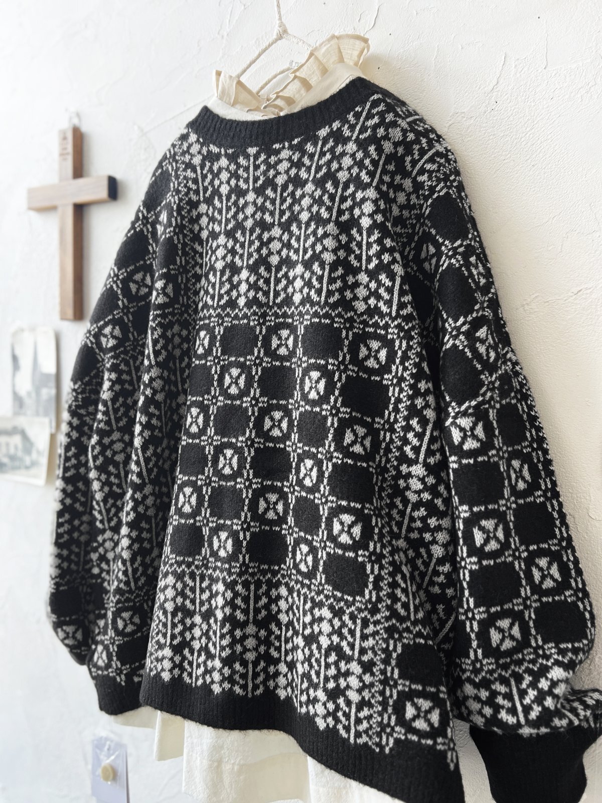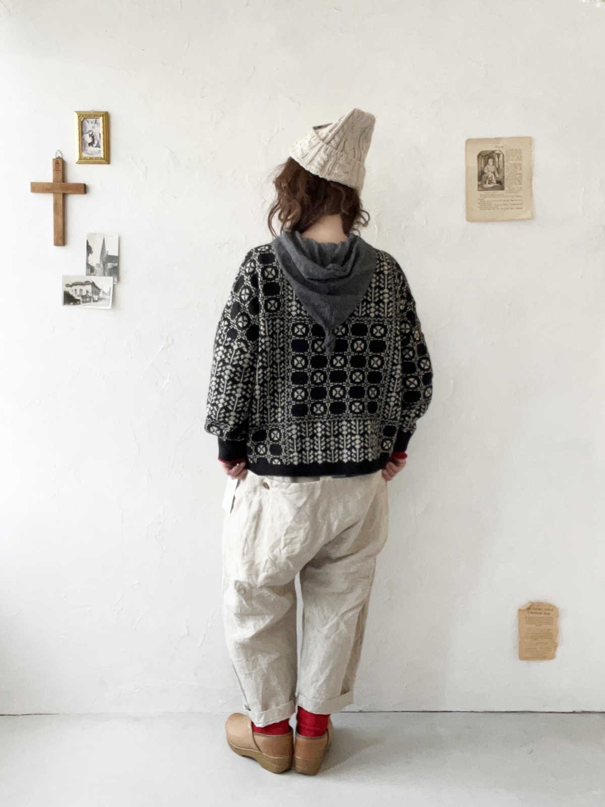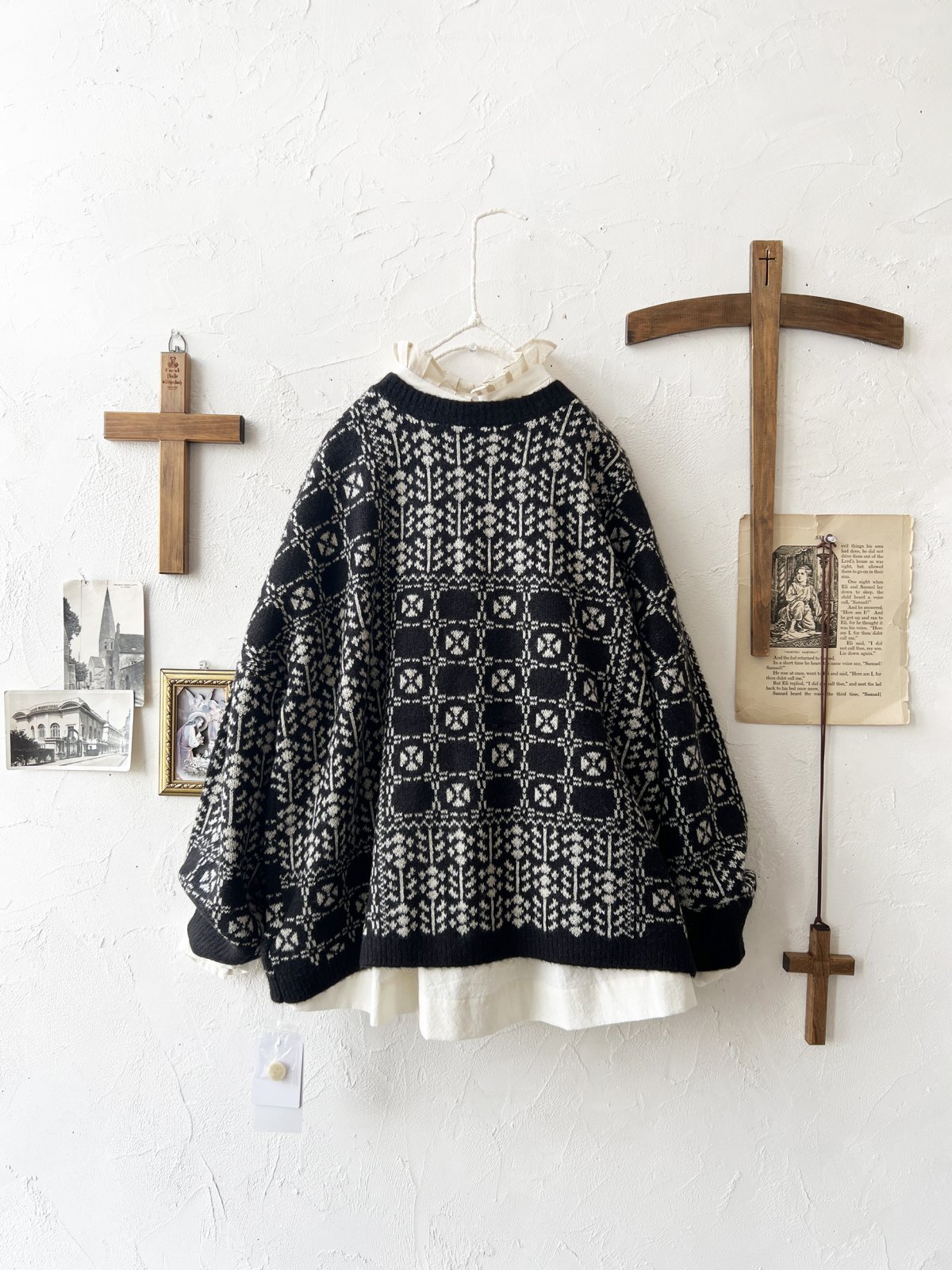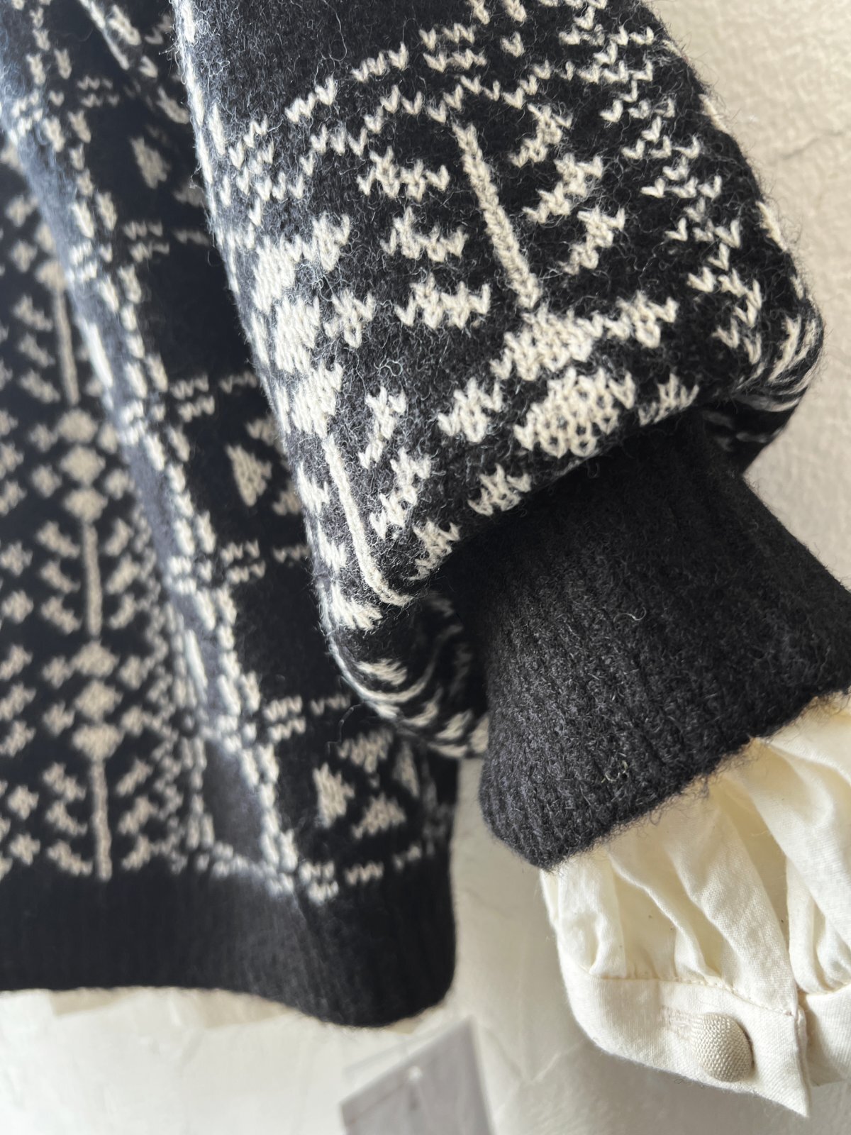 SO/チロリアンニット2wayカーディガン・ブラック×オートミール [COF251134]