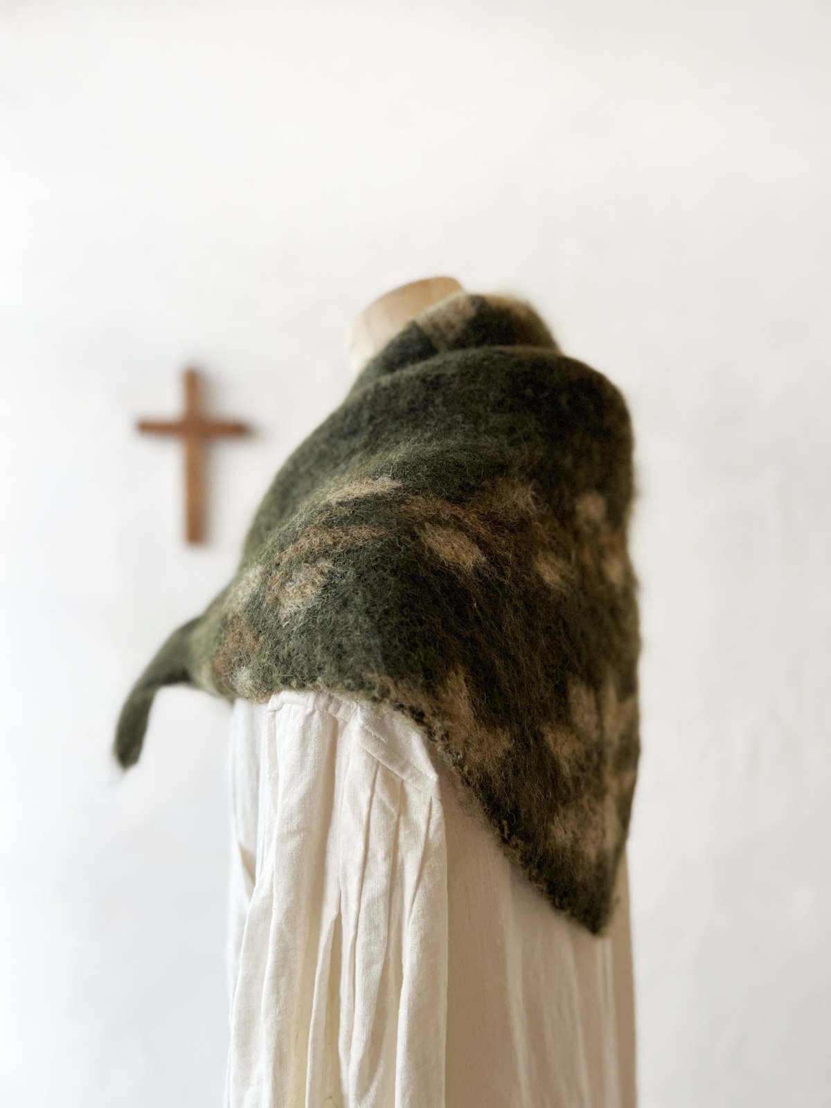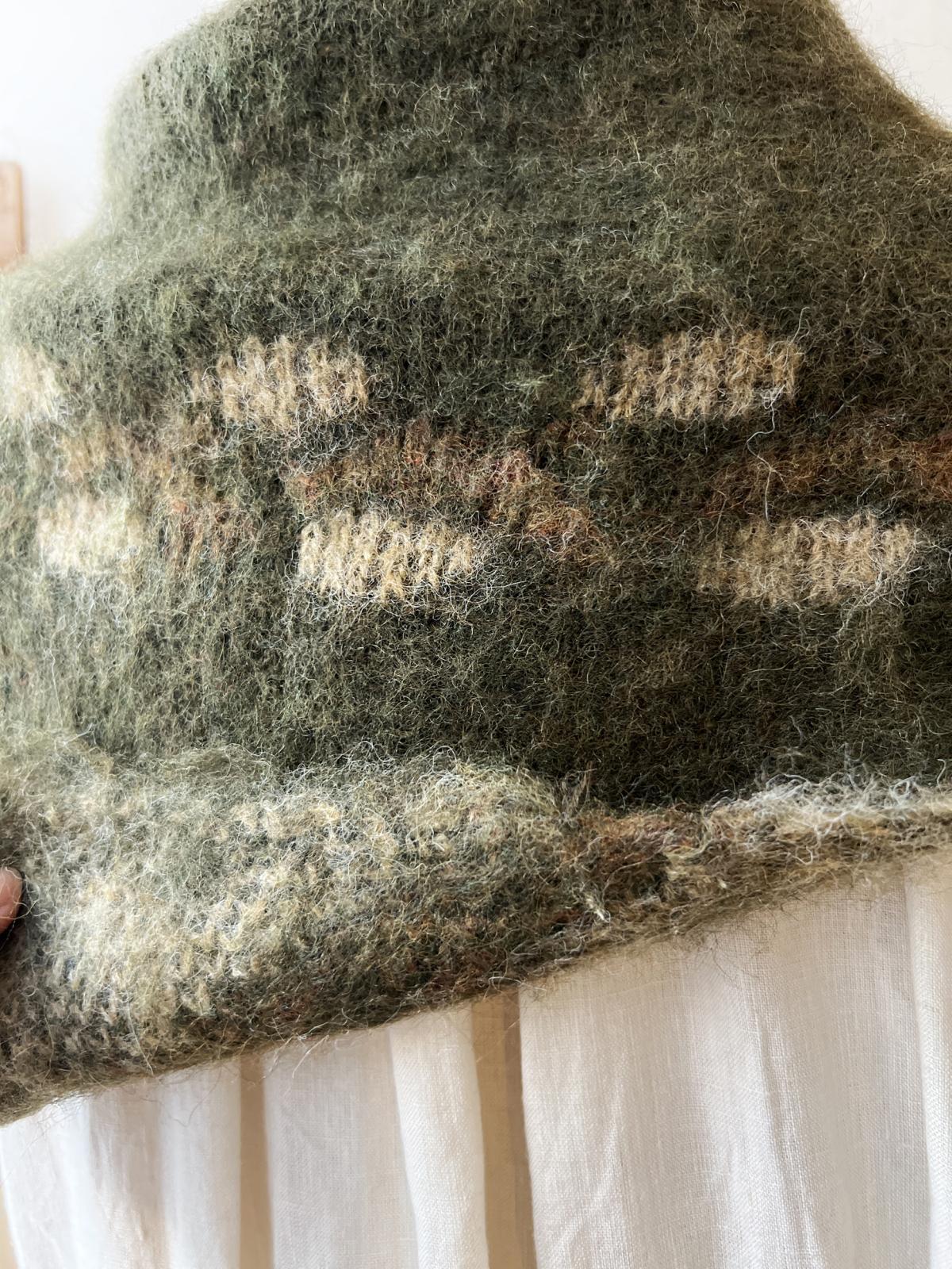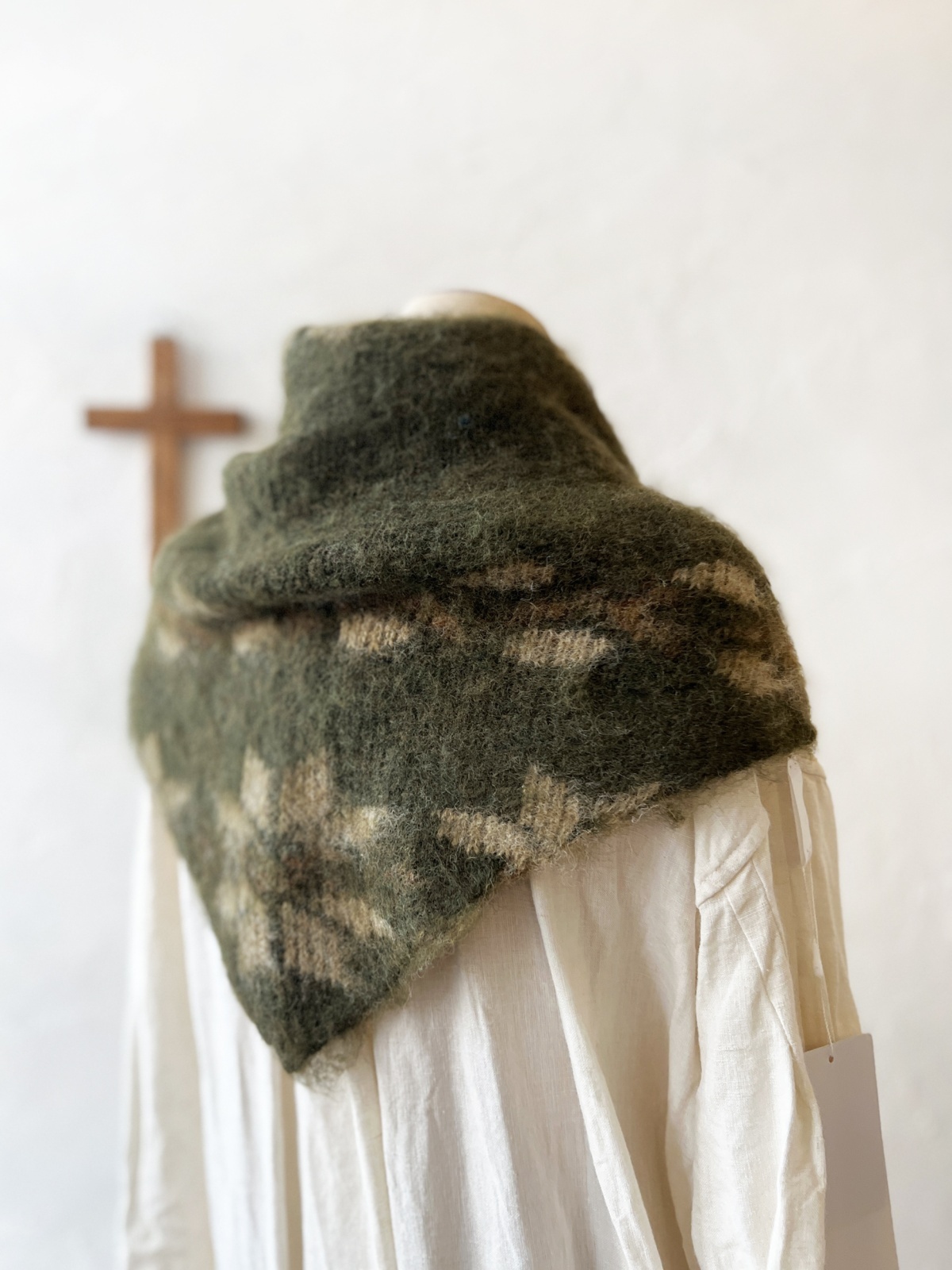 モヘアライクニットの三角ストールです。