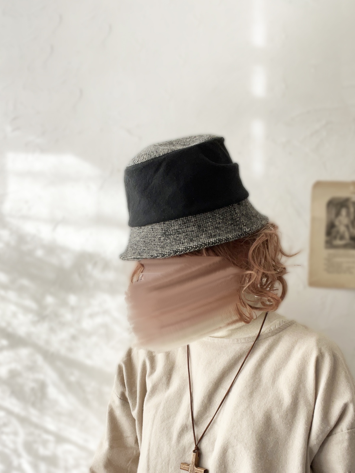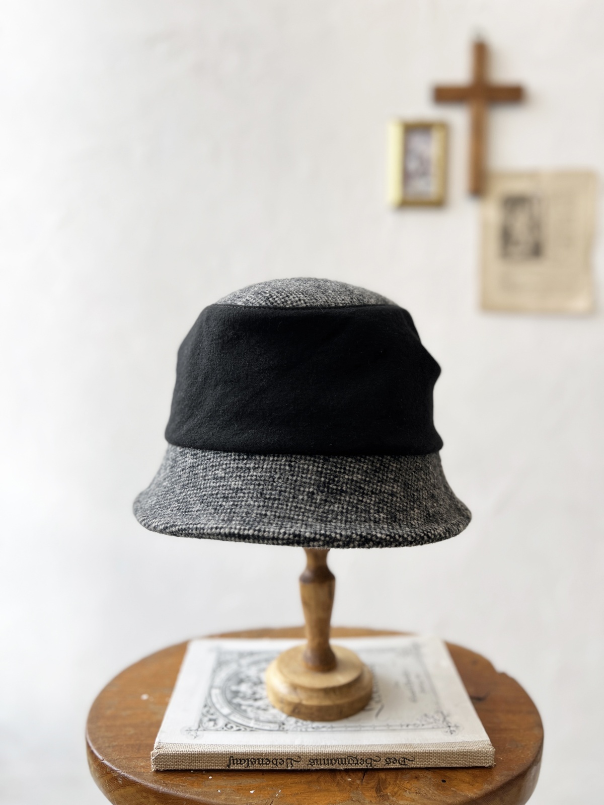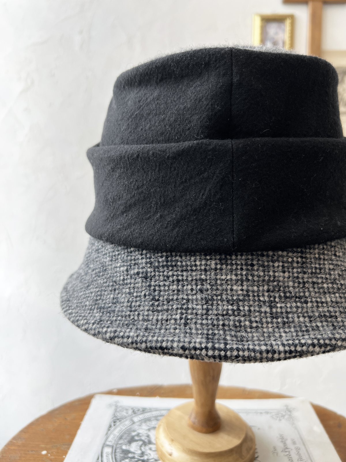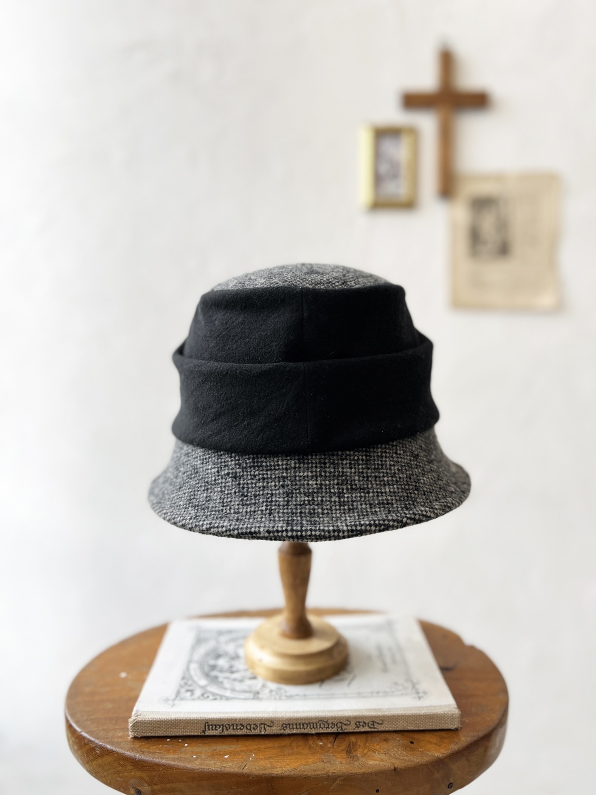 羊帽子店/12-1bk クラシカルツイードの冬のダブルハット・杢ブラック×ブラック [HIT251201]