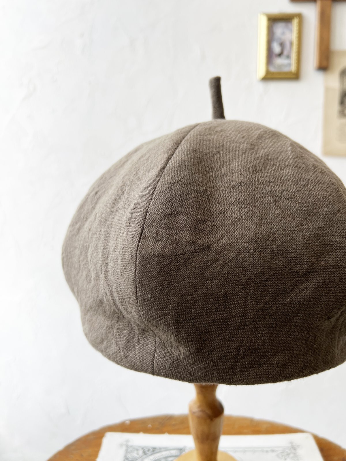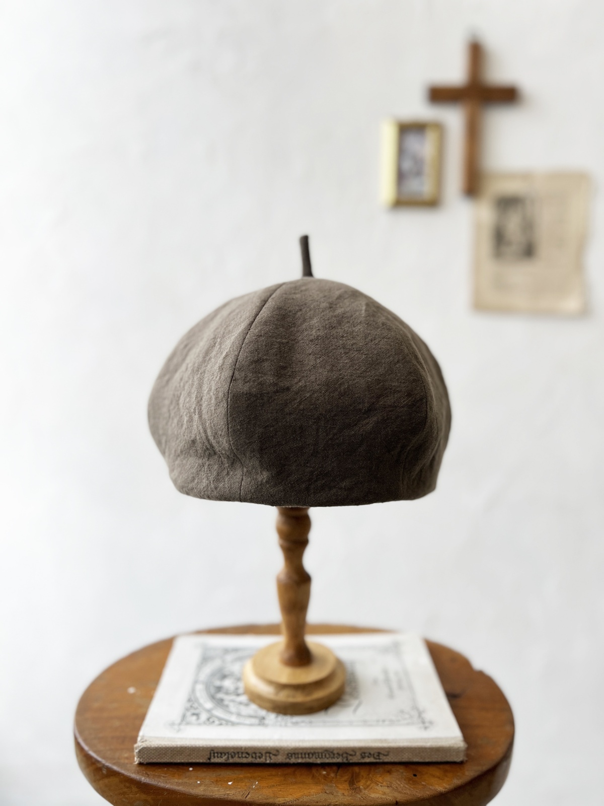 羊帽子店/12-7 ベルギーリネンのほっこりベレー帽・モカ [HIT251207]