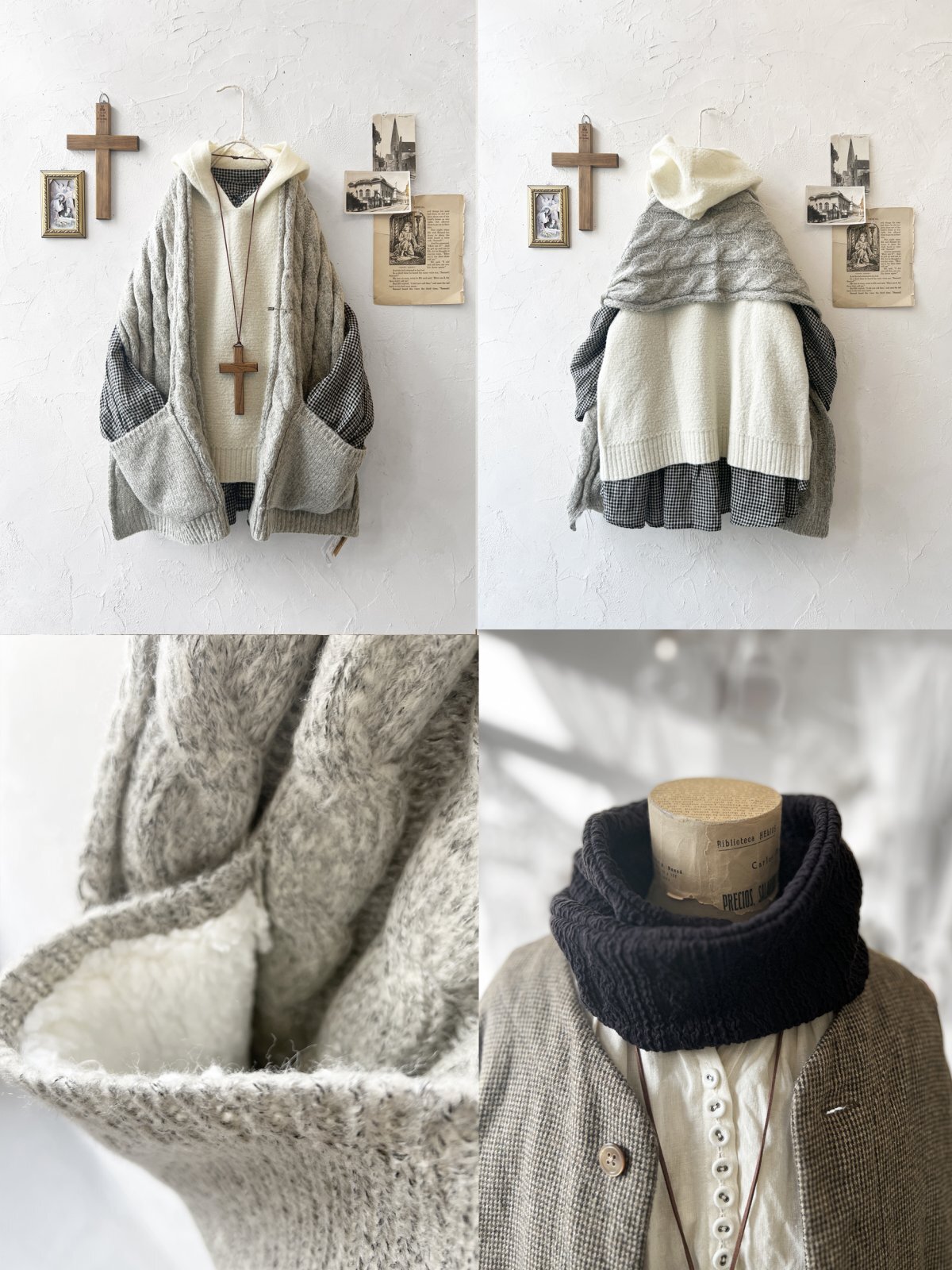 画像5枚目で合わせているショールとスヌード以外の洋服と、その他