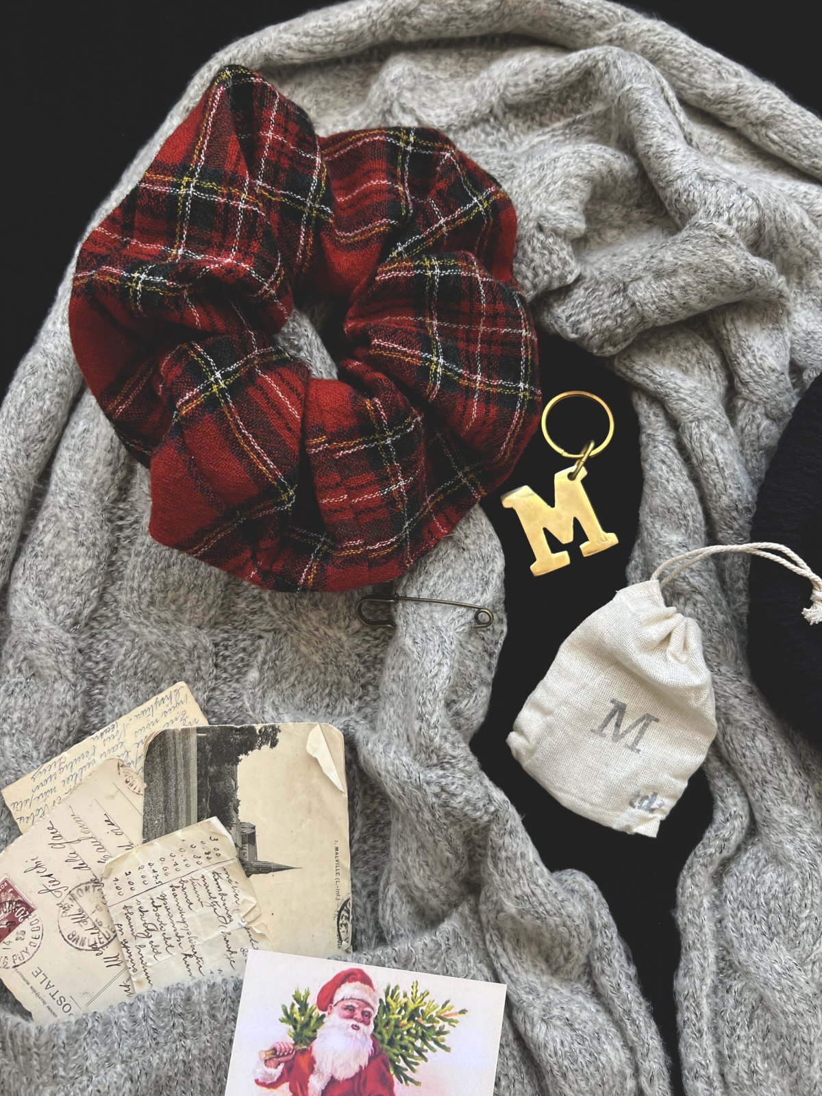 ◯MARCHE'ビックシュシュ・ウールガーゼ赤チェック