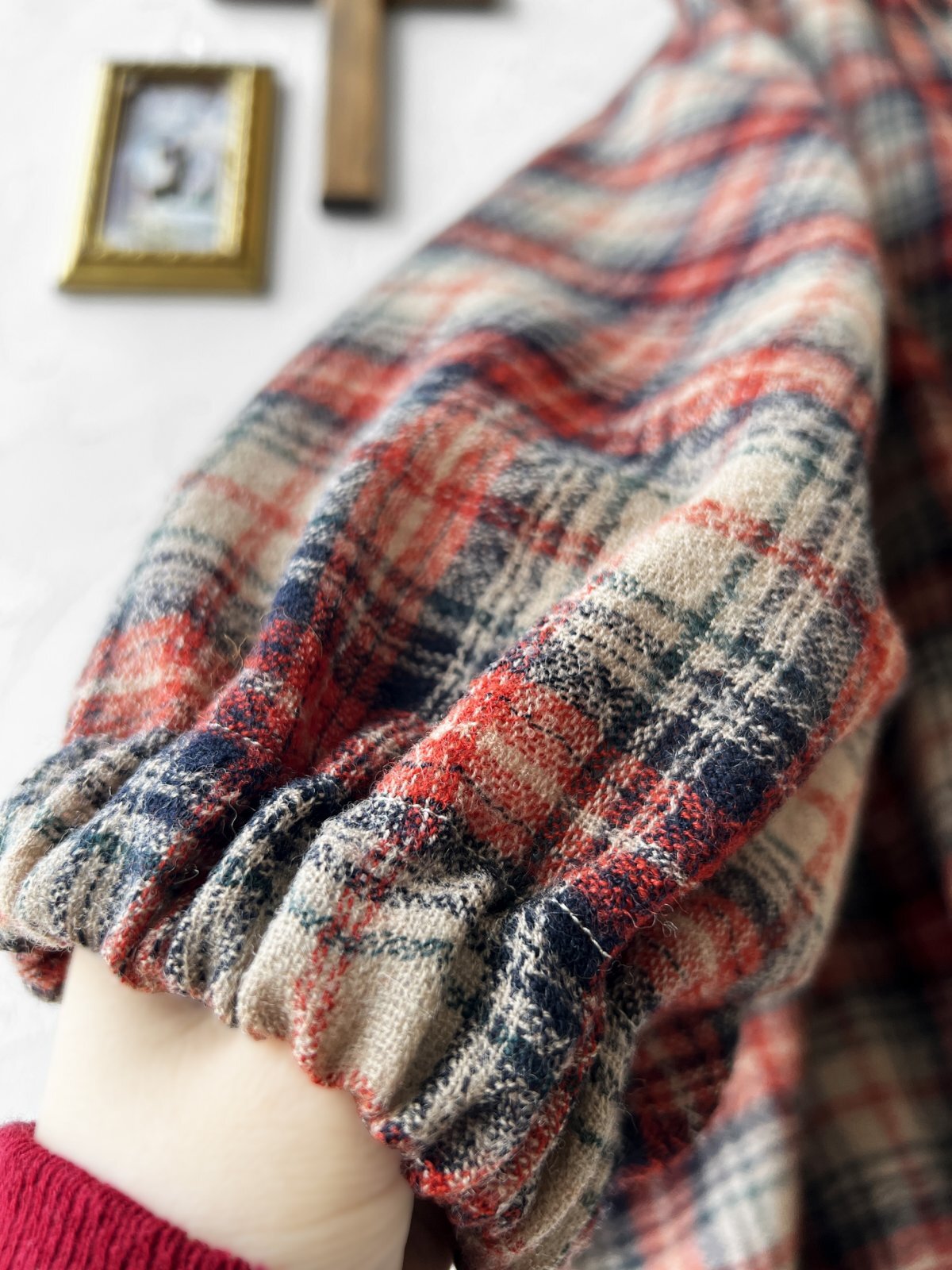 - > MARCHE' DE SOEUR/ウールガーゼのバルーンチュニック・ベージュチェック