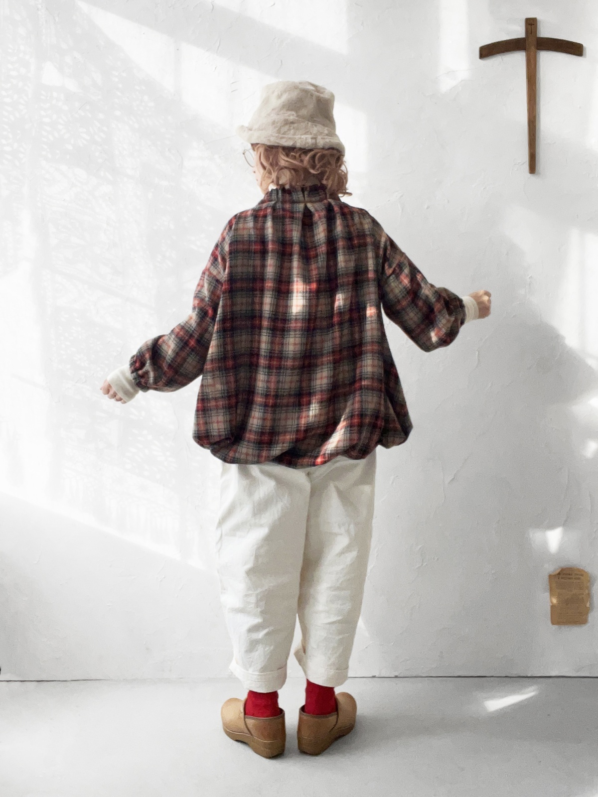 MARCHE' DE SOEUR/ウールガーゼのバルーンチュニック・ベージュチェック [MDS251210]