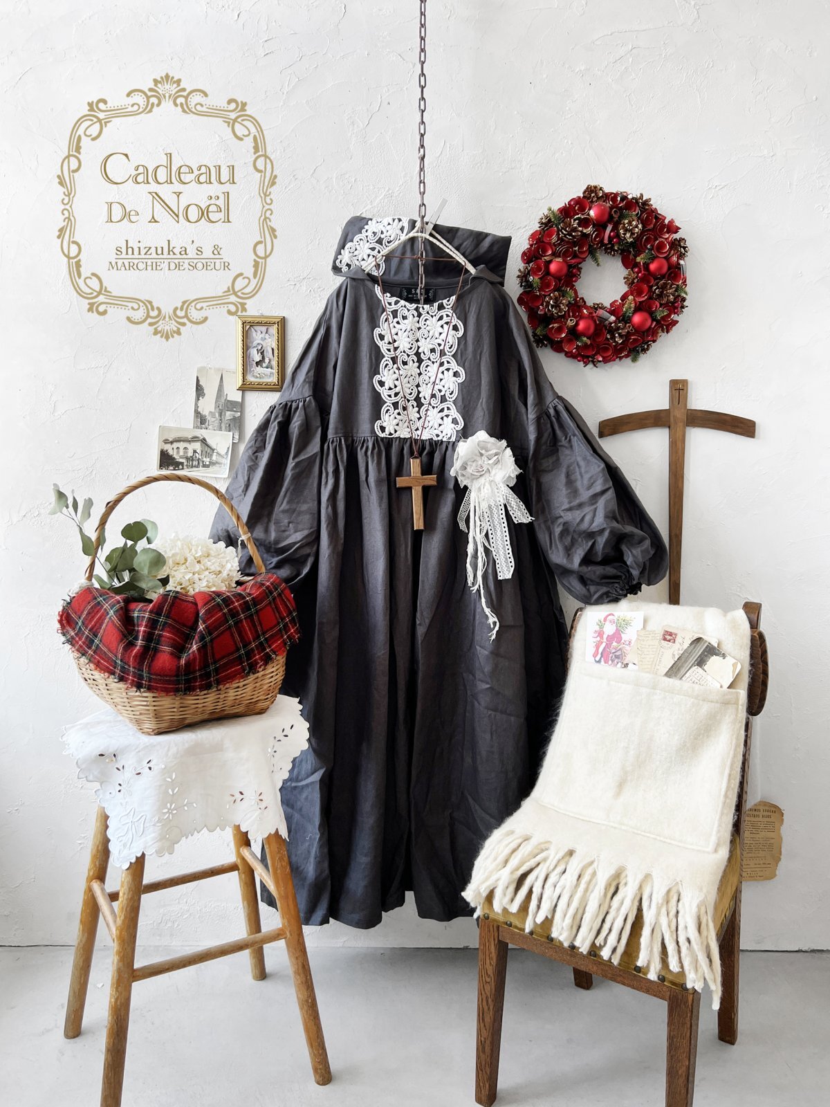 ▼お洋服とショールの2点以外の、撮影で使用している小物は付きません。
