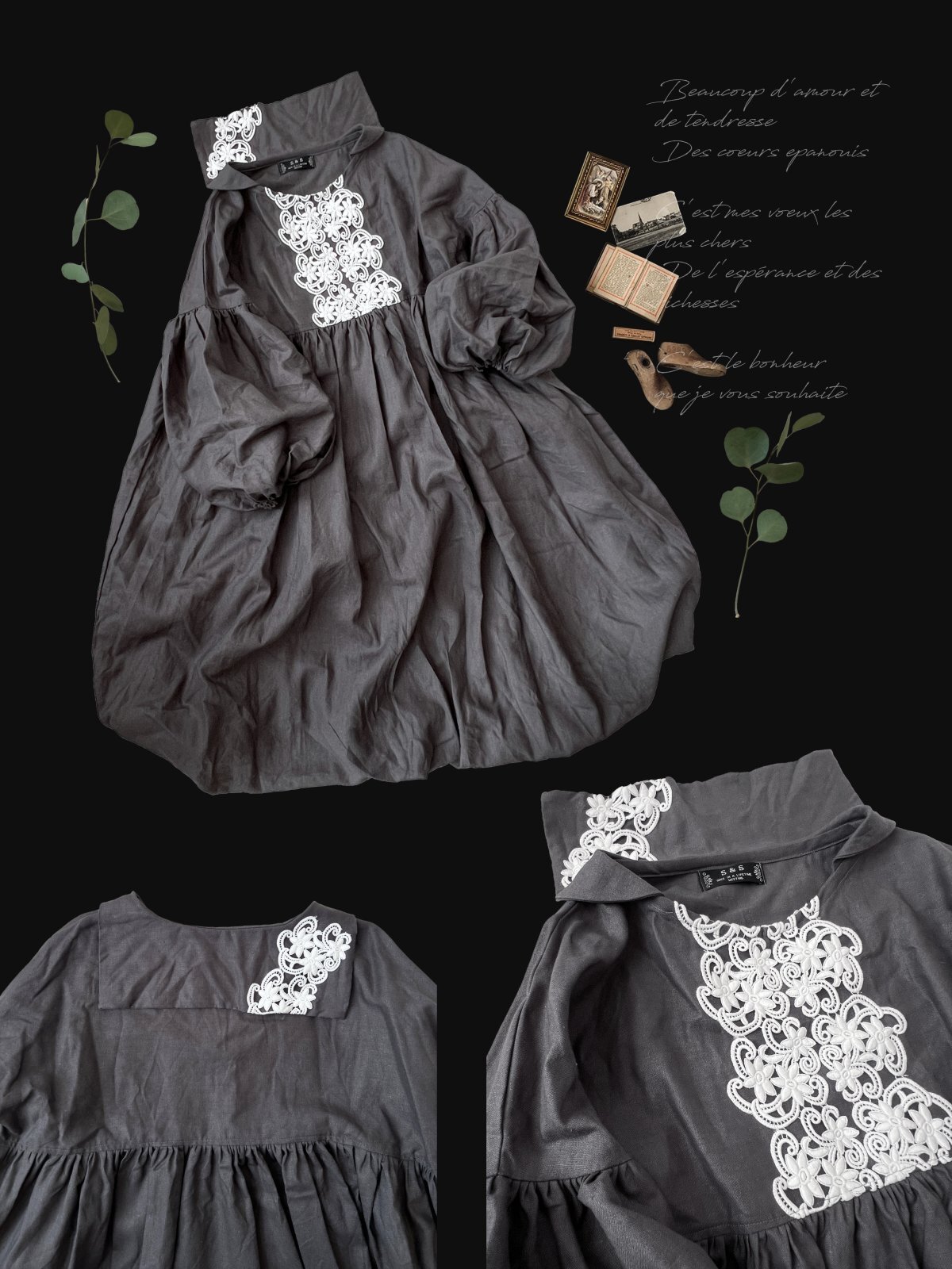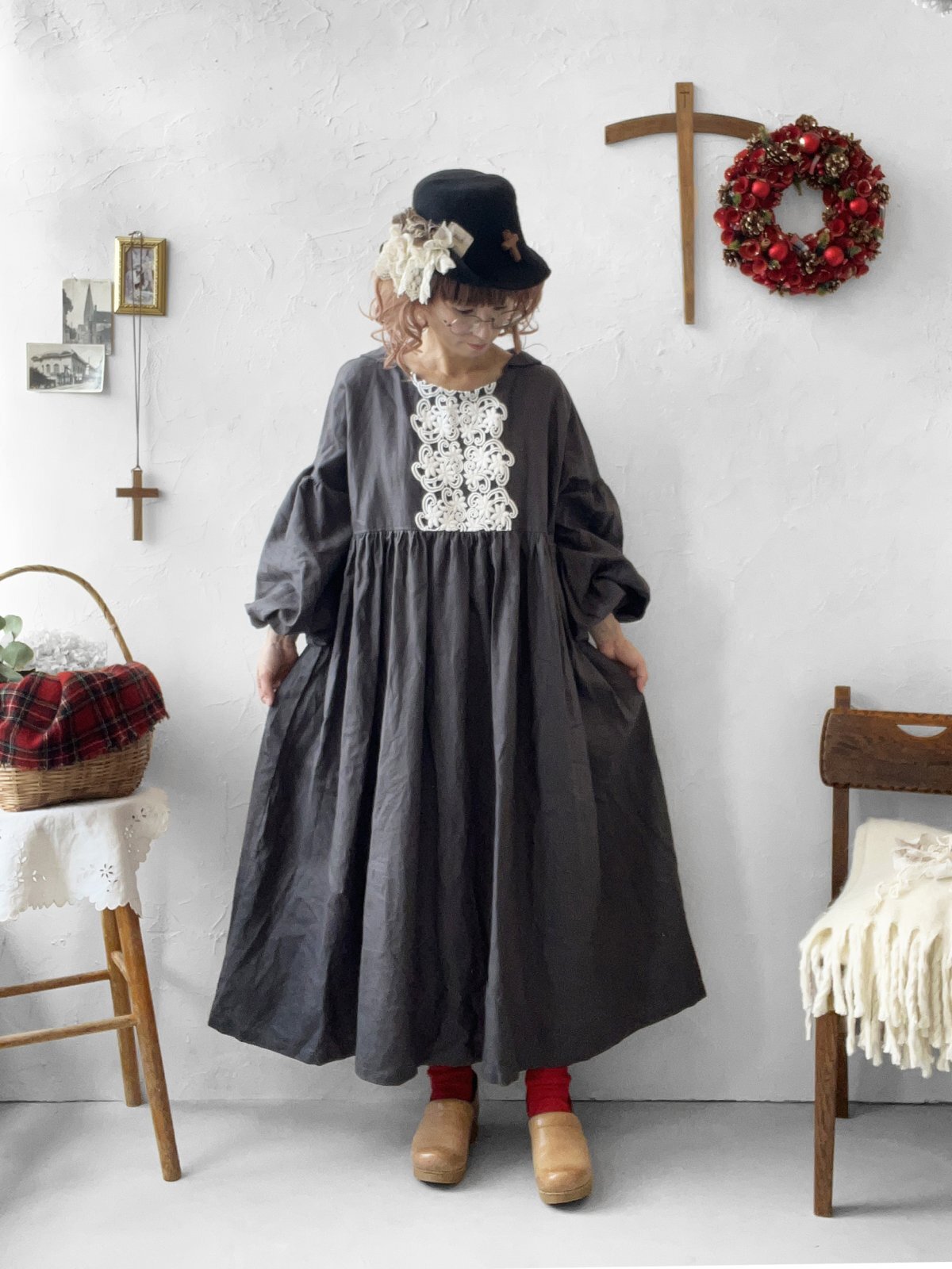 (1)shizuka's セーラー襟のレースワンピース・ダークグレー