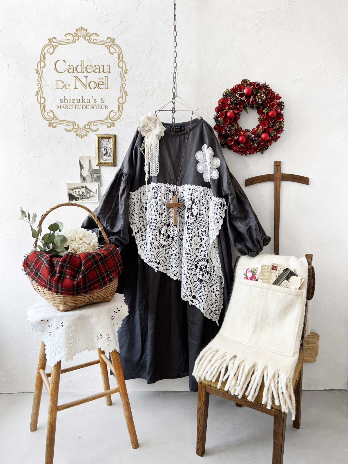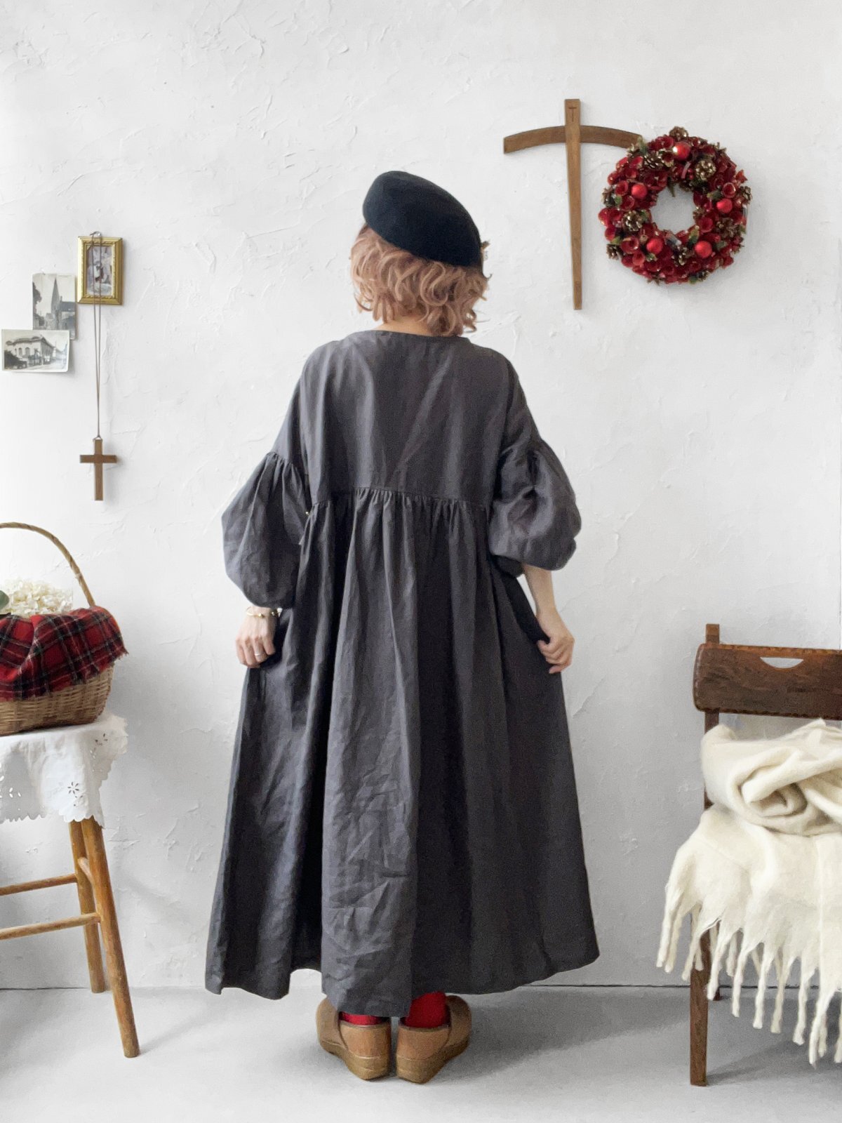 【ノエルの贈り物】ダークグレーのパフスリーブレースワンピース【23】 [SIZ251223]