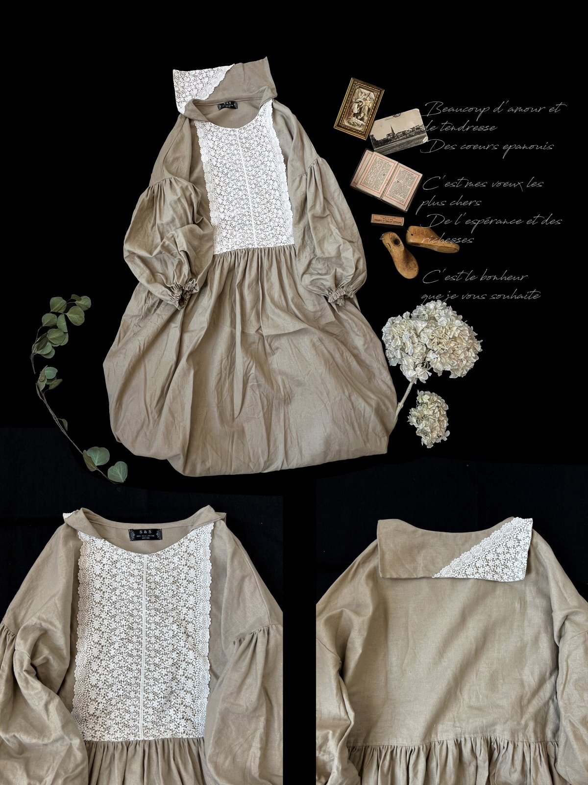 お洋服はすべてデザインが違う1点もの。アンティークレースや