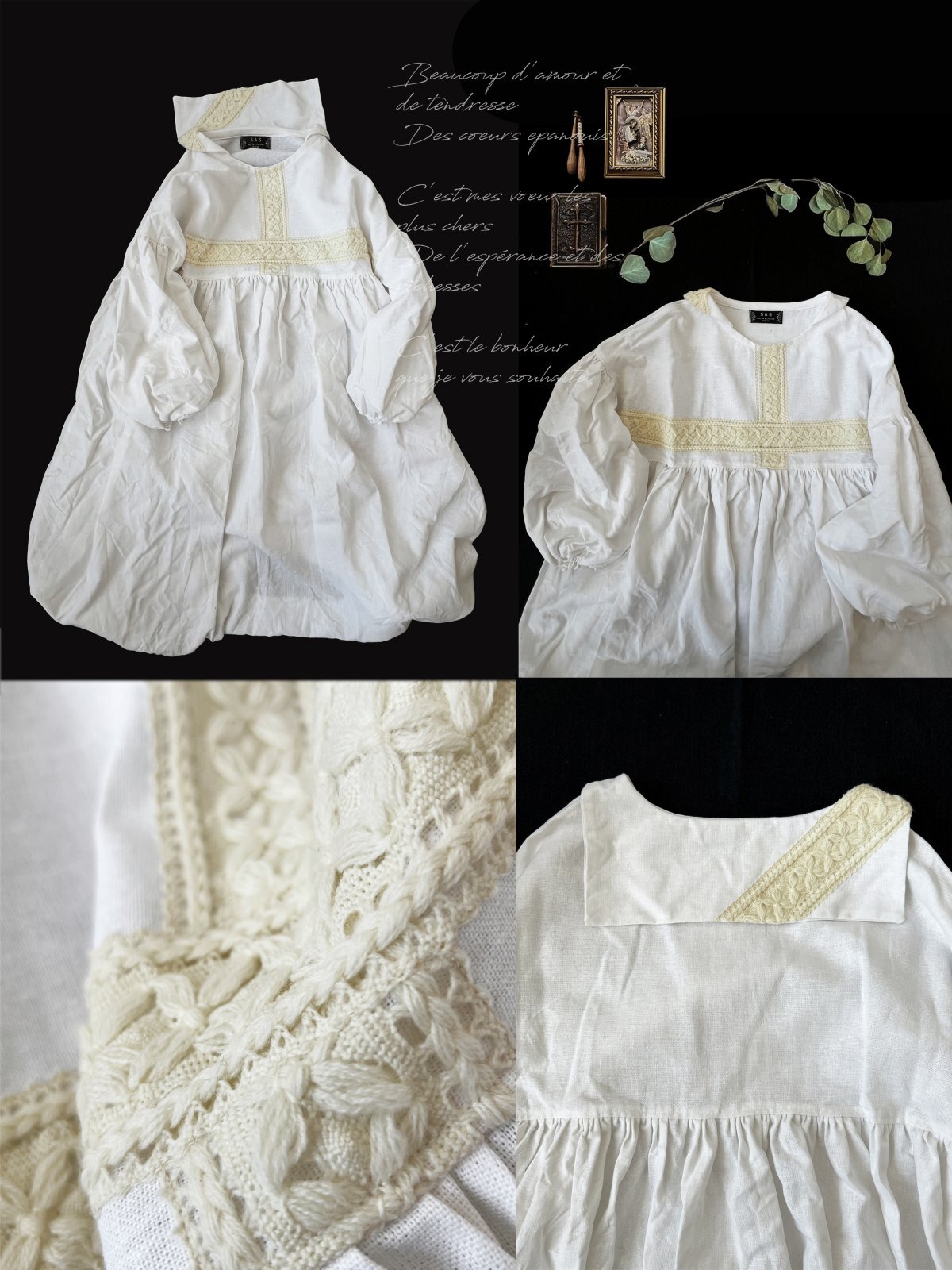 お洋服はすべてデザインが違う1点もの。アンティークレースや