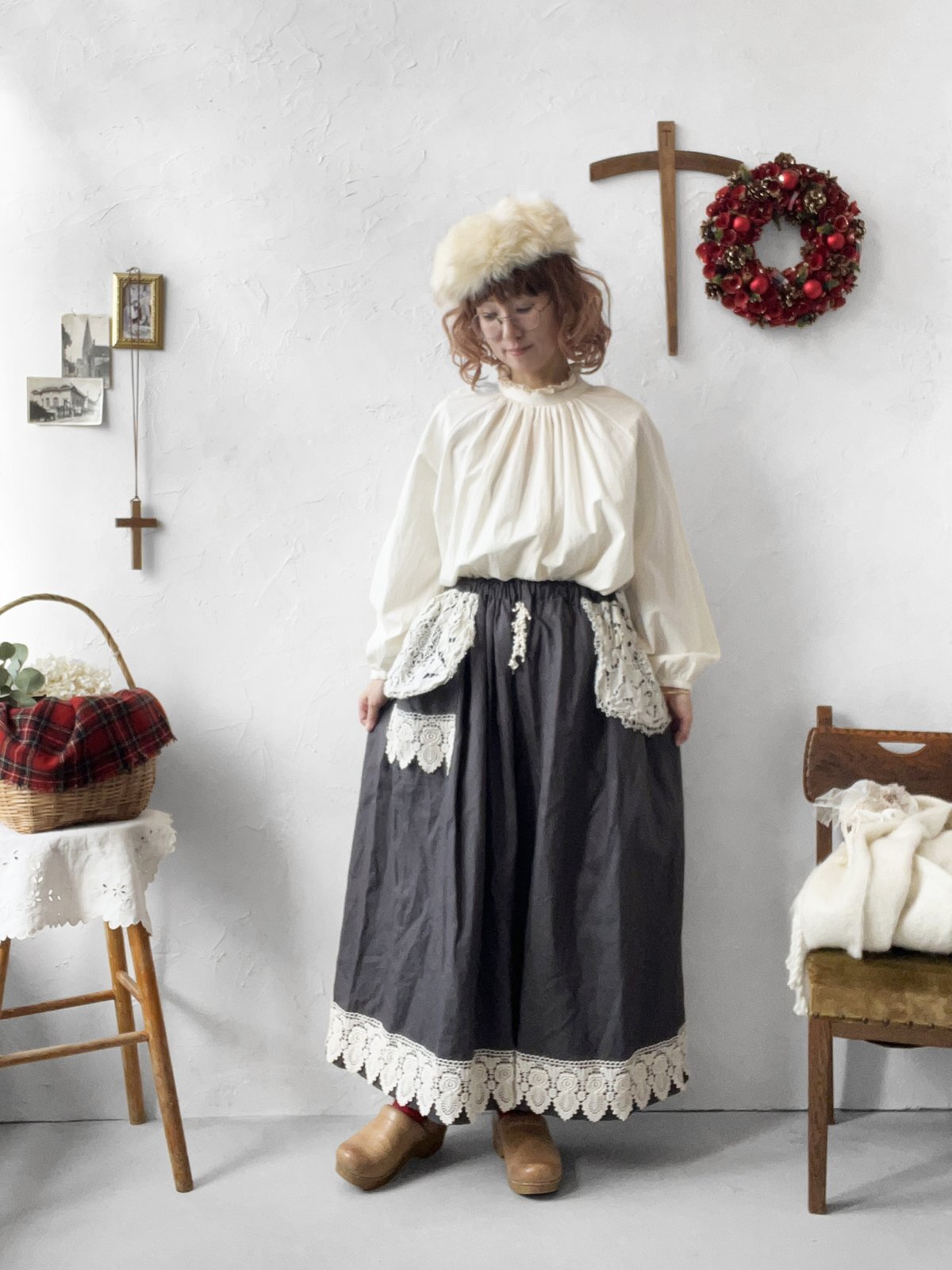 ▼お洋服とショールの2点以外の、撮影で使用している小物は付きません。