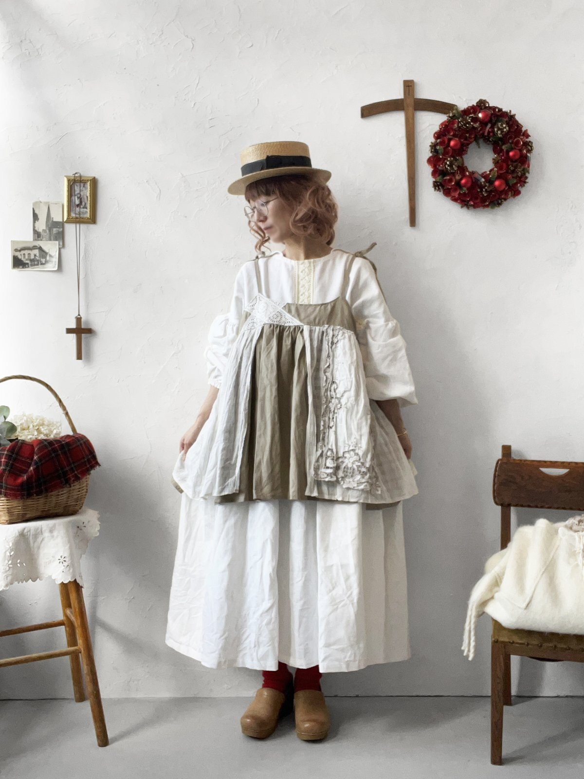 ▼お洋服とショールの2点以外の、撮影で使用している小物は付きません。